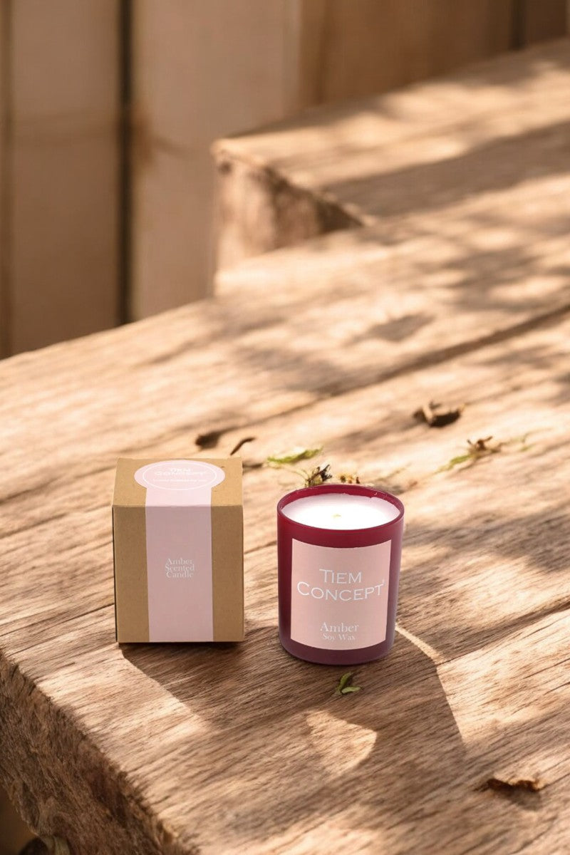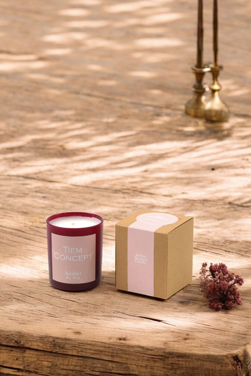 100% Soy Candle Amber Scented Claret Red Color Boxed Glass Candle