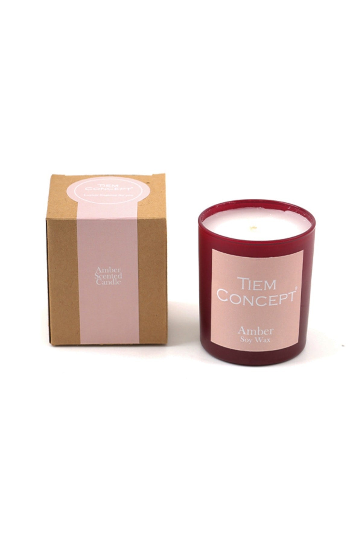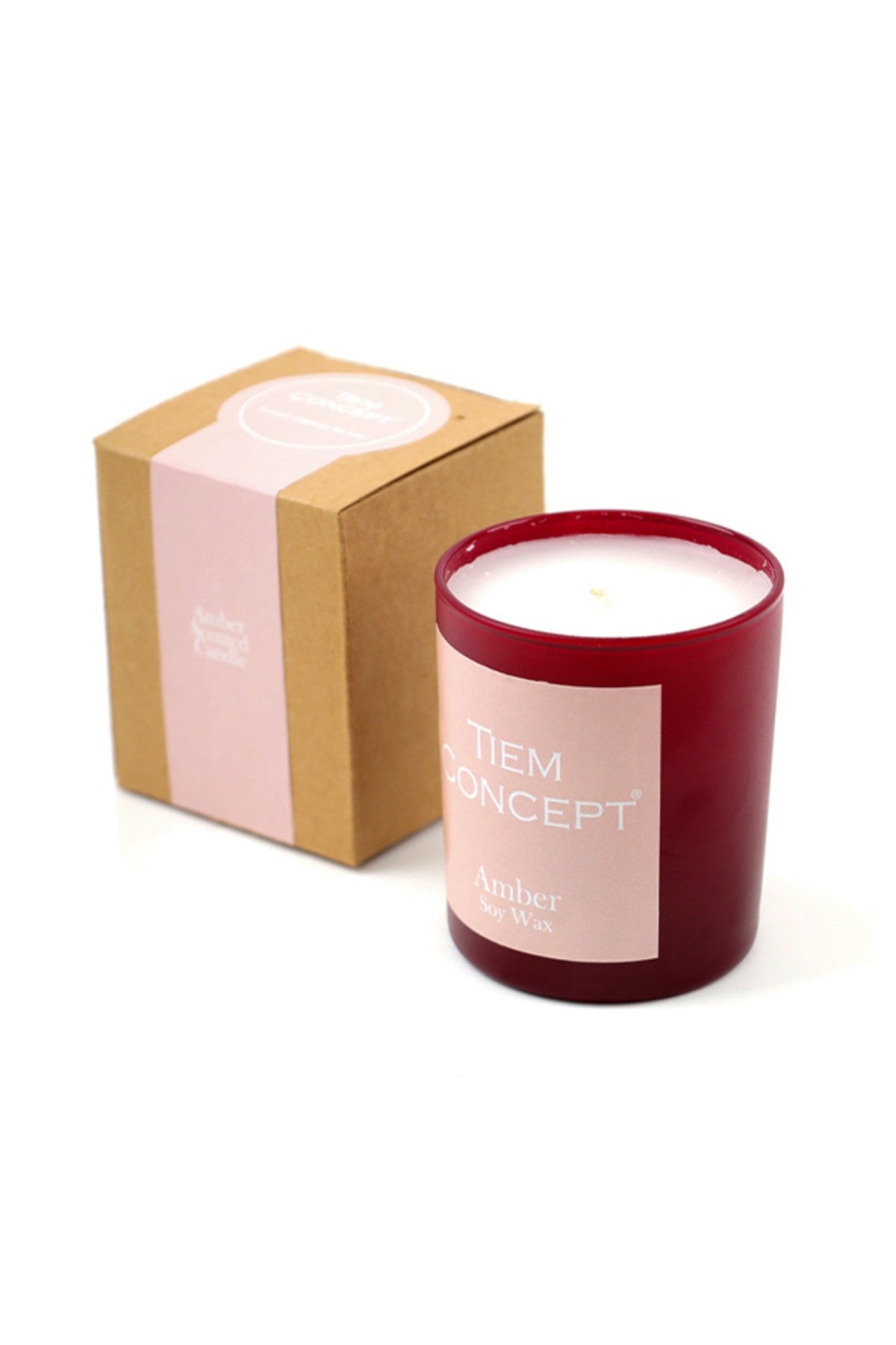 - The glass candle is sent in a kraft box with a burgundy colored glass.
