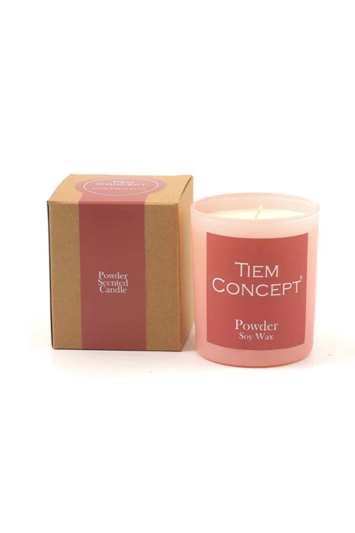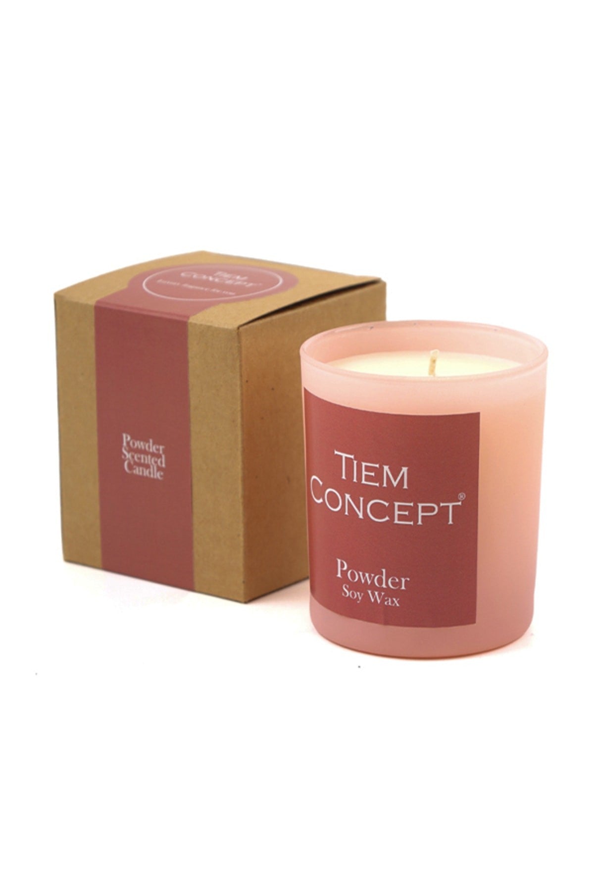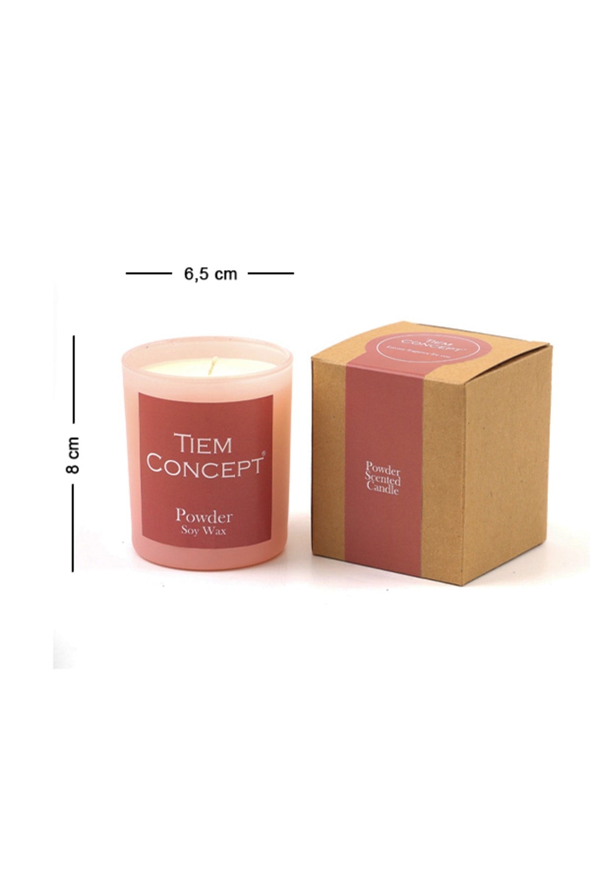 - Glass candle is sent in a kraft box with a powder colored glass.