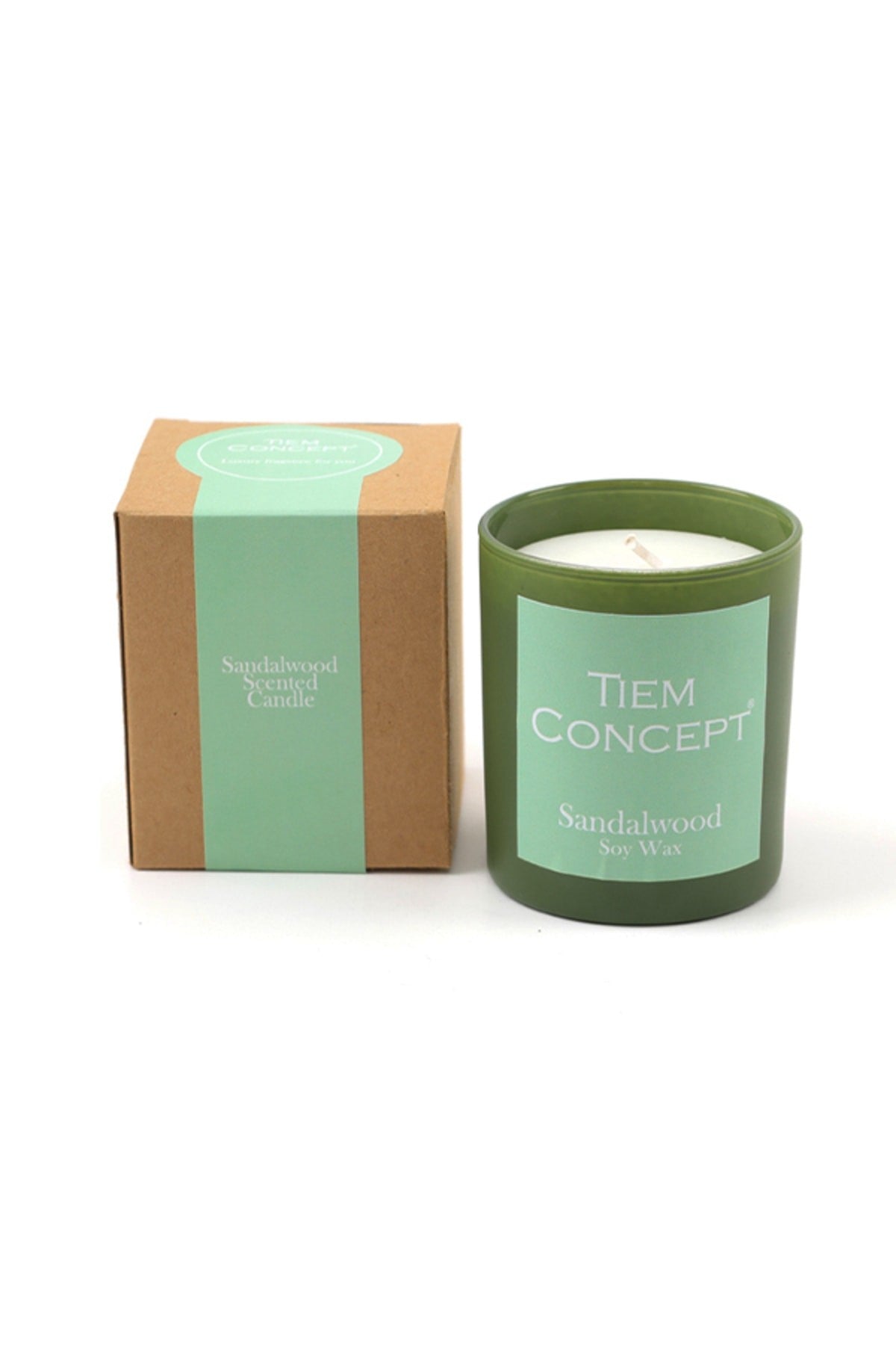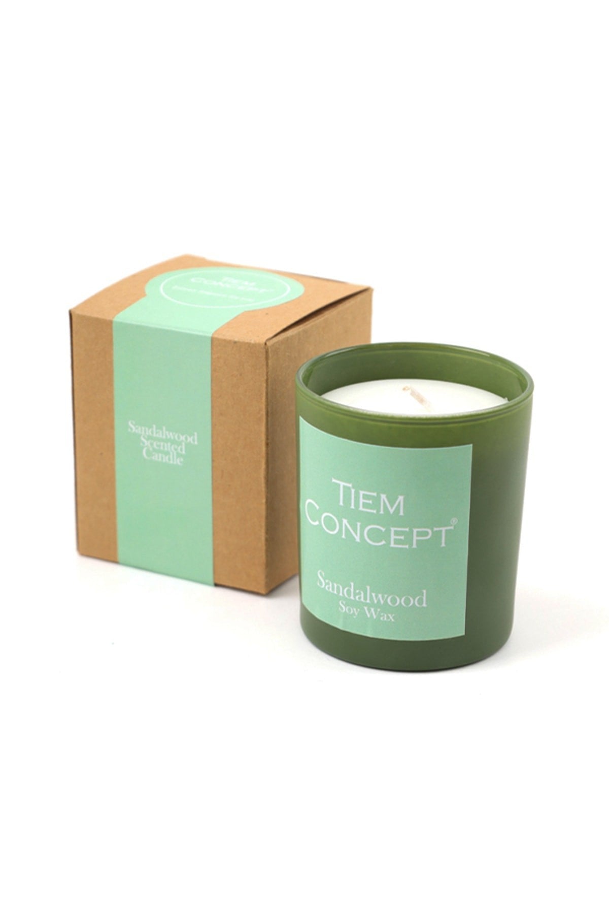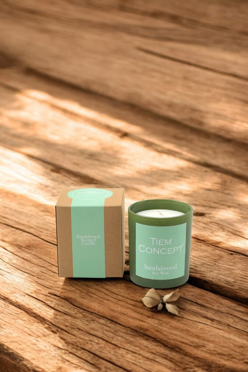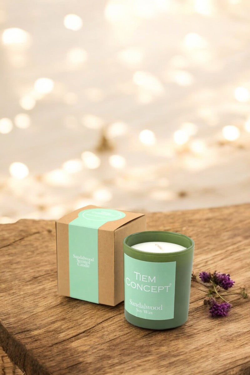 100% Soy Candle Sandalwood Scented Green Color Boxed Glass Candle