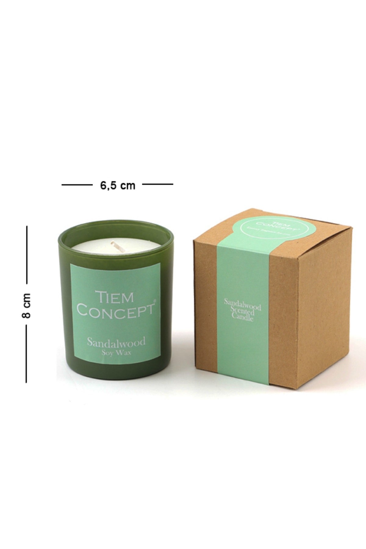 - Glass candle is sent in a kraft box with a green glass.