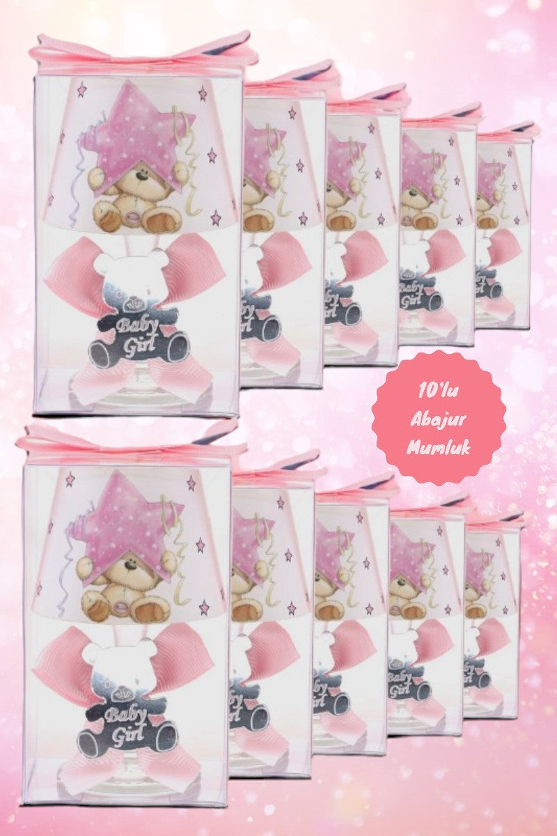 Baby Gift Boxed Custom Name Bear Printed Lampshade Candle Set of 10