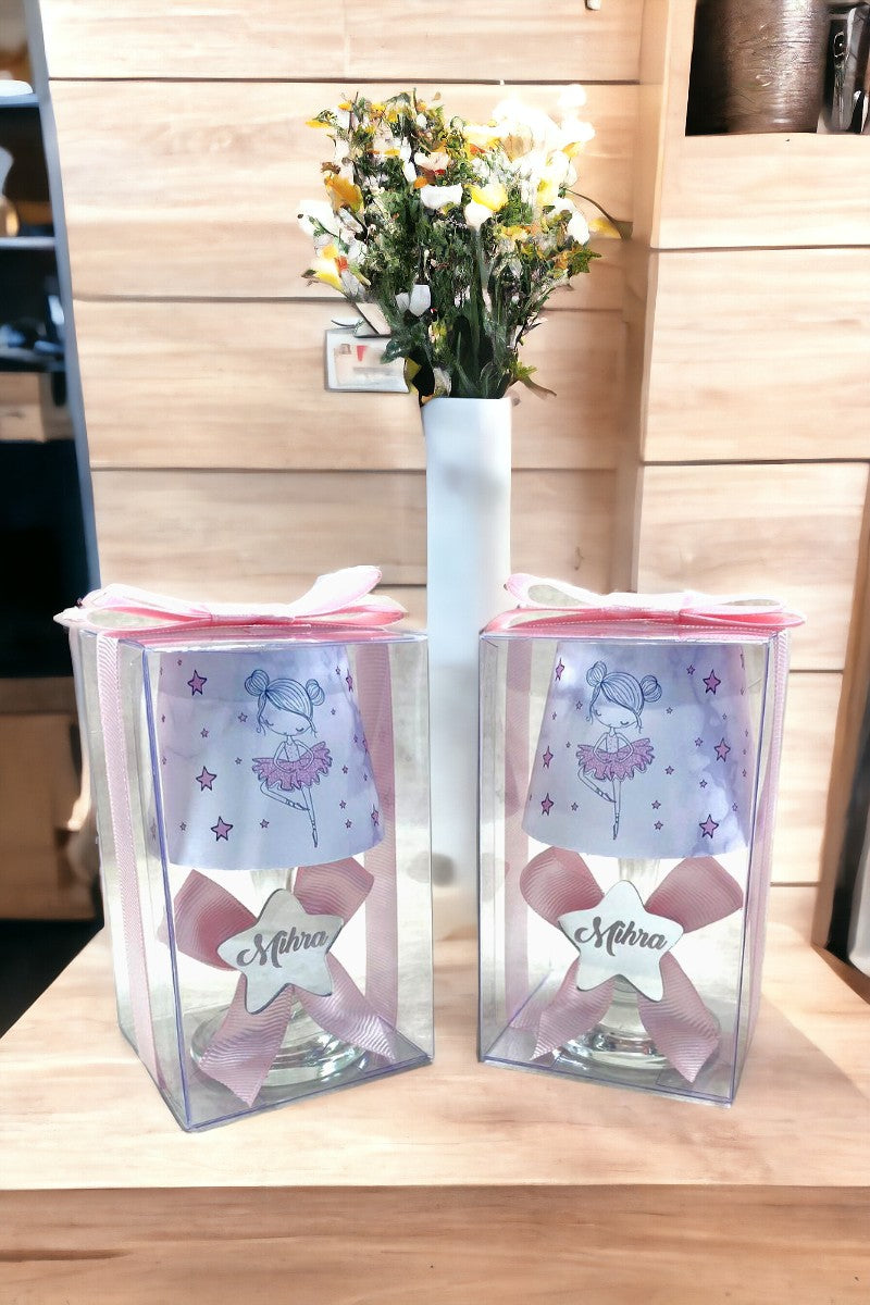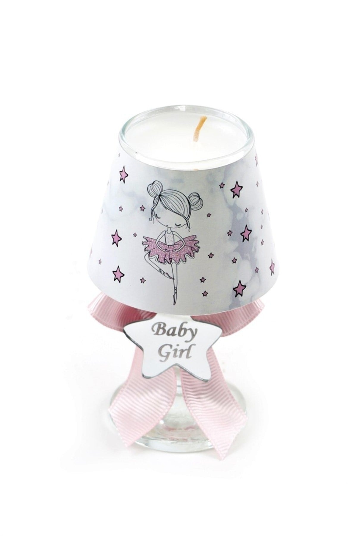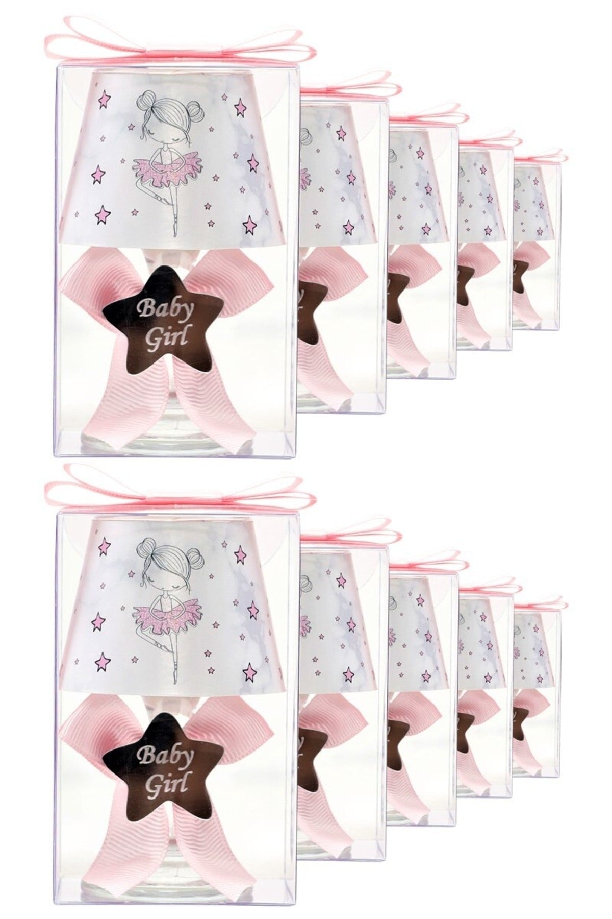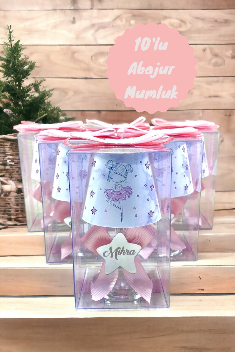 Baby Gift Boxed Personalized Pink Decorated Ballerina Printed Lampshade Candle Set of 10