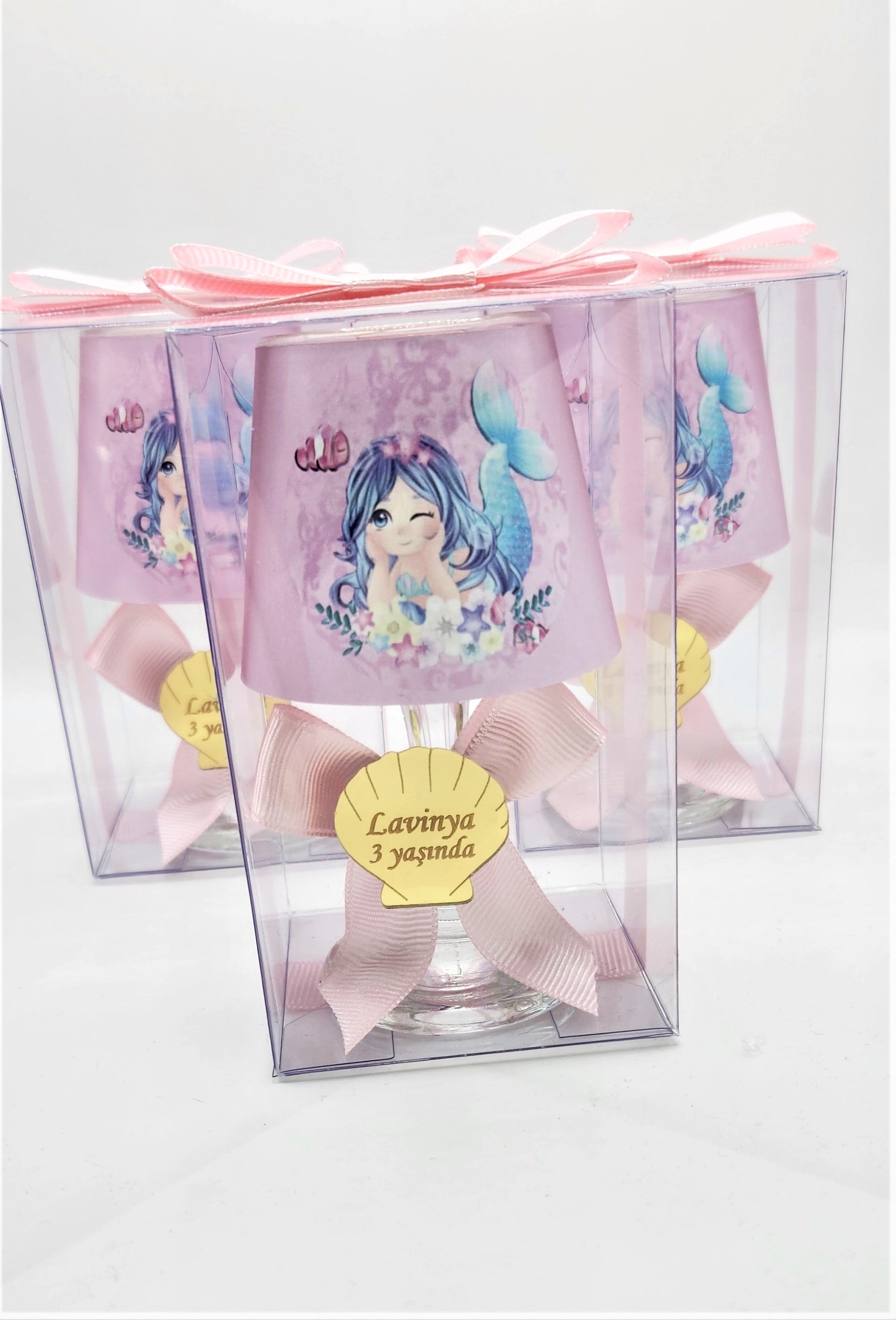 Baby Gift Boxed Custom Pink Decorated Mermaid Printed Lampshade Candle Set of 10