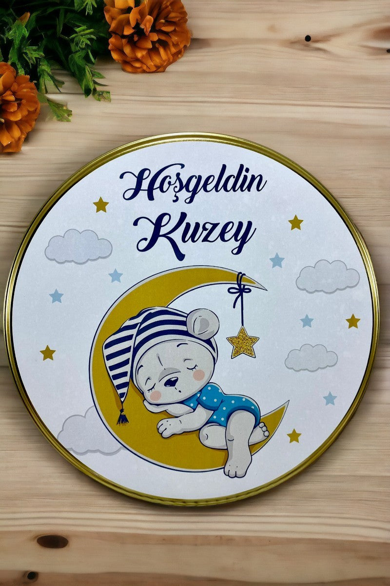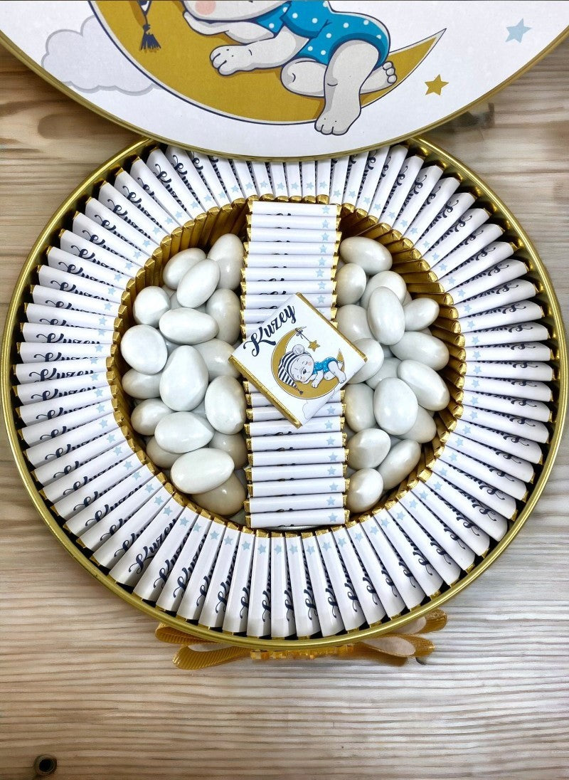 Gold Renkli Ayıcık Konseptli Erkek Bebek Çikolatası