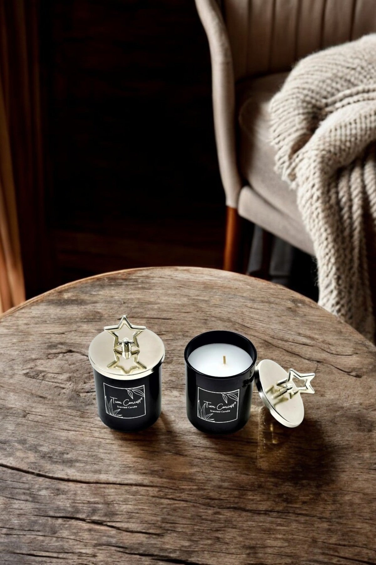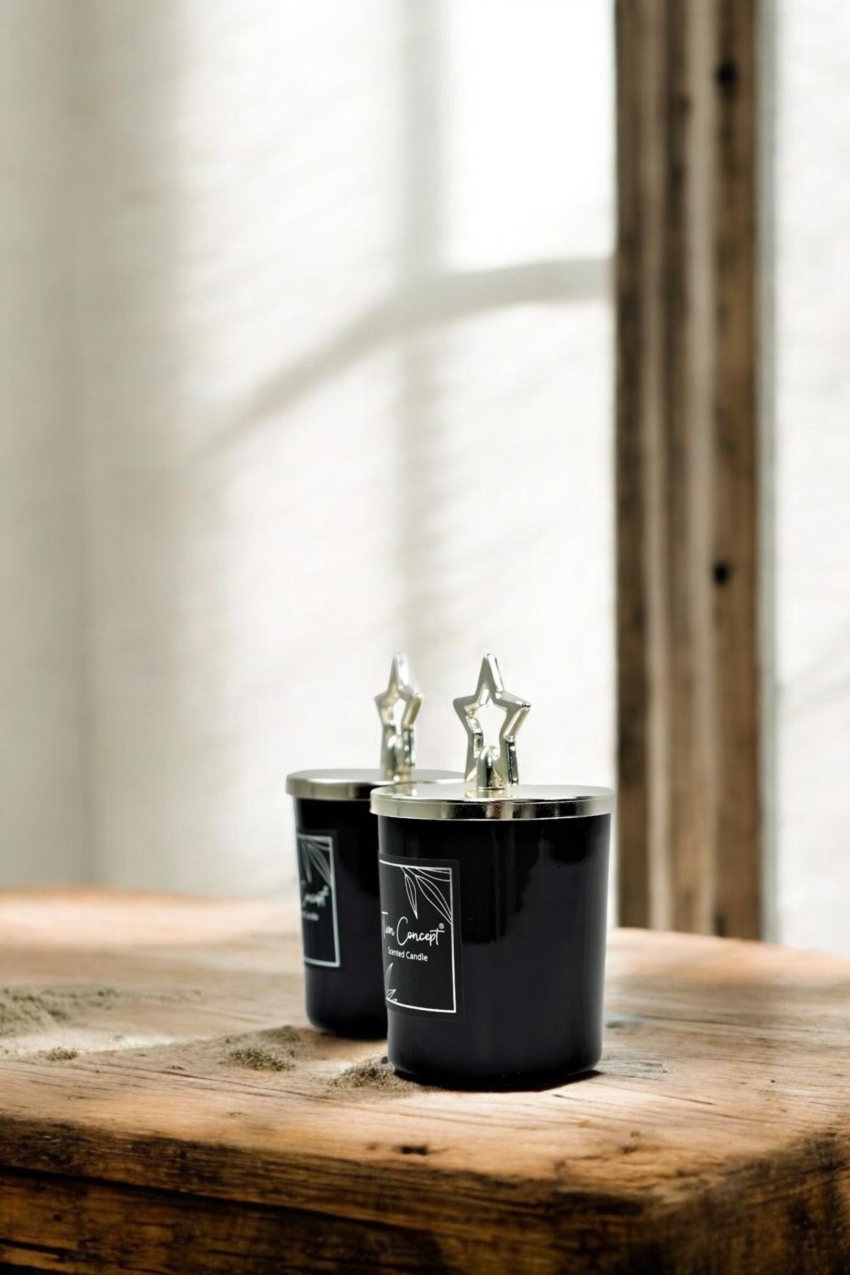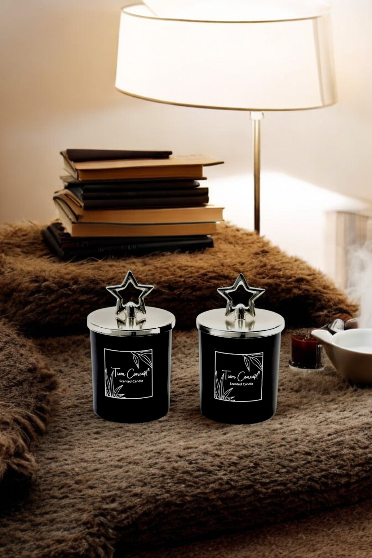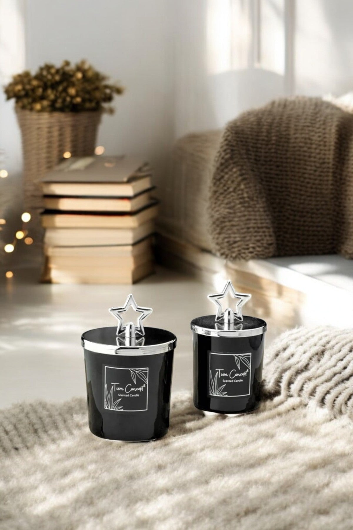 Tiem Concept Decorative Special Design Silver Star Headed 2-Piece Black Glass Candle Set