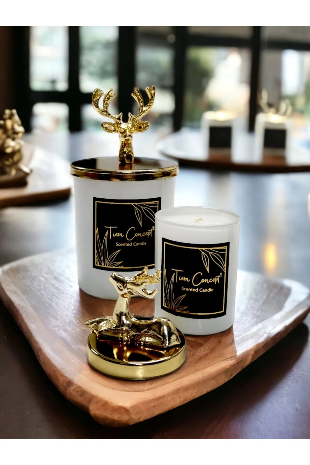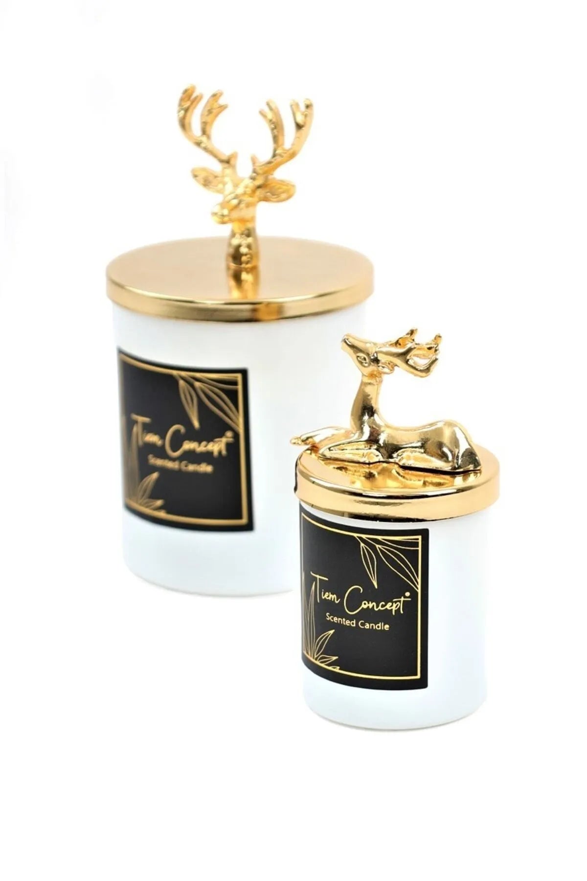 Tiem Concept Special Design Decorative Gold Deer Vanilla Scented 2-Piece White Glass Candle Set