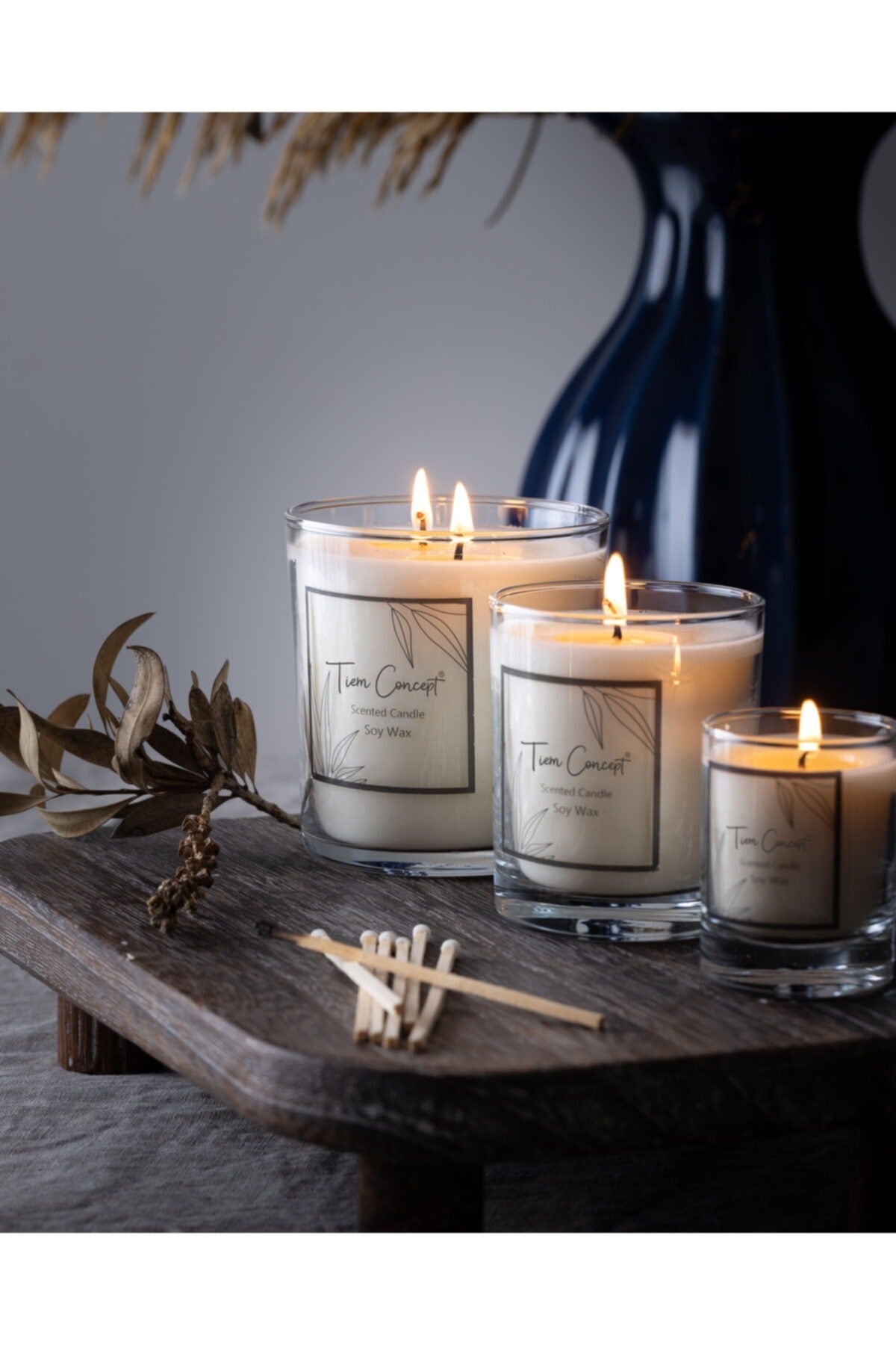 Tiem Concept Clear Glass Natural Production 3-Piece Glass Soy Candle Set