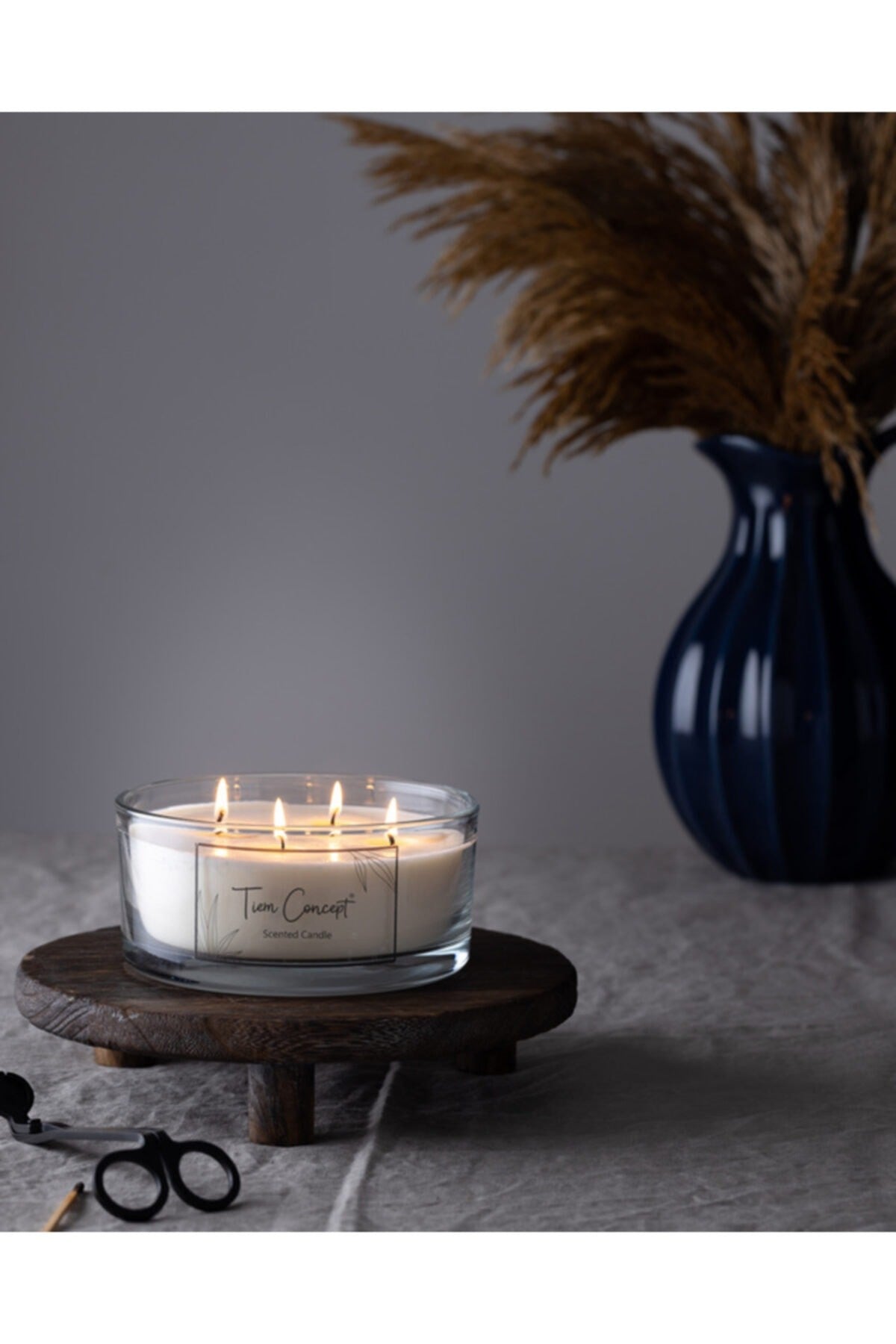 Tiem Concept Transparent Glass Natural Production Large Glass Soy Candle 4 Wicks (16x8 cm)