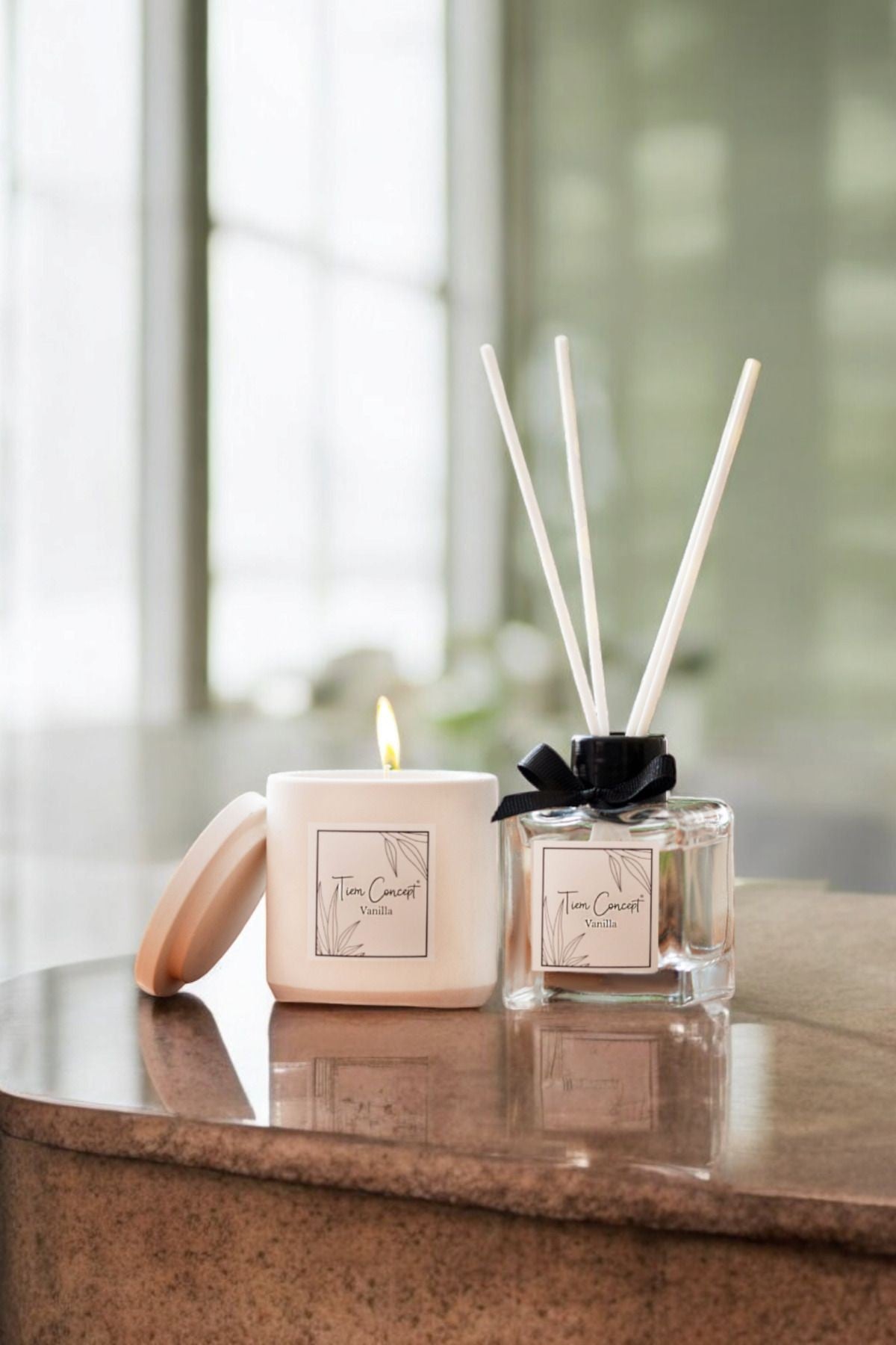 Dekoratif 2'li Vanilya Oda Kokusu Ve Beton Mum Seti