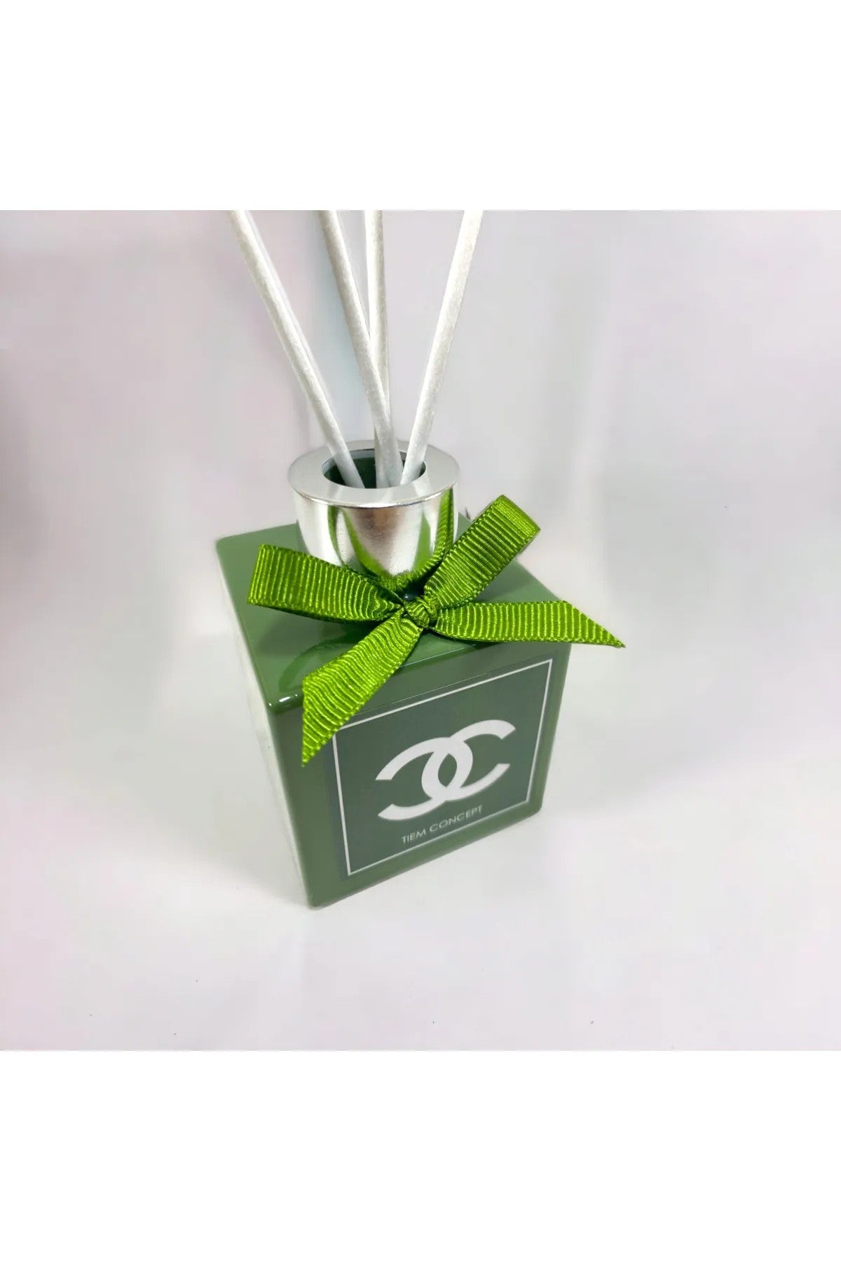 Şişenin önünde yeşil fiyonk bulunmaktadır. Oda kokusunda Vanilya esansı kullanılmıştır.