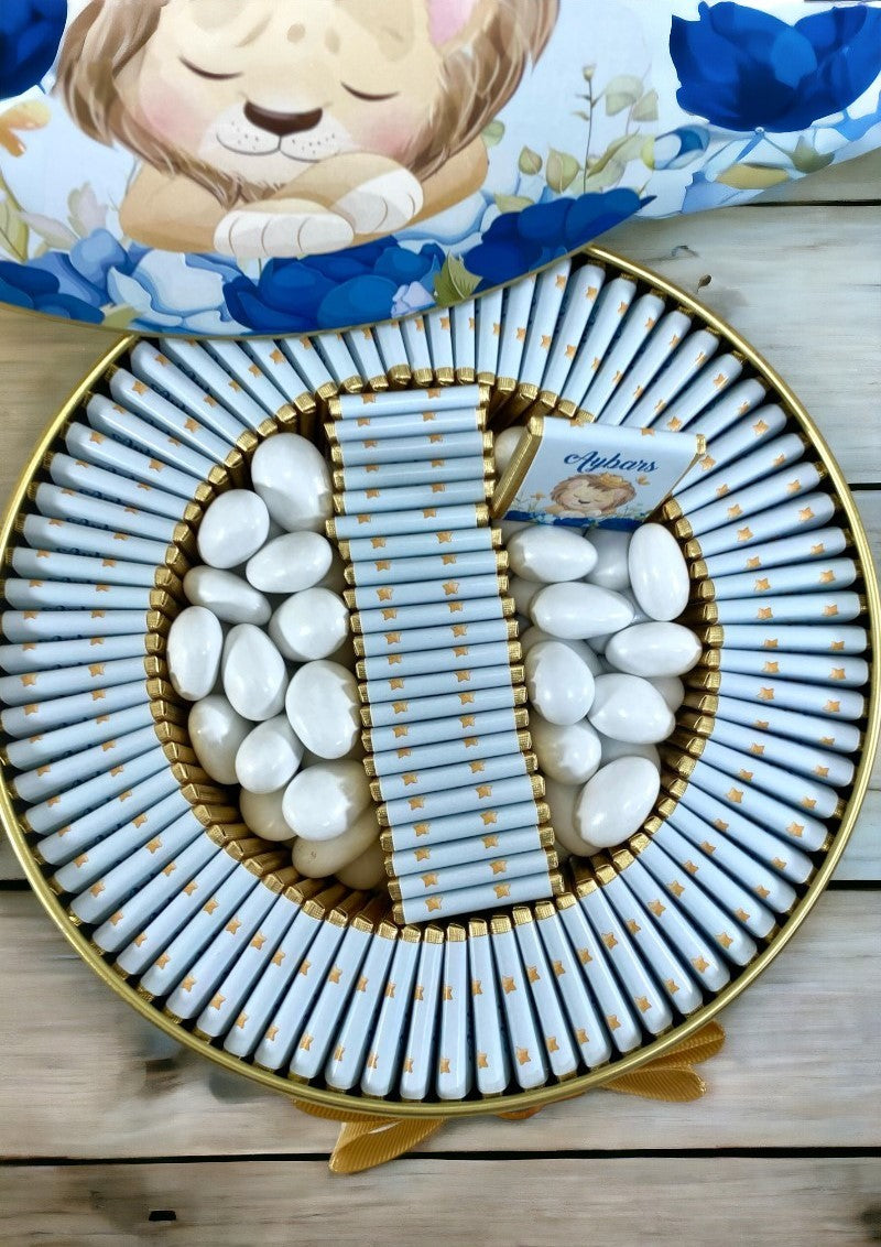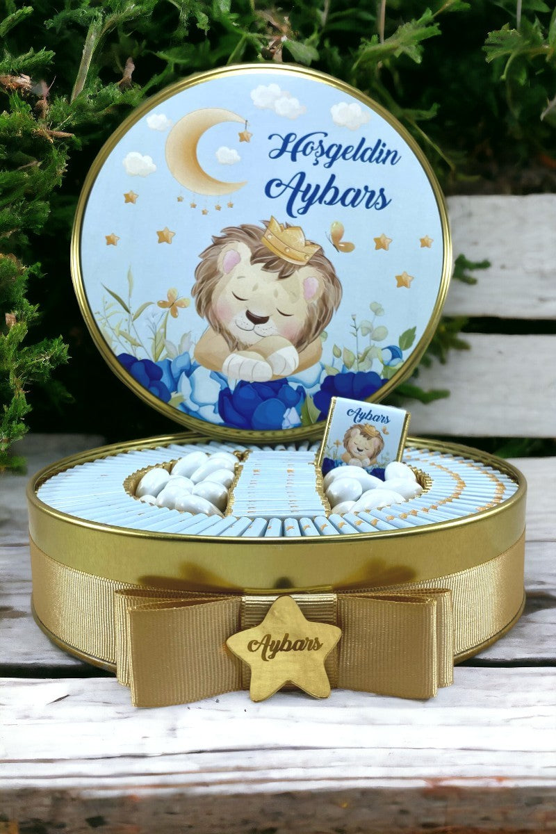 Gold Renkli Aslan Konseptli Erkek Bebek Çikolatası