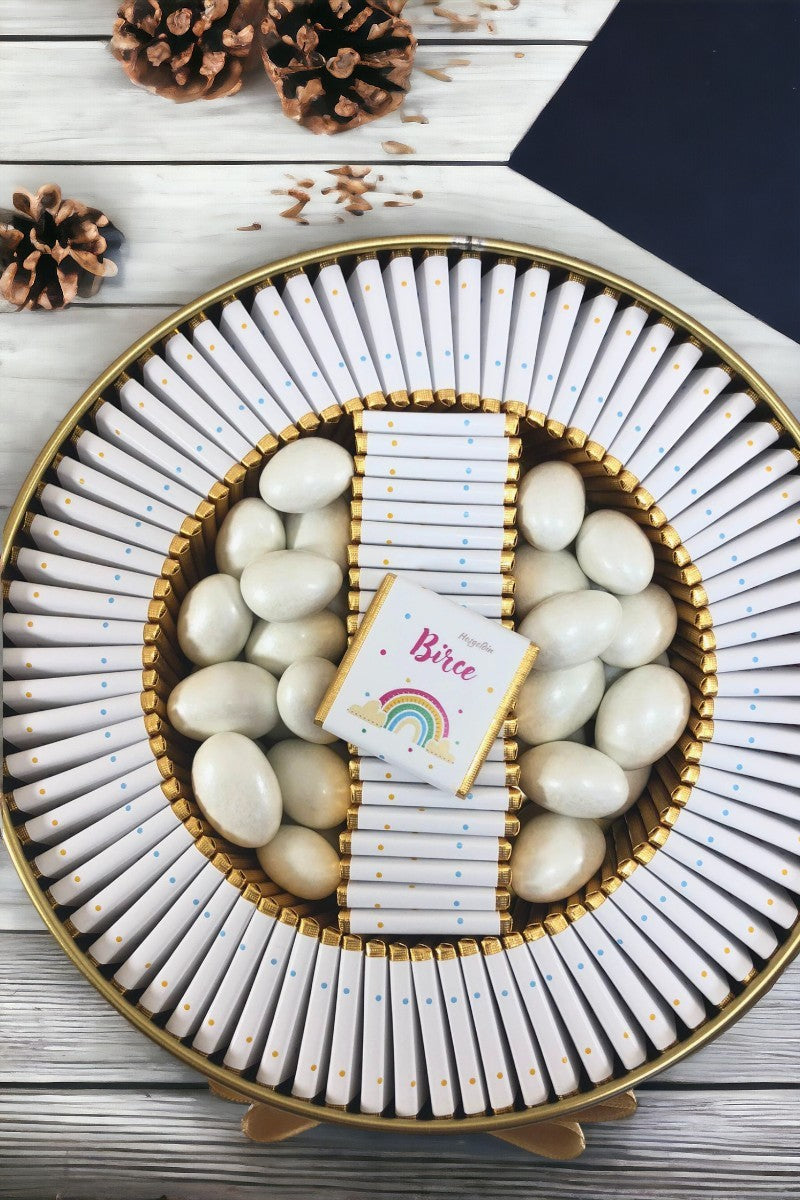 Gold Renkli Gökkuşağı Baskılı Kız Bebek Çikolatası