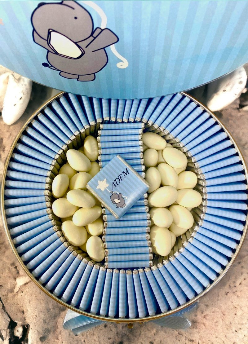 Mavi Renkli Fil Konseptli Erkek Bebek Çikolatası