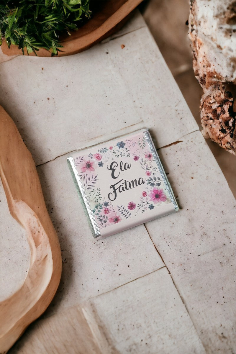 Pembe Çiçek Desenli Kız Bebek Çikolatası