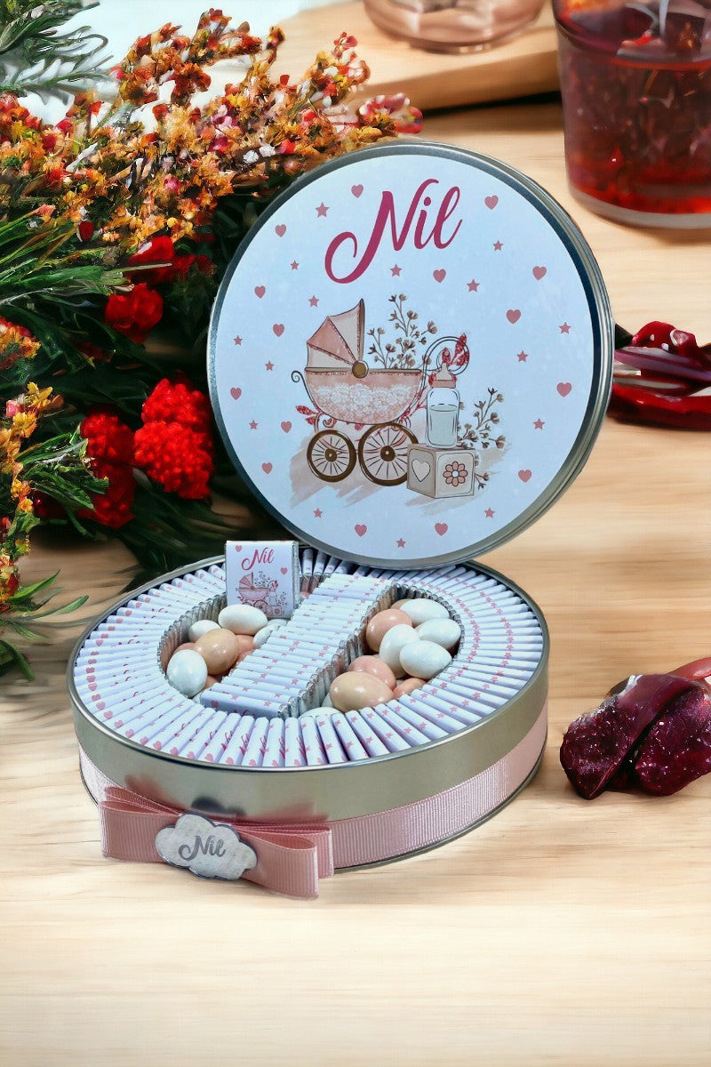 Pudra Renkli Bebek Arabası Baskılı Kız Bebek Çikolatası