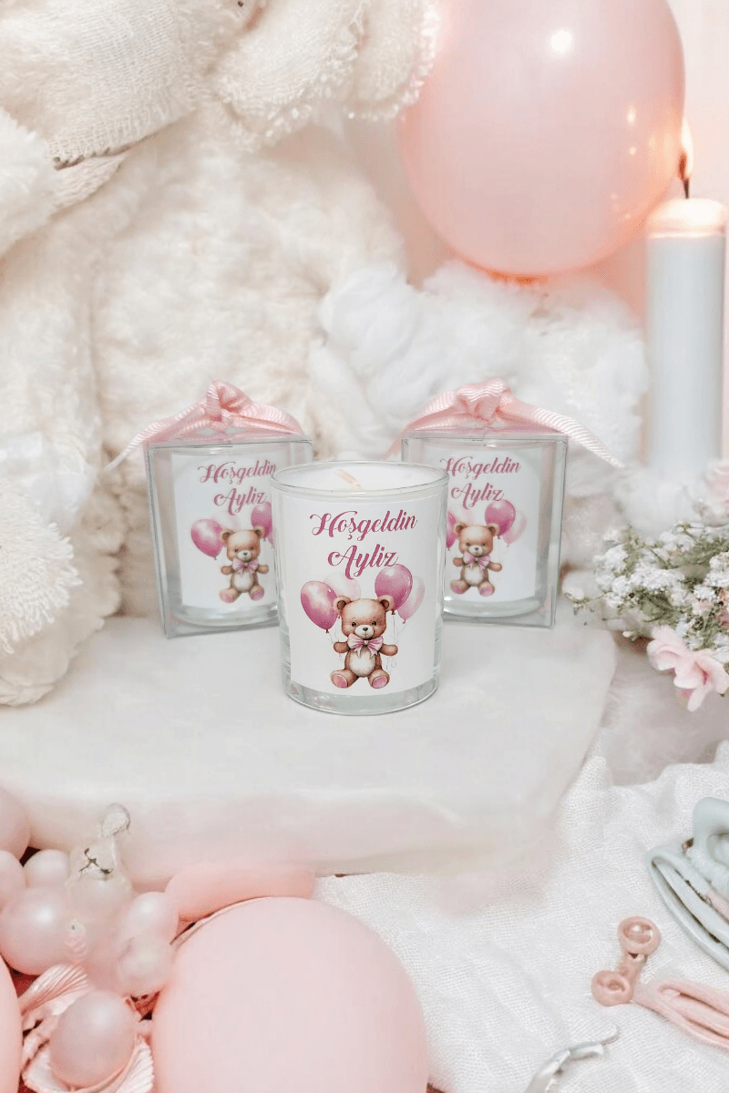 Bebek Hediyelik Uçan Balon Baskılı 10 Adet Bardak Mum;