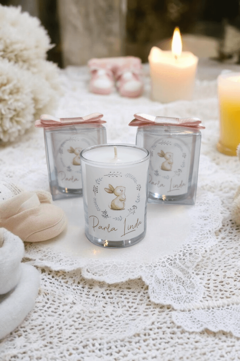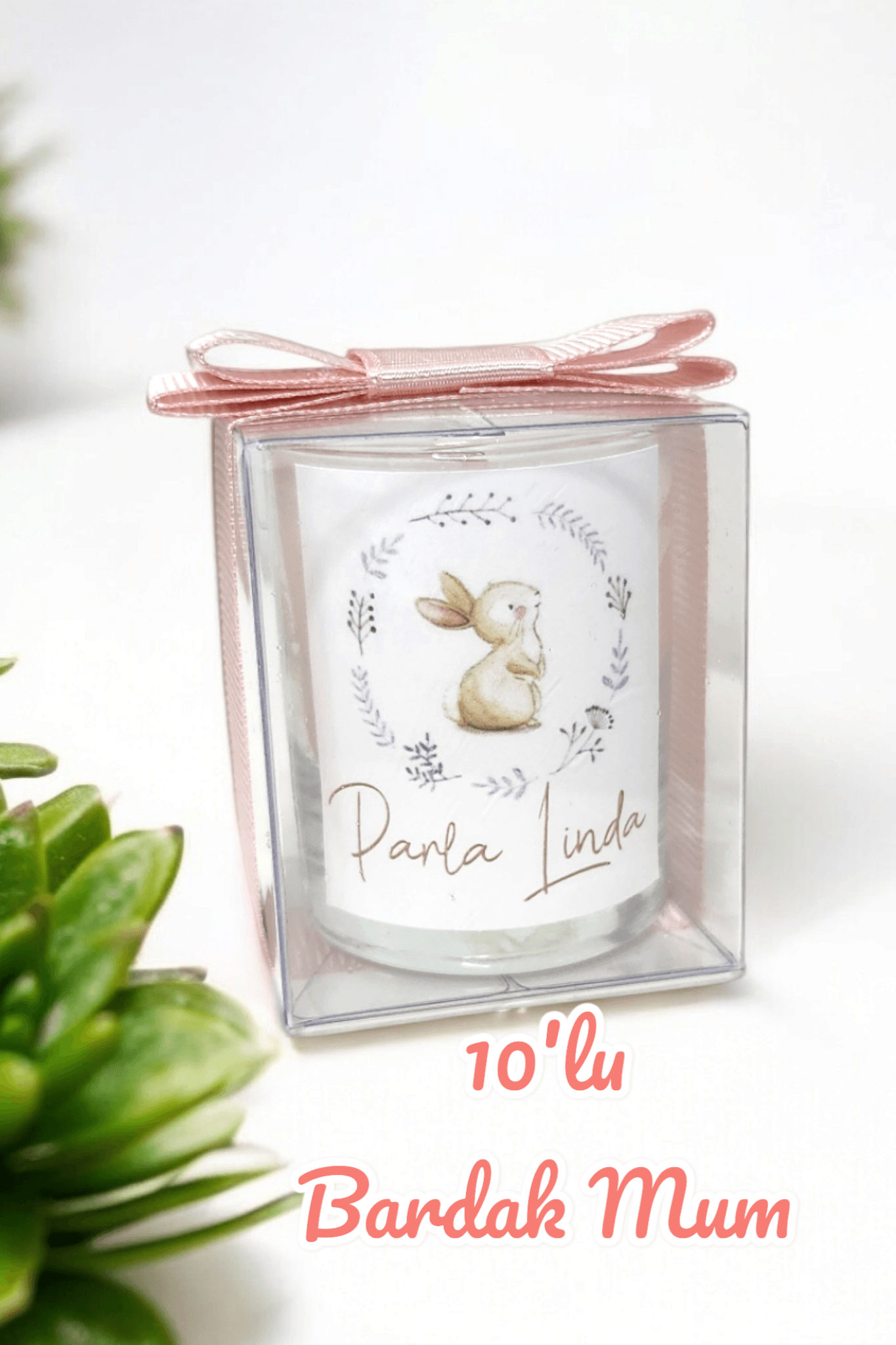 Tiem Concept Bebek Hediyelik Tavşan Baskılı 10 Adet Bardak Mum
