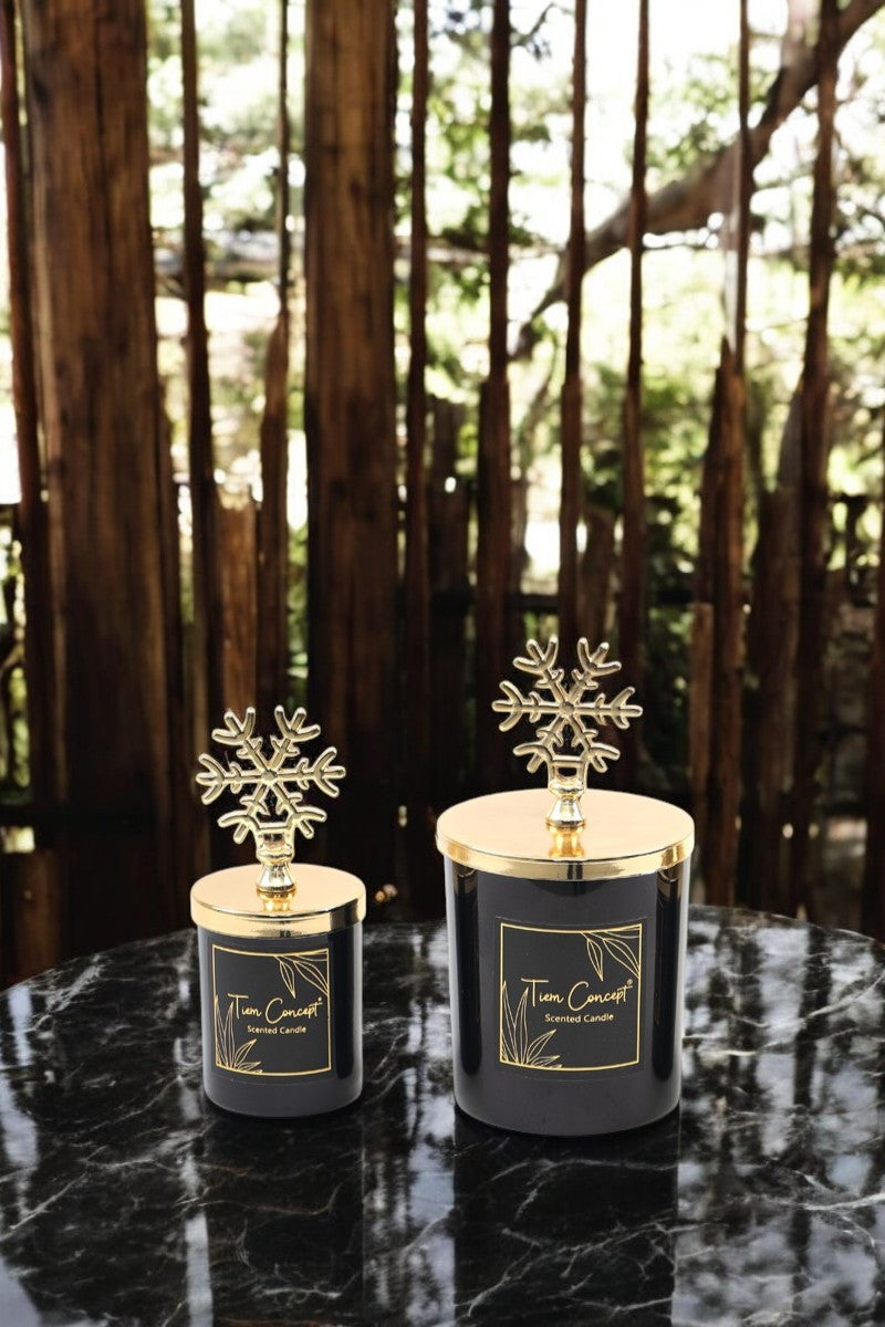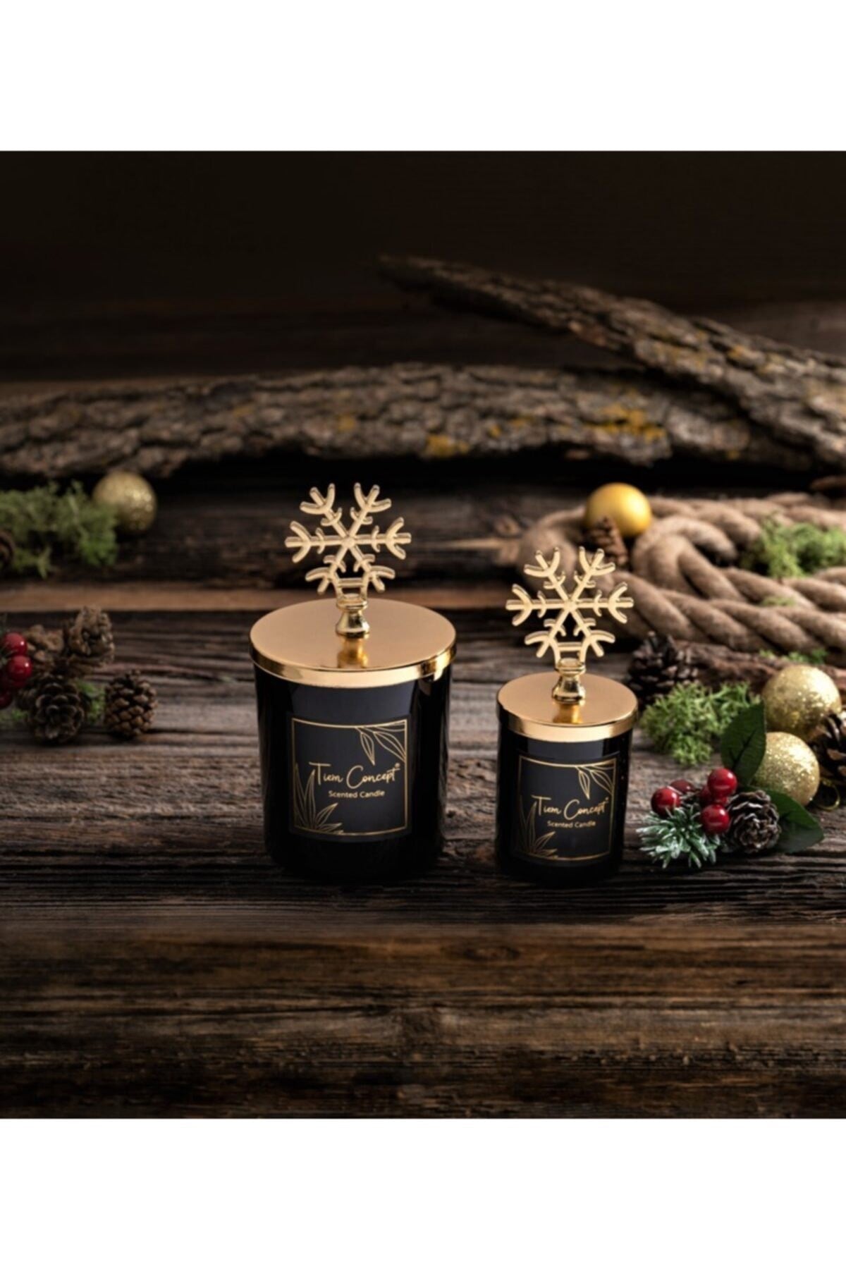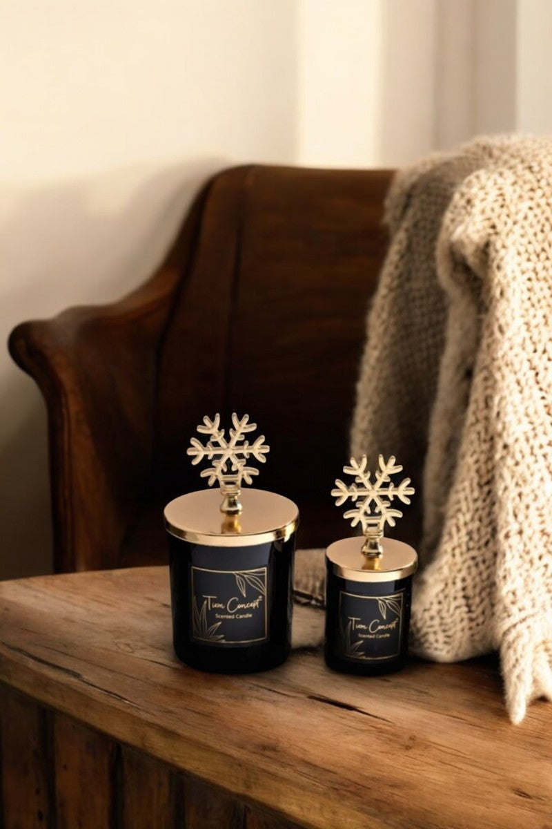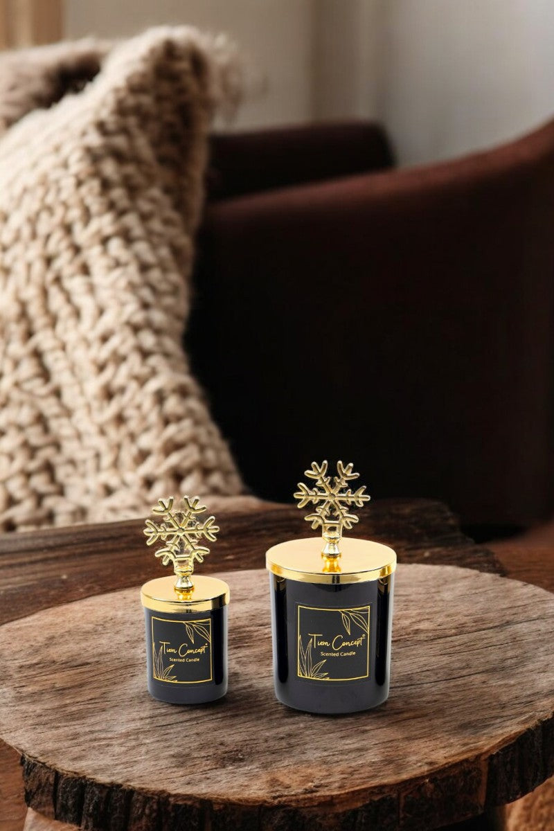Dekoratif Gold Kar Taneli Vanilya Kokulu Siyah Bardak 2'li Mum Seti
