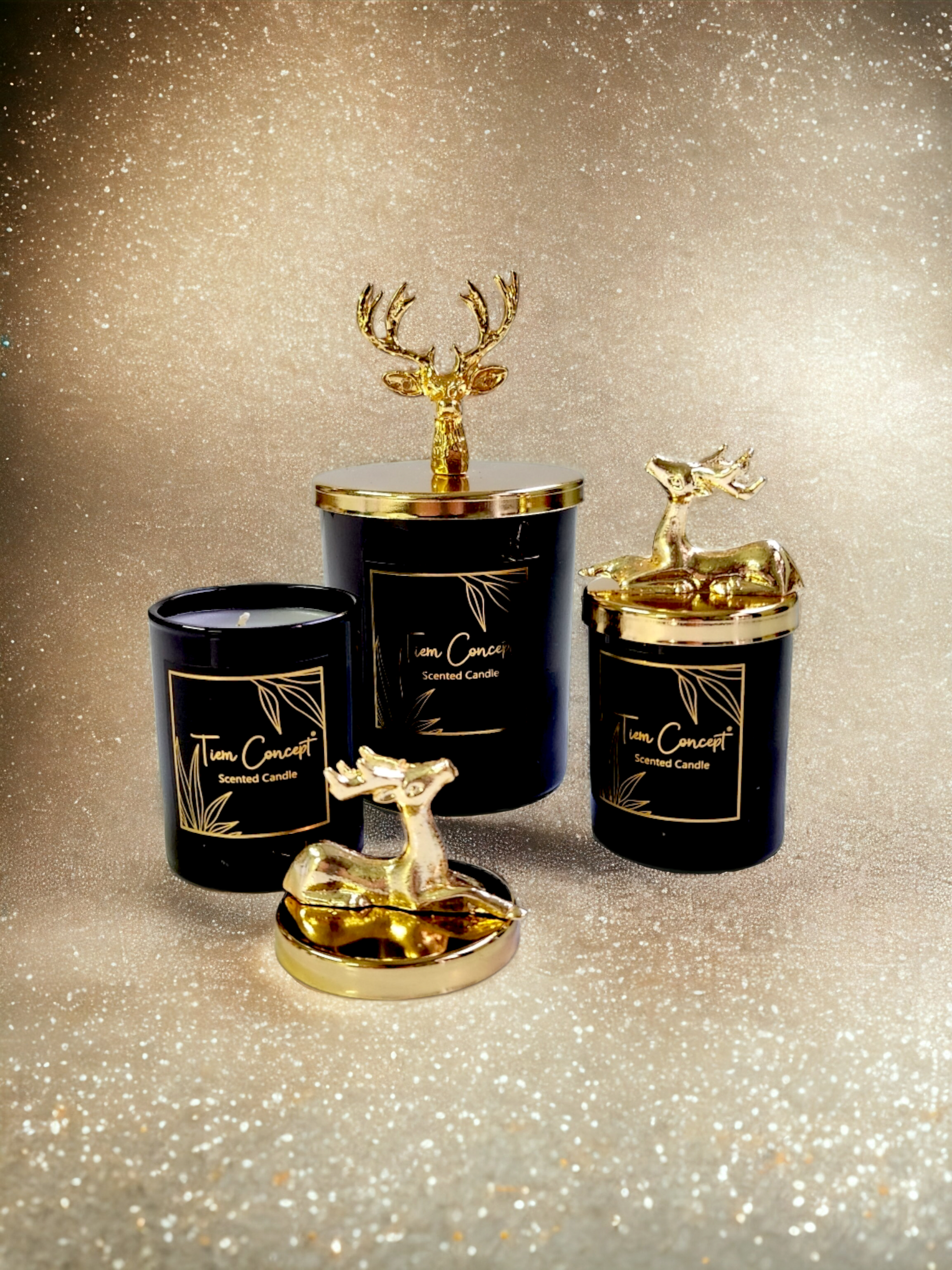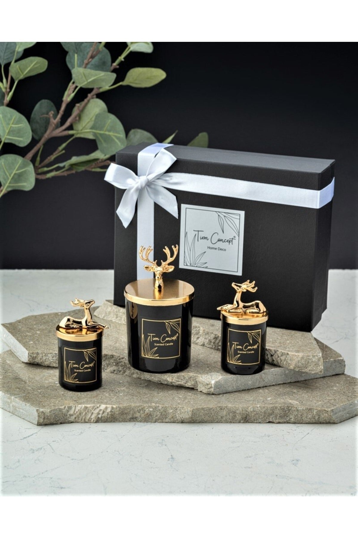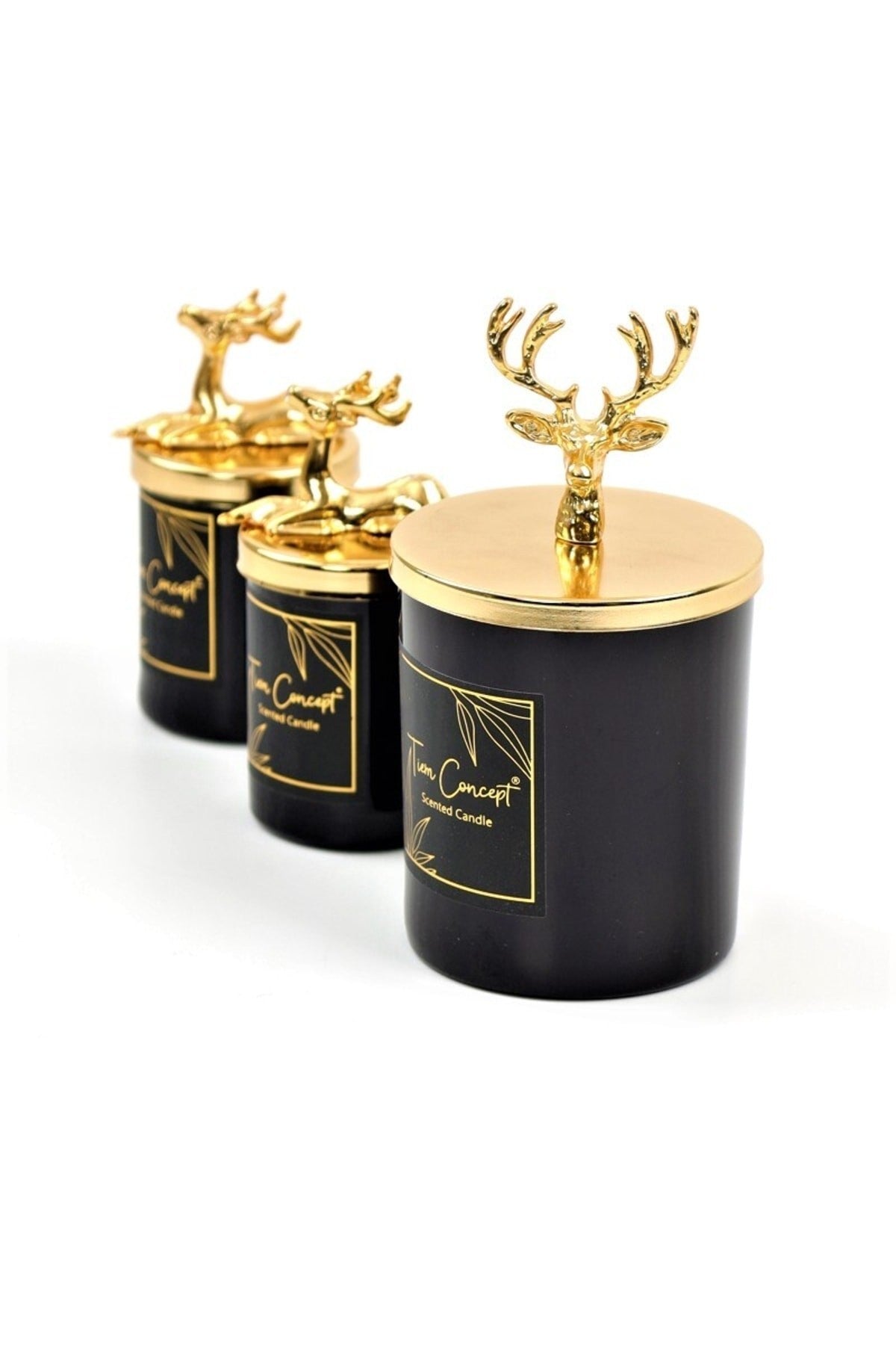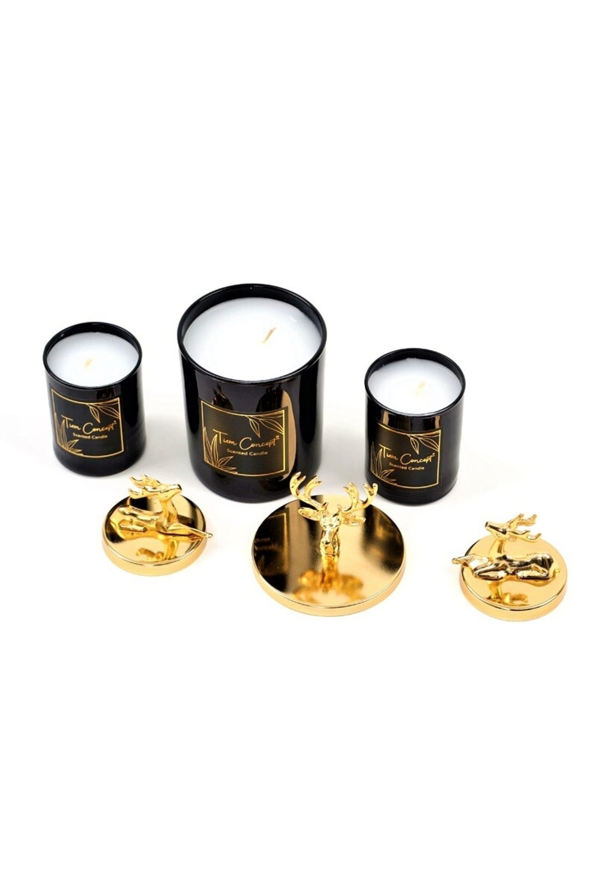 Yılbaşı Dekoratif Hediye Kutulu Vanilya Kokulu Gold Geyikli 3'lü Siyah Bardak Mum Seti