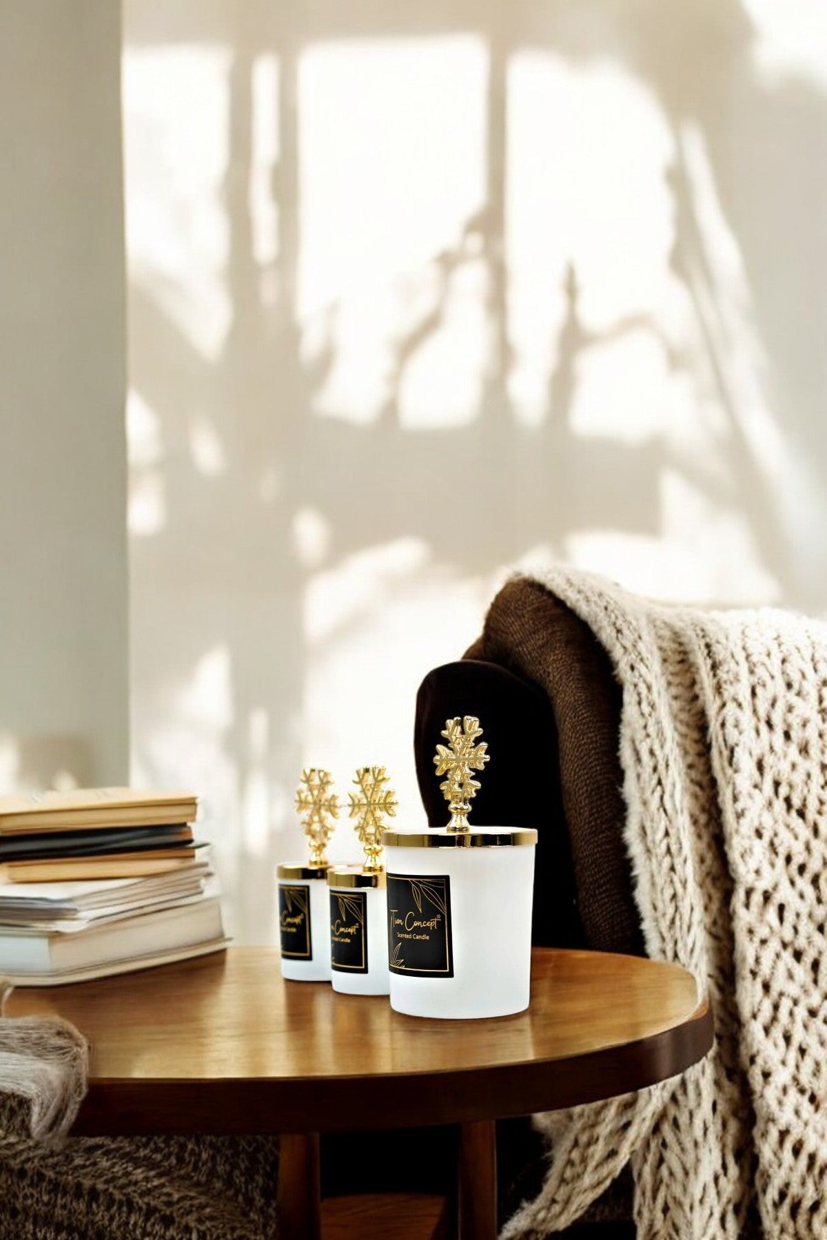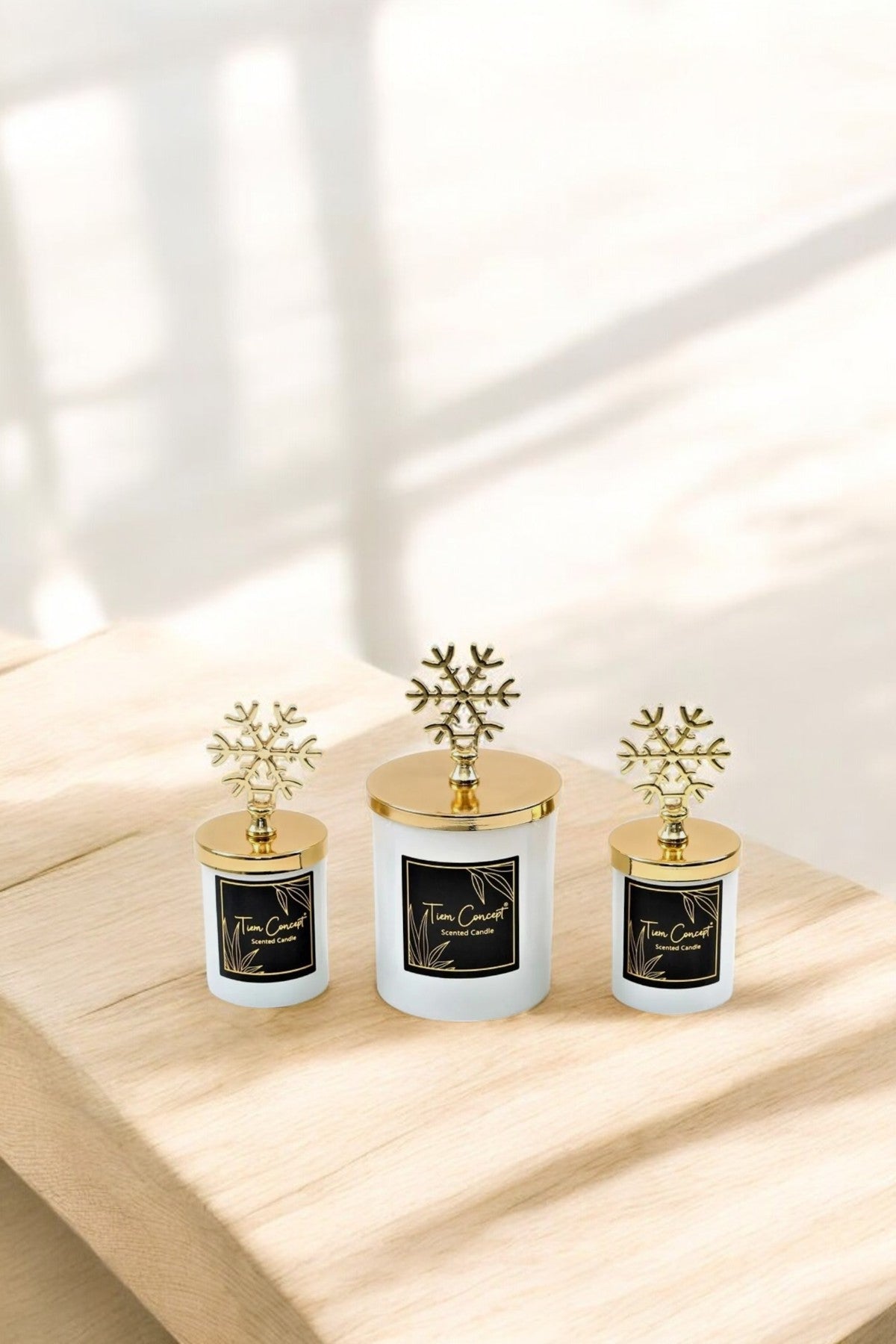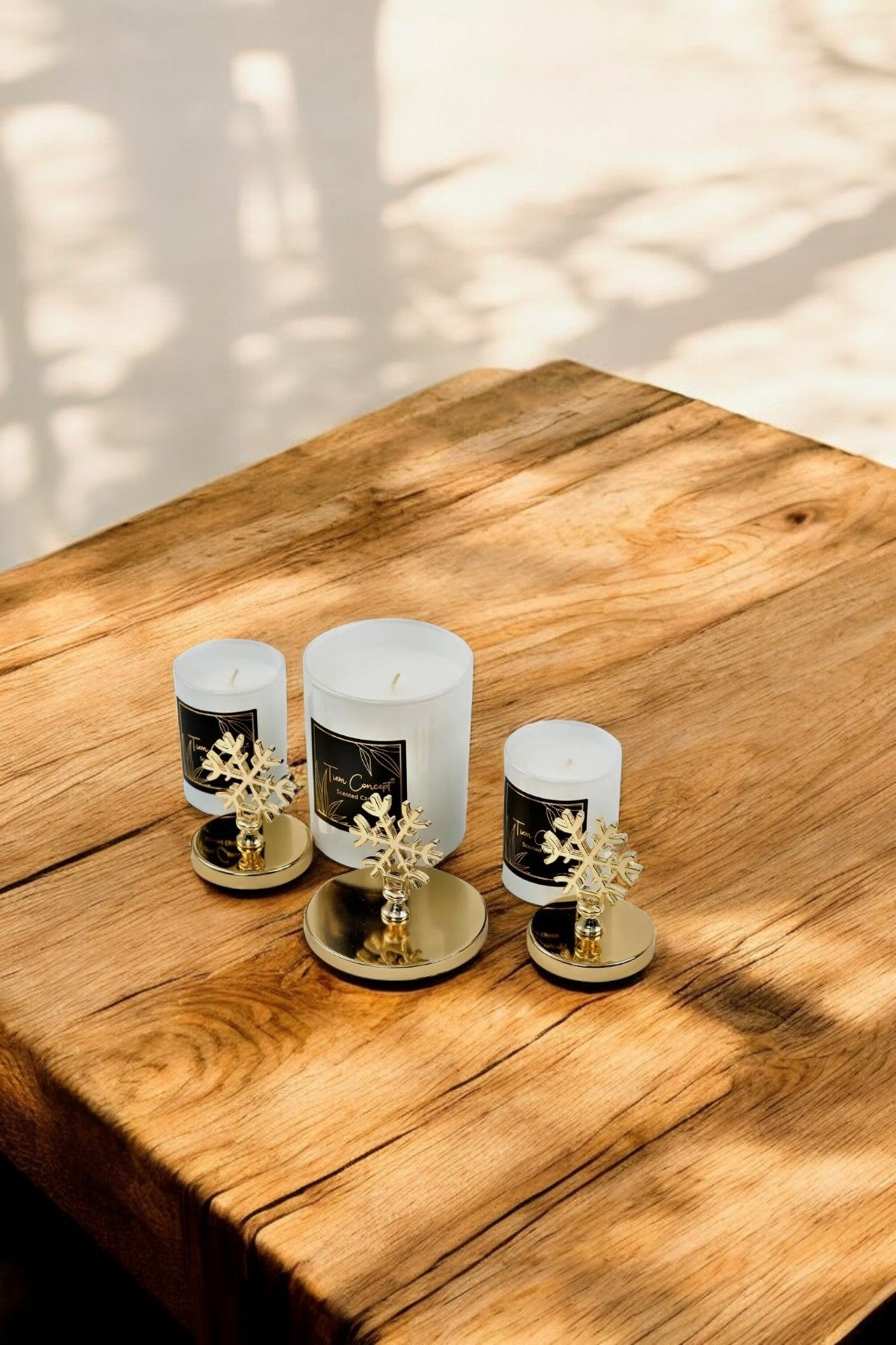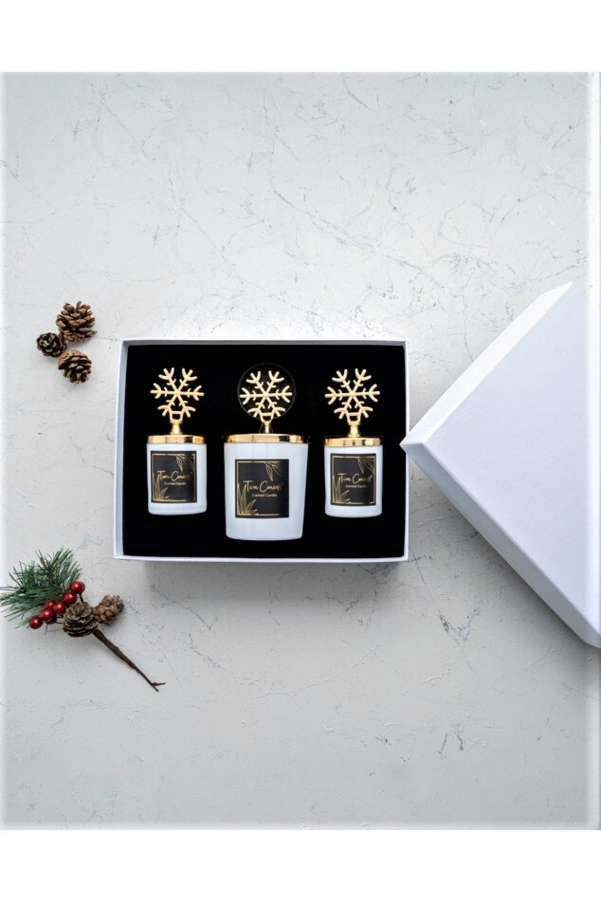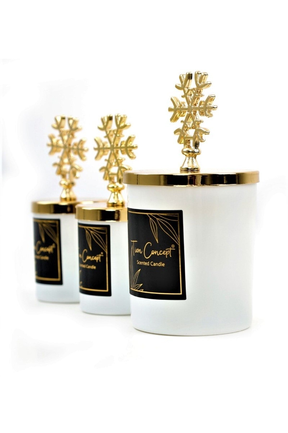 Yılbaşı Dekoratif Hediye Kutulu Vanilya Kokulu Gold Kar Taneli 3lü Beyaz Bardak Mum Seti