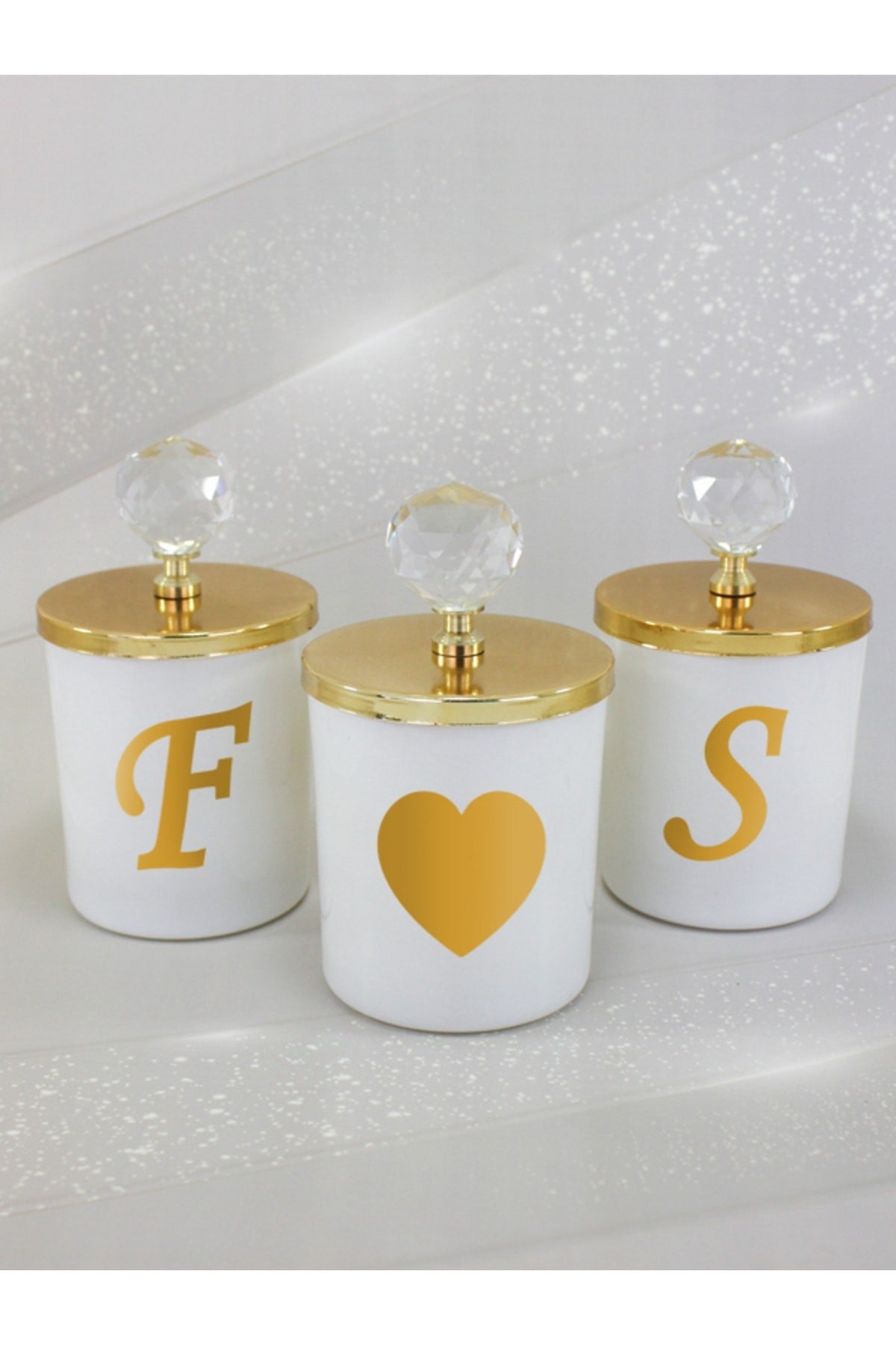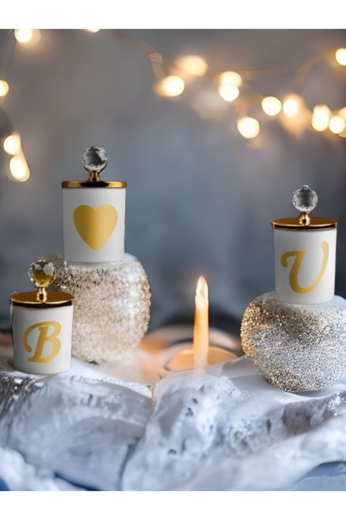 Dekoratif Kişiye Özel Harfli Vanilyalı Gold Kristalli 3'lü Bardak Mum Seti