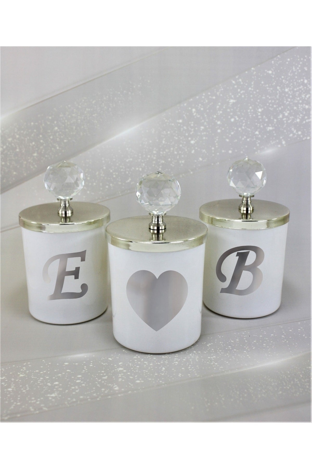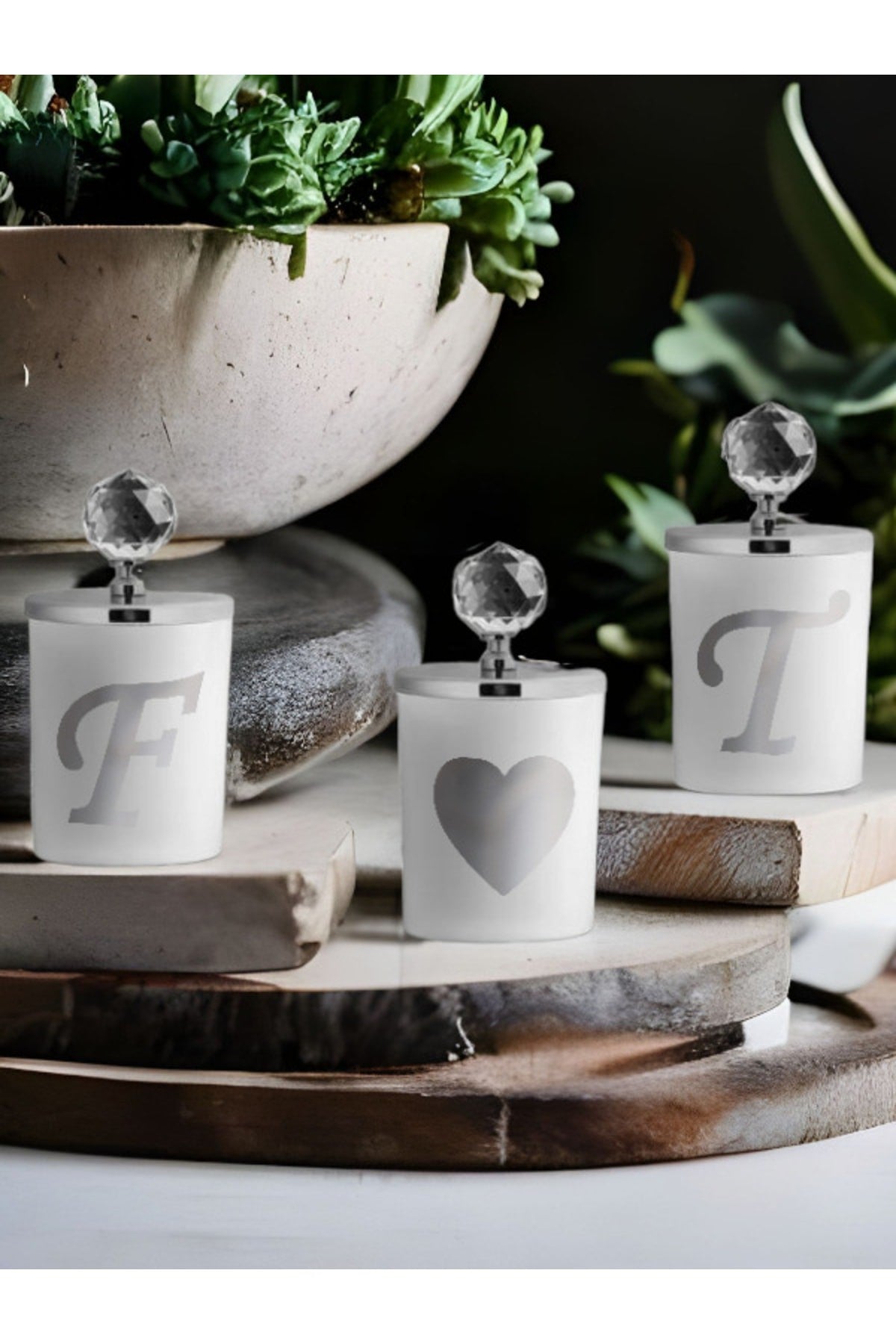 Dekoratif Kişiye Özel Harfli Vanilyalı Gümüş Kristalli 3'lü Bardak Mum Seti
