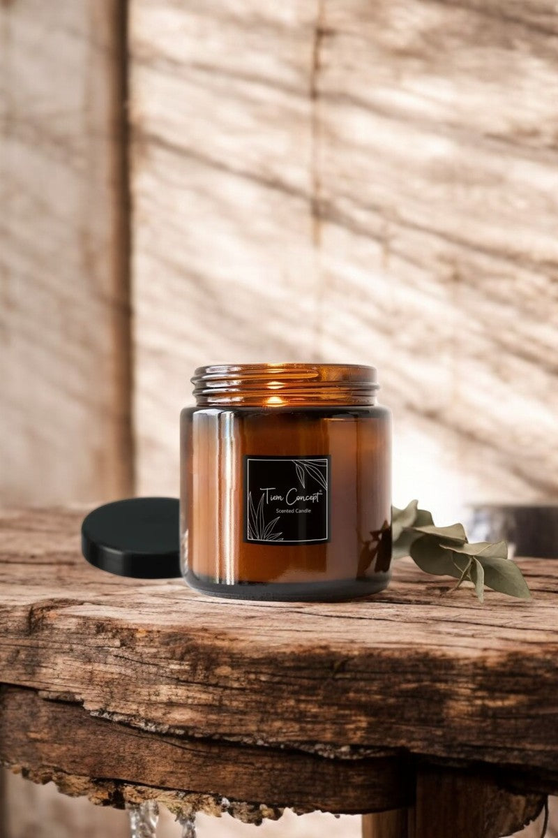 %100 Soya Özel Tasarım Amber Kokulu Kavanoz Mum
