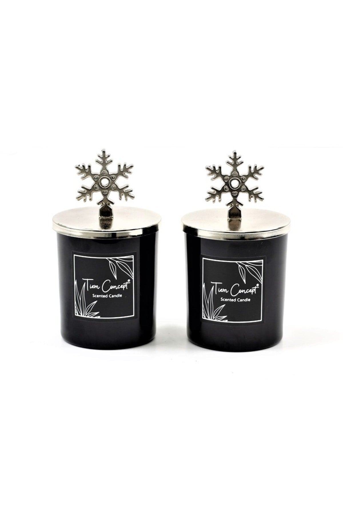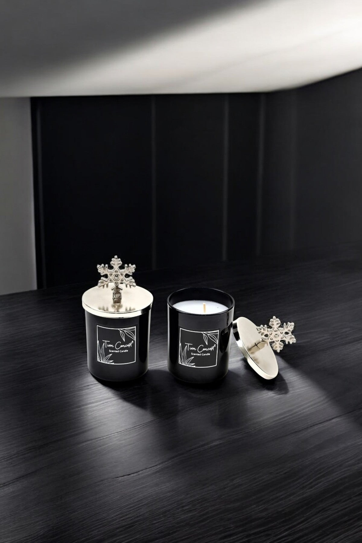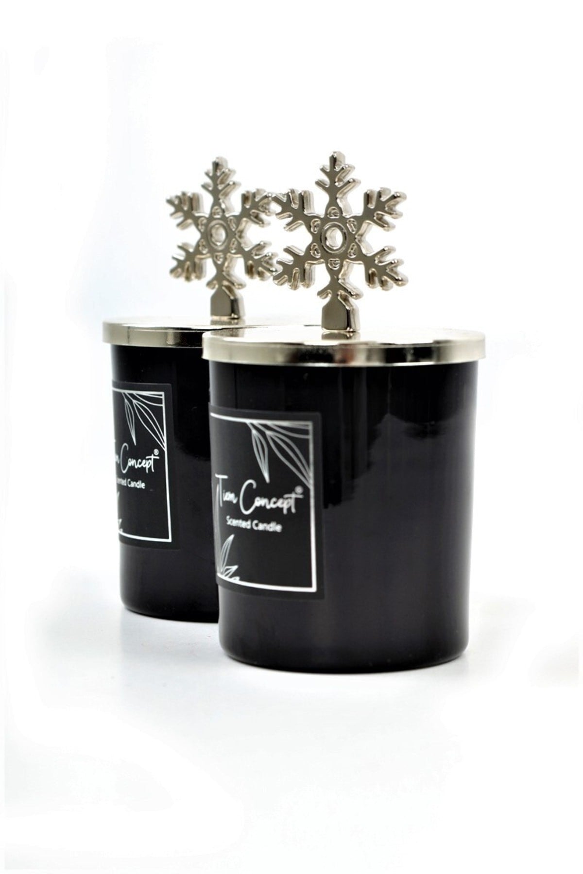 Dekoratif Özel Tasarım Gümüş Kar Tanesi Başlıklı 2 'li Siyah Bardak Mum Seti