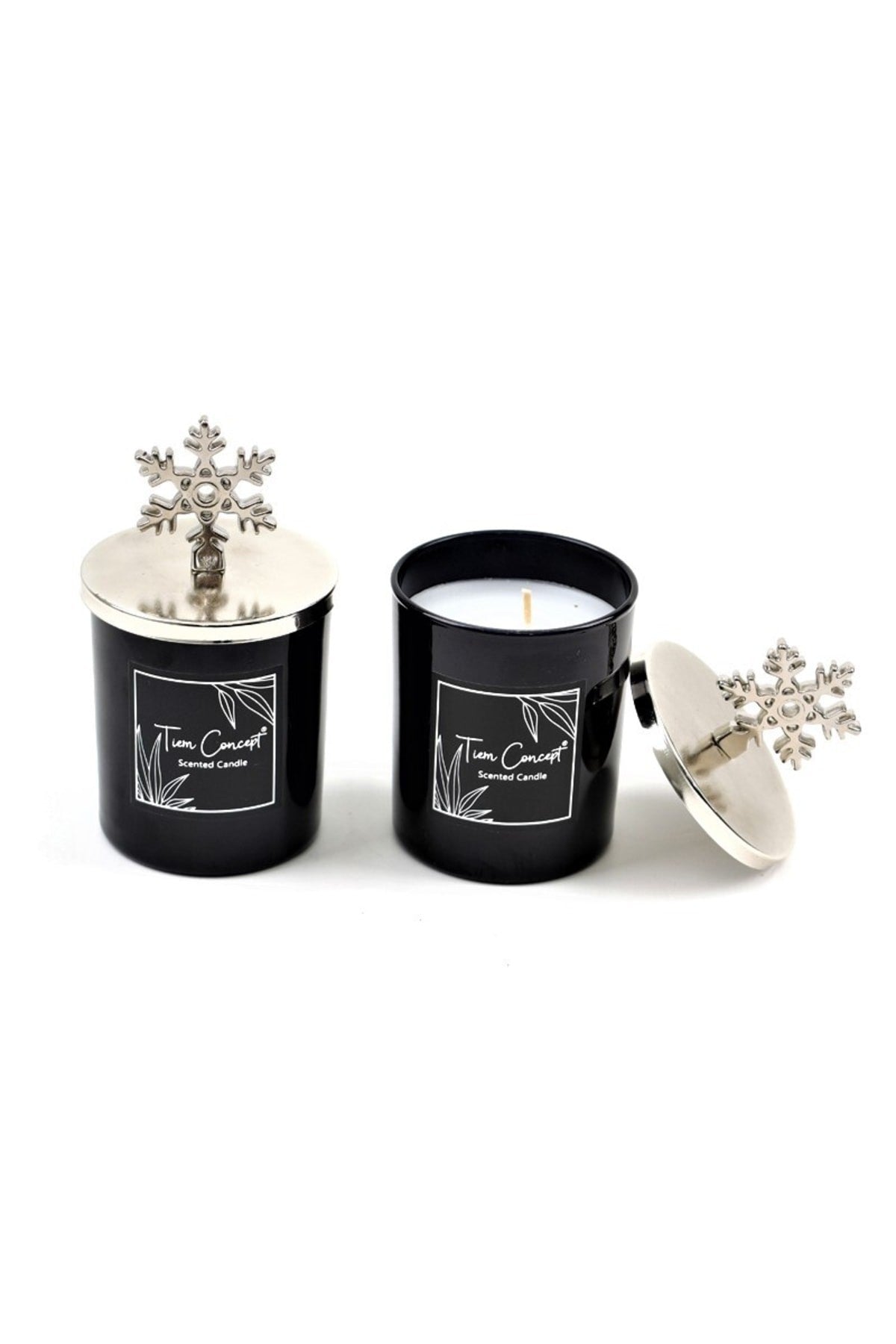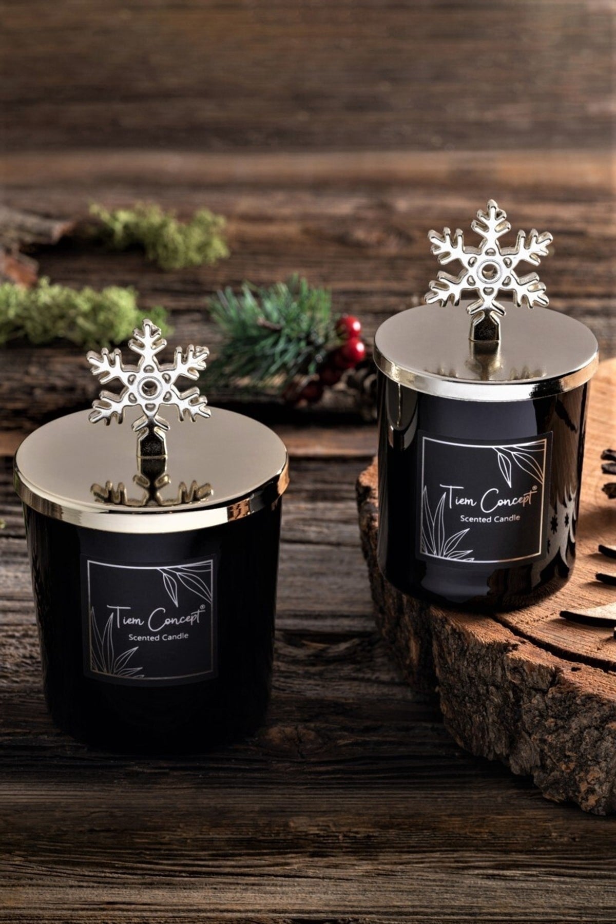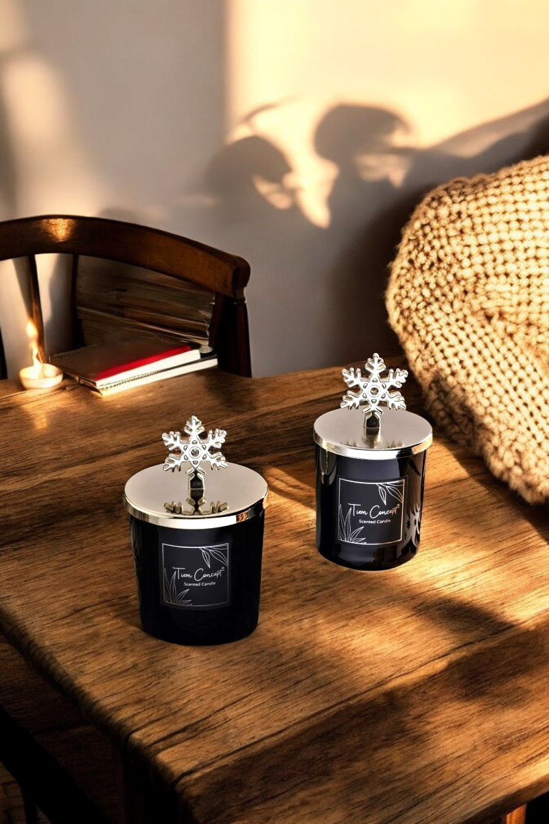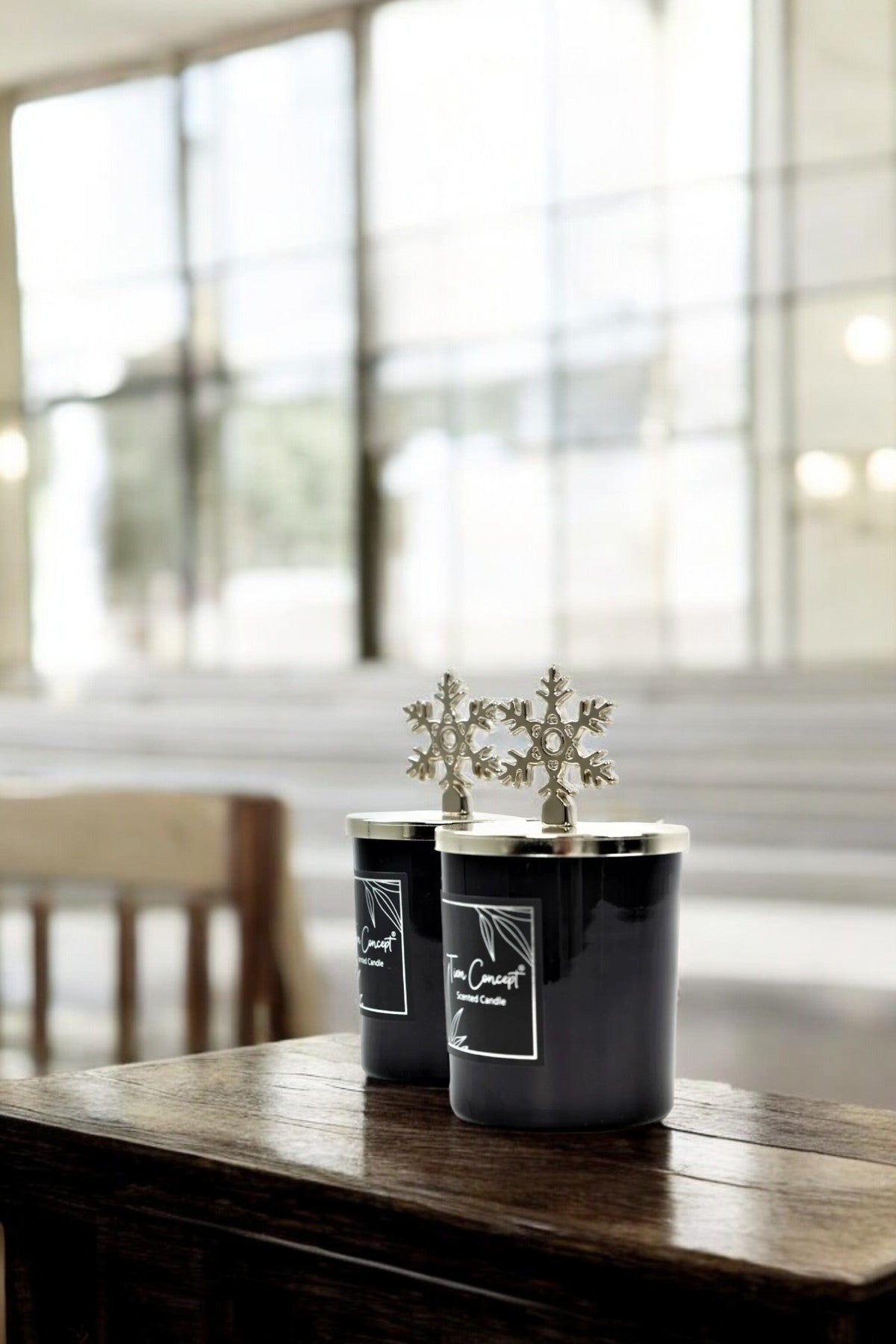 Dekoratif Özel Tasarım Gümüş Kar Tanesi Başlıklı 2 'li Siyah Bardak Mum Seti