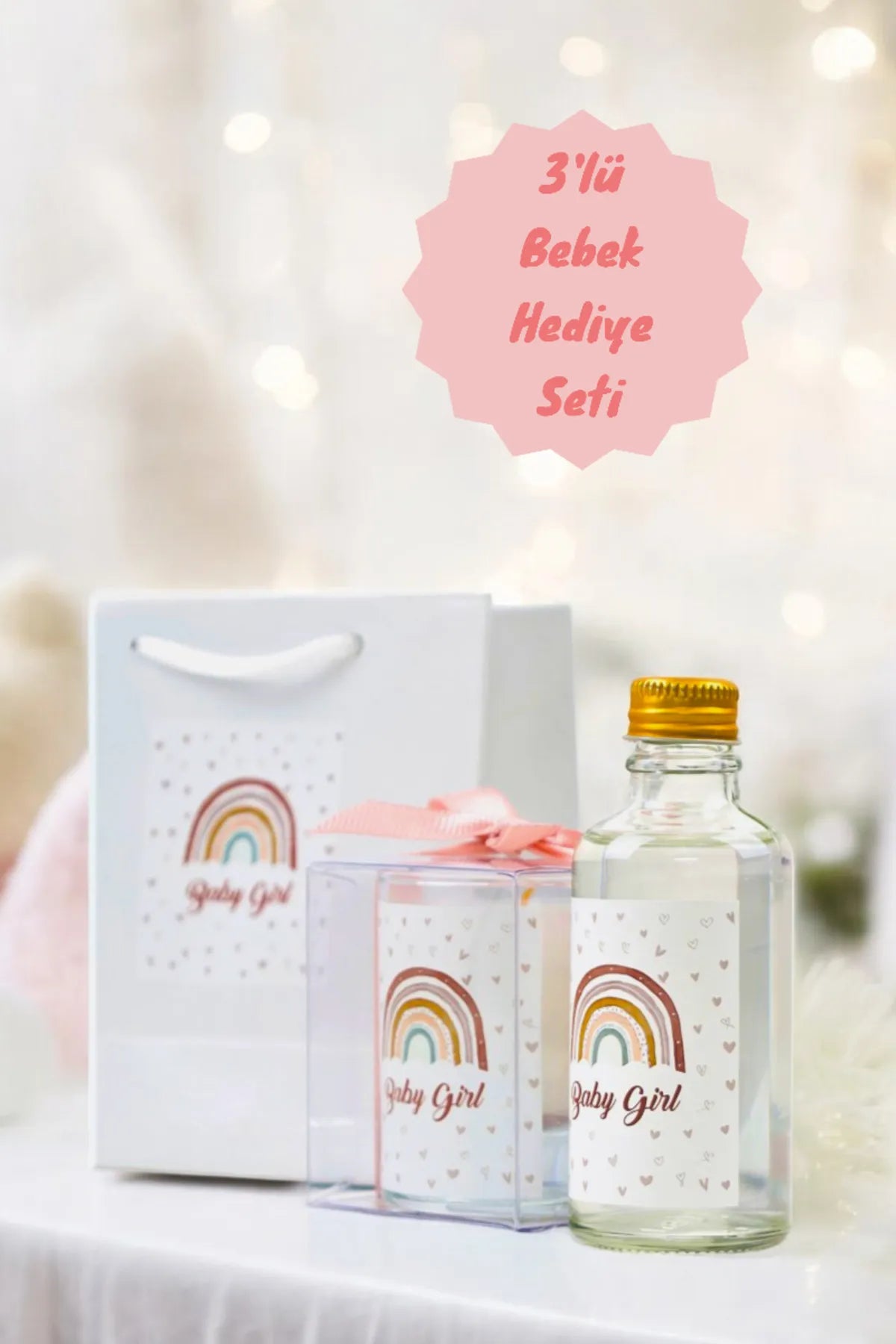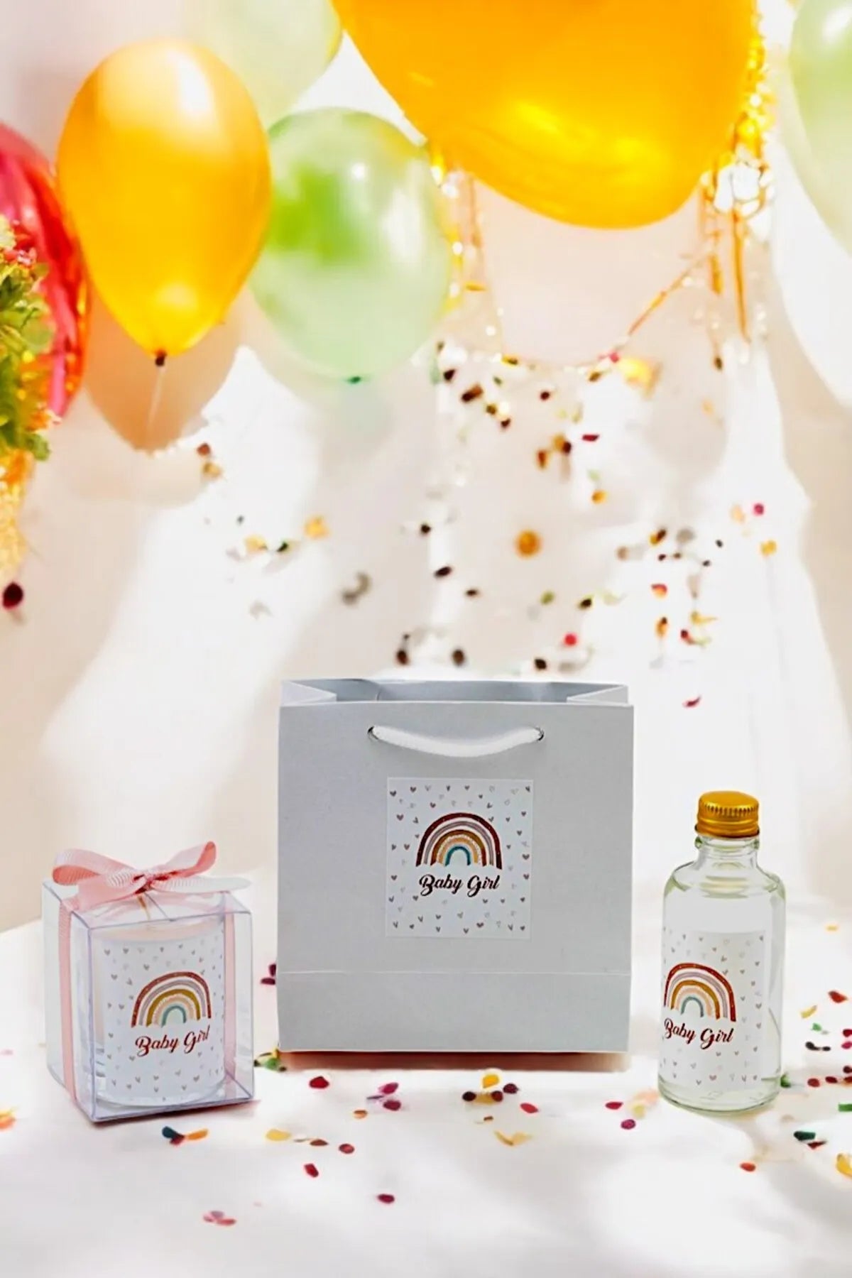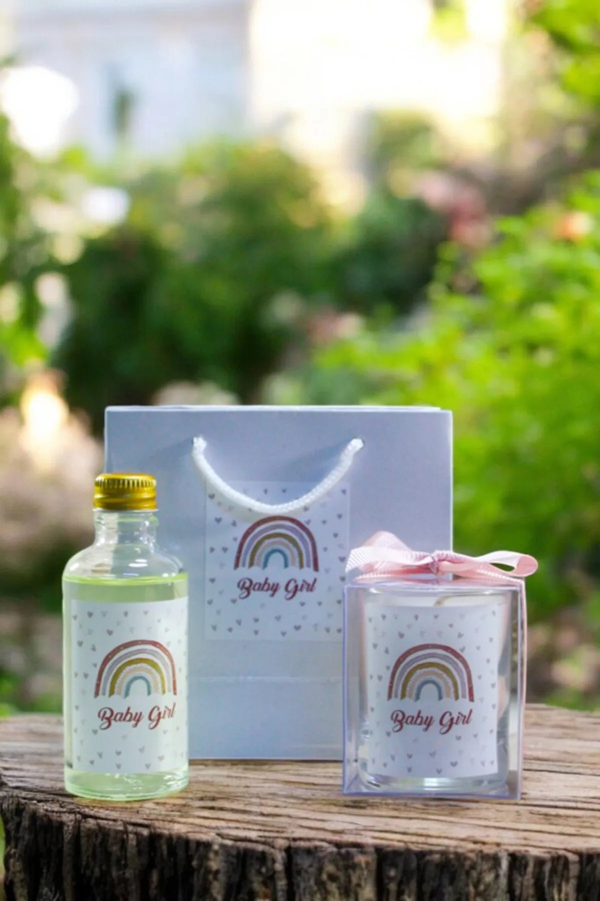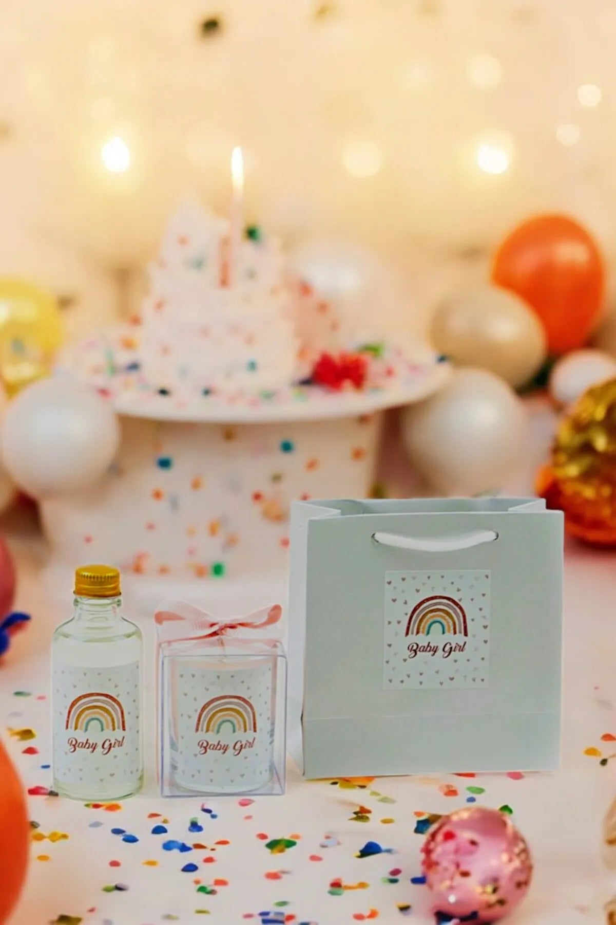 Kişiye Özel Bebek Hediyelik Doğum ve Doğum günü Çantalı Kolonya ve Mum Seti 10'lu