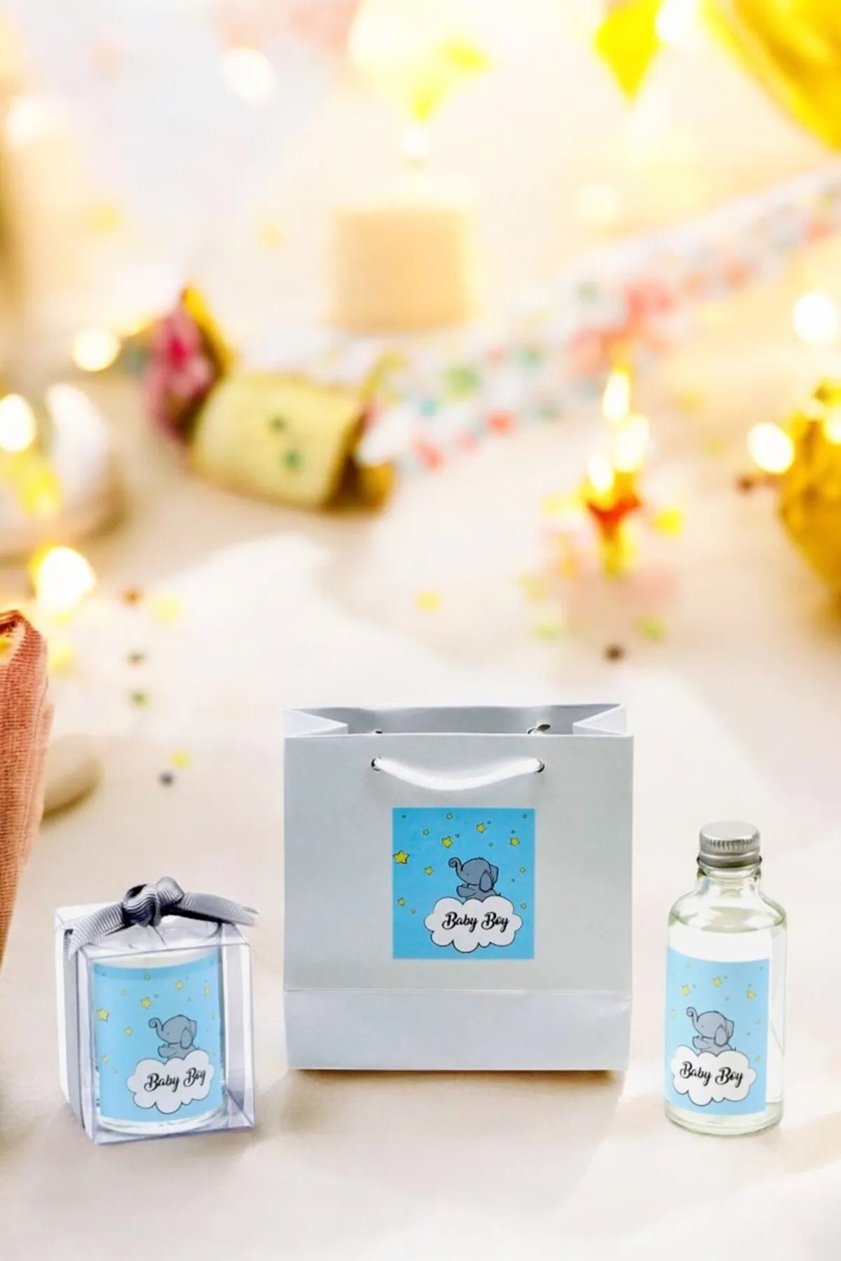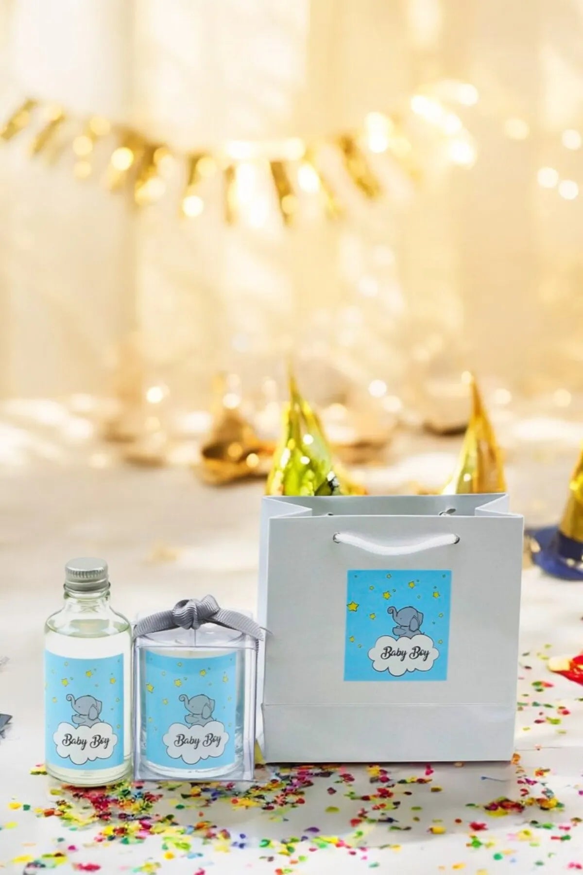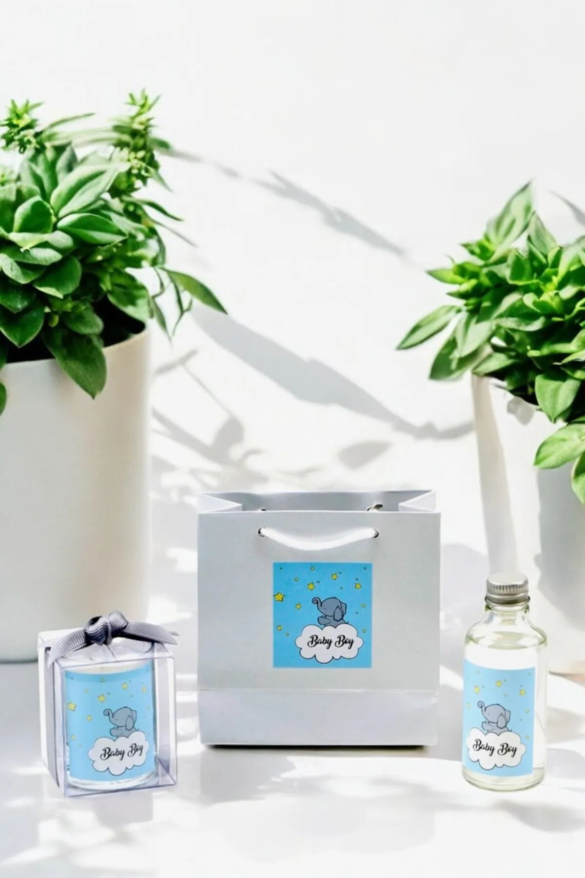 Kişiye Özel Bebek Hediyelik Doğum ve Doğumgünü Baskılı Çantalı Kolonya ve Mum Seti