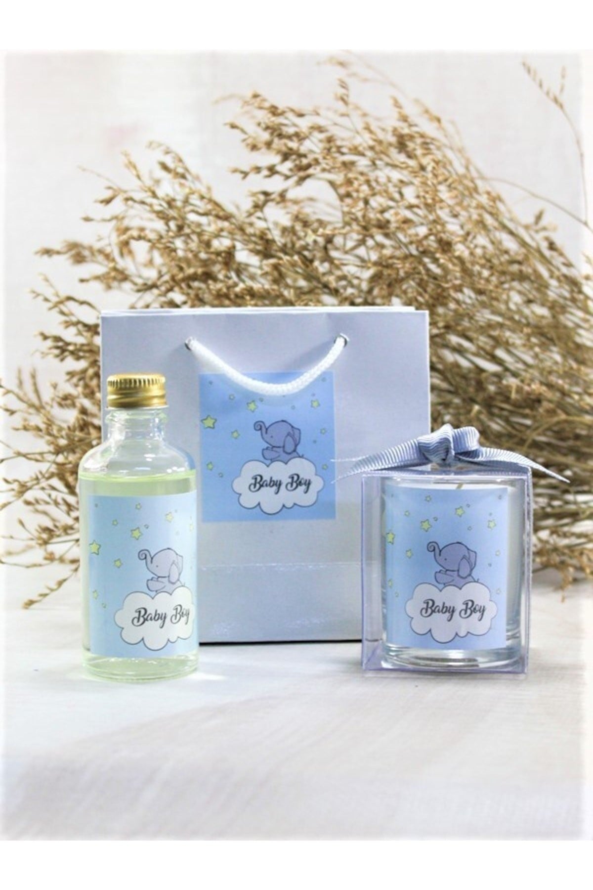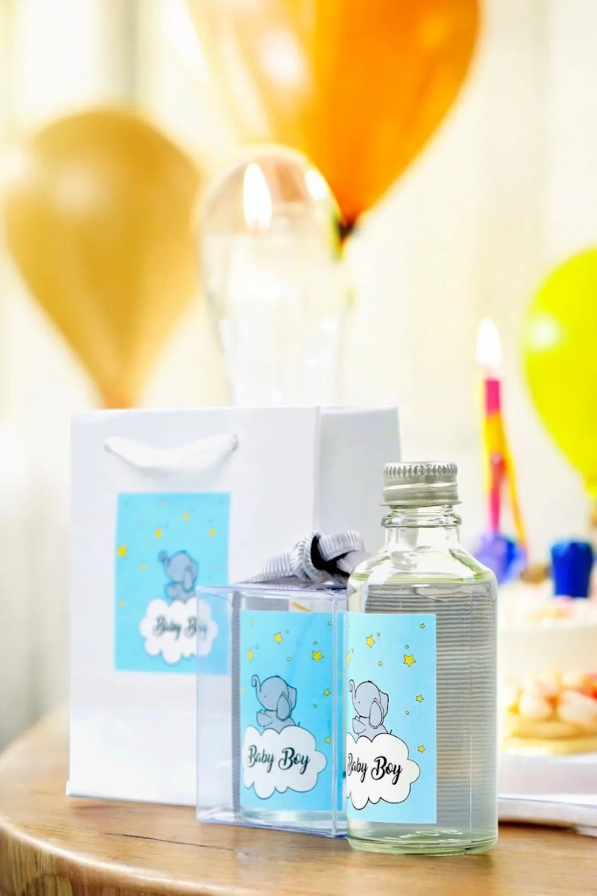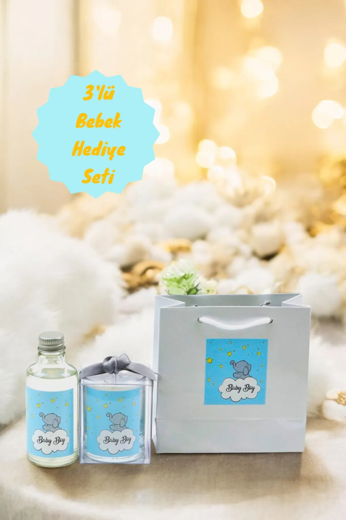 Kişiye Özel Bebek Hediyelik Doğum ve Doğumgünü Baskılı Çantalı Kolonya ve Mum Seti