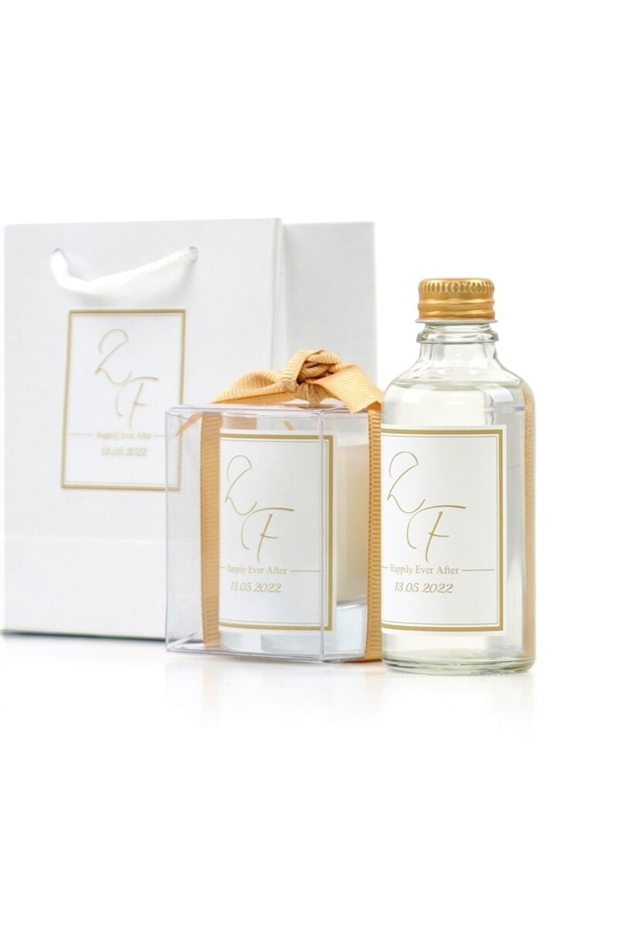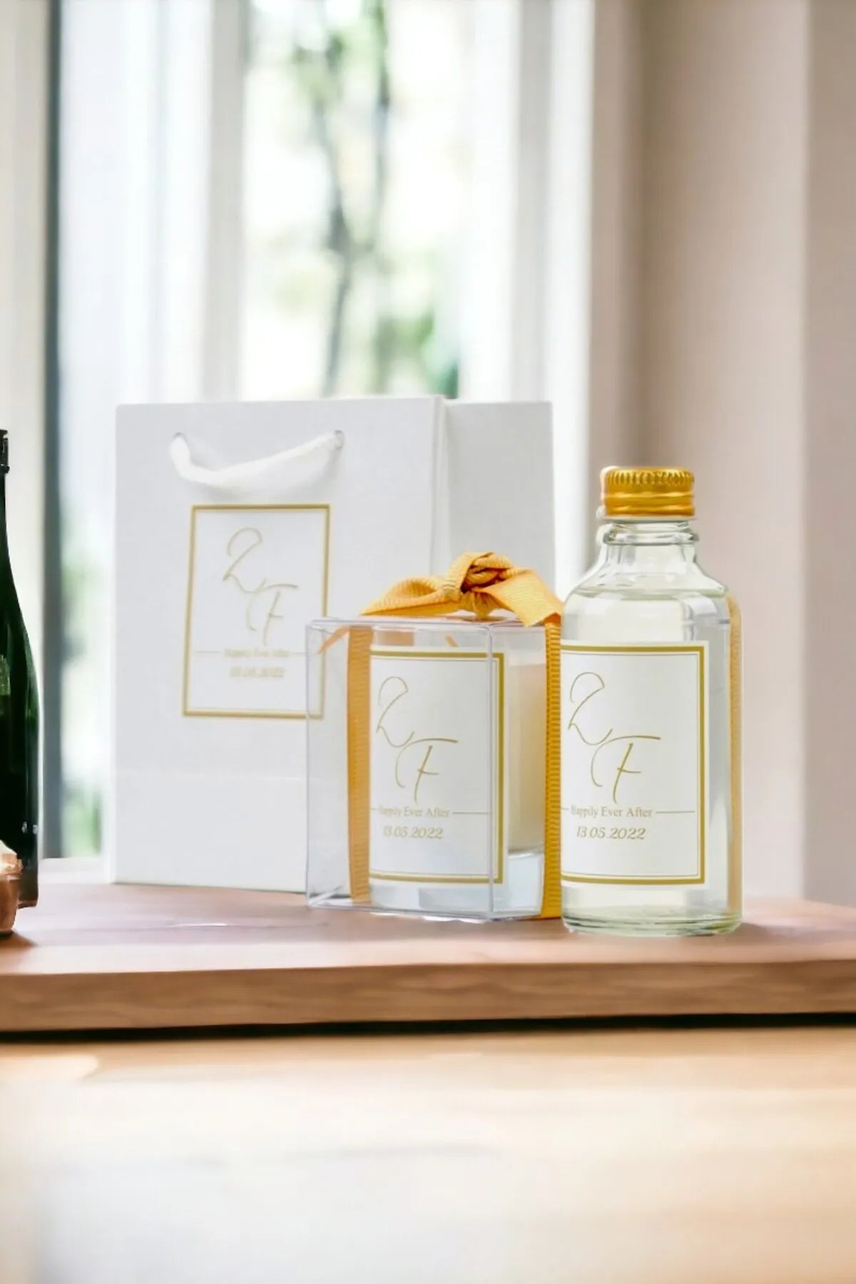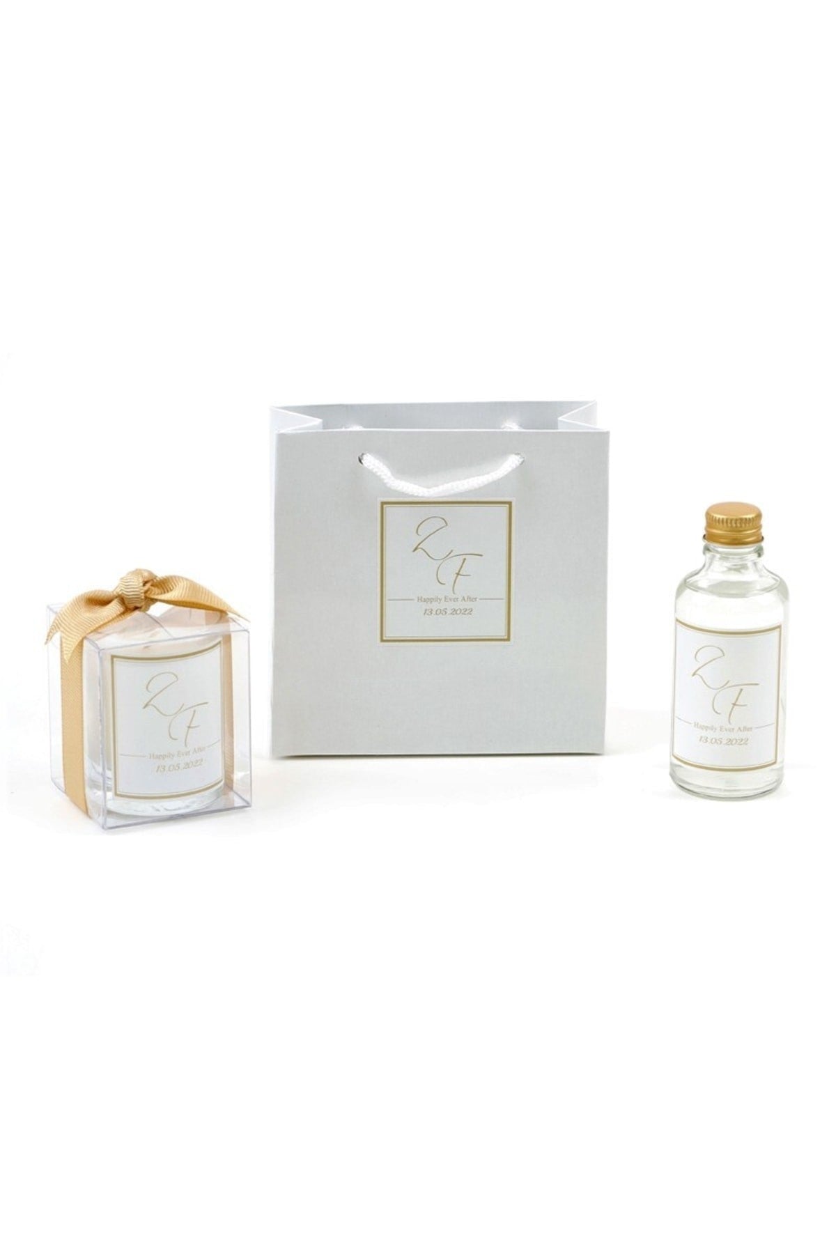 Kişiye Özel Düğün& Nikah şekeri Çantalı Kolonya ve Bardak Mum Seti 10'lu
