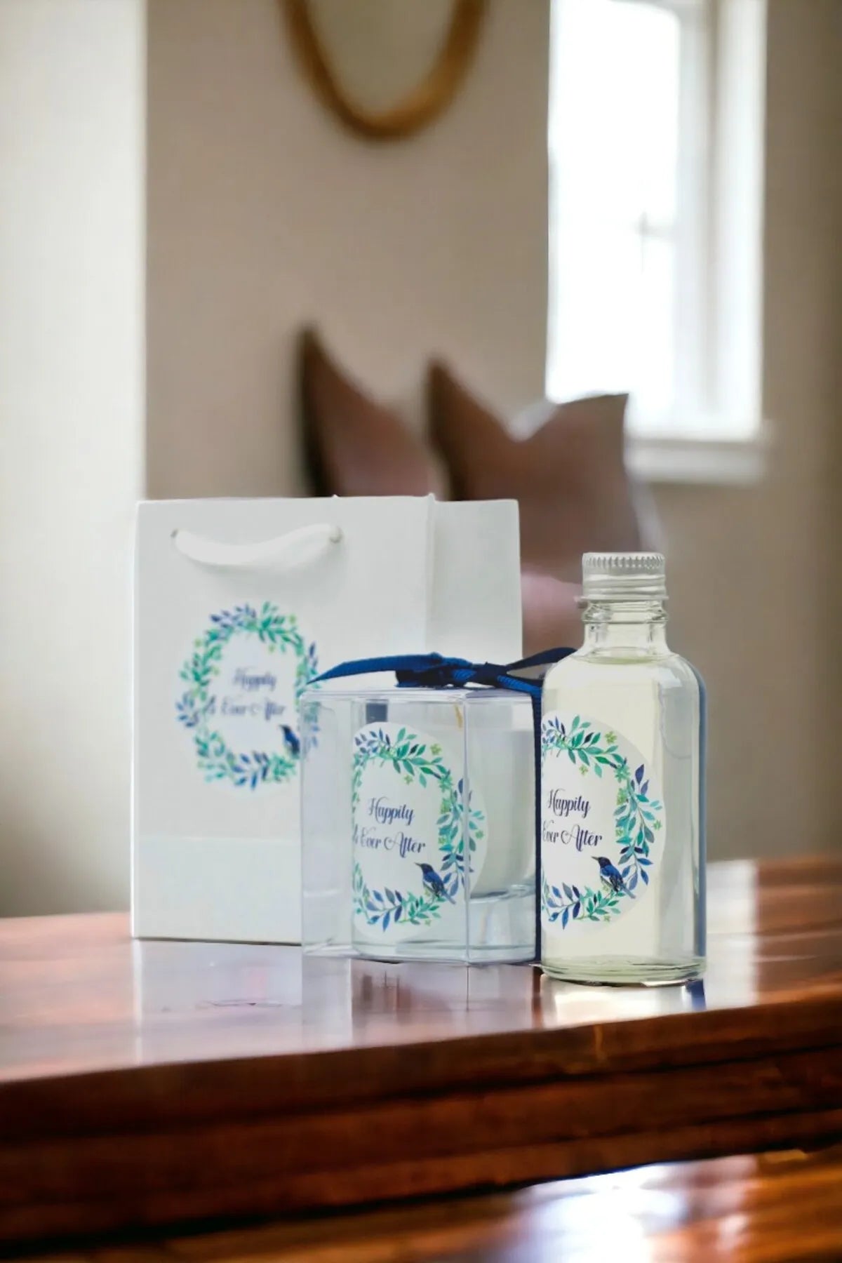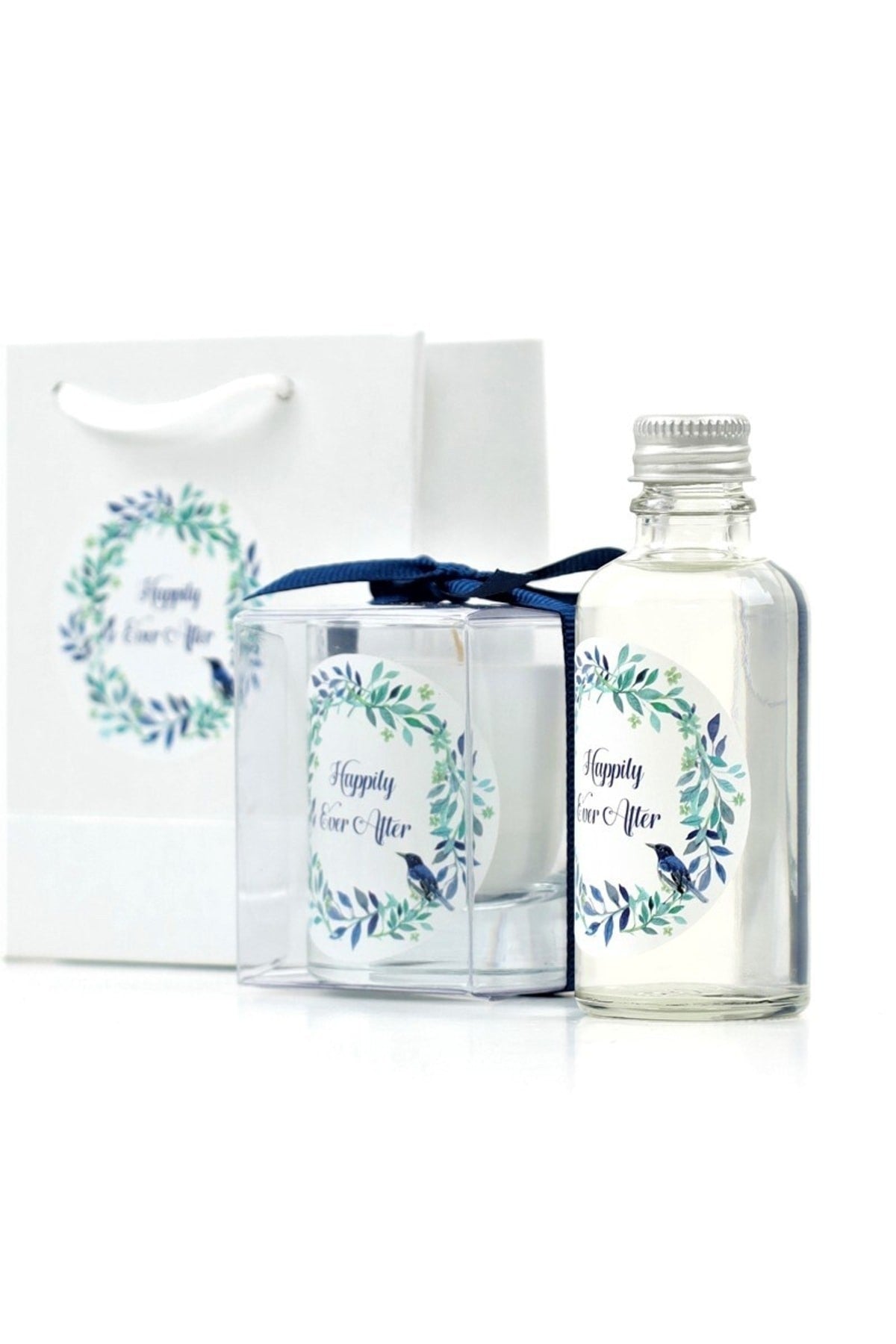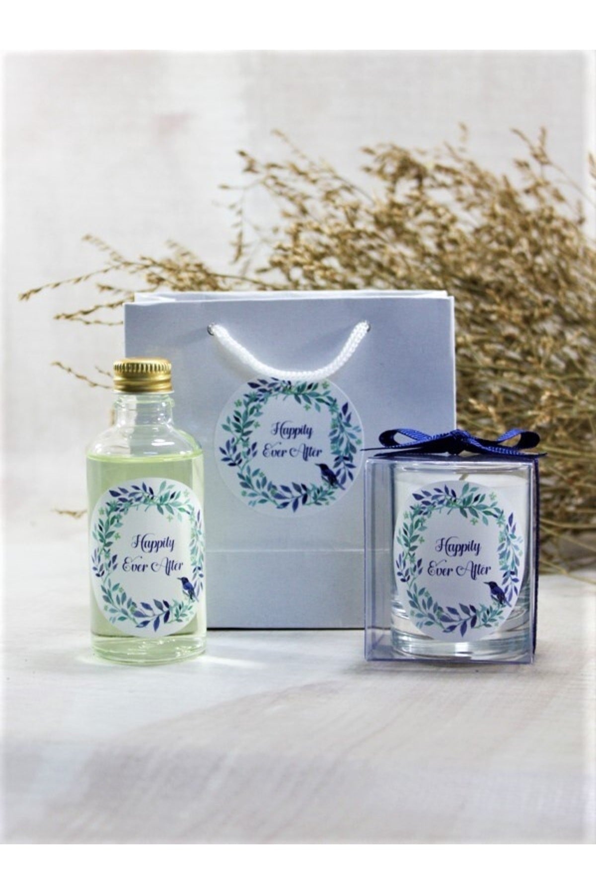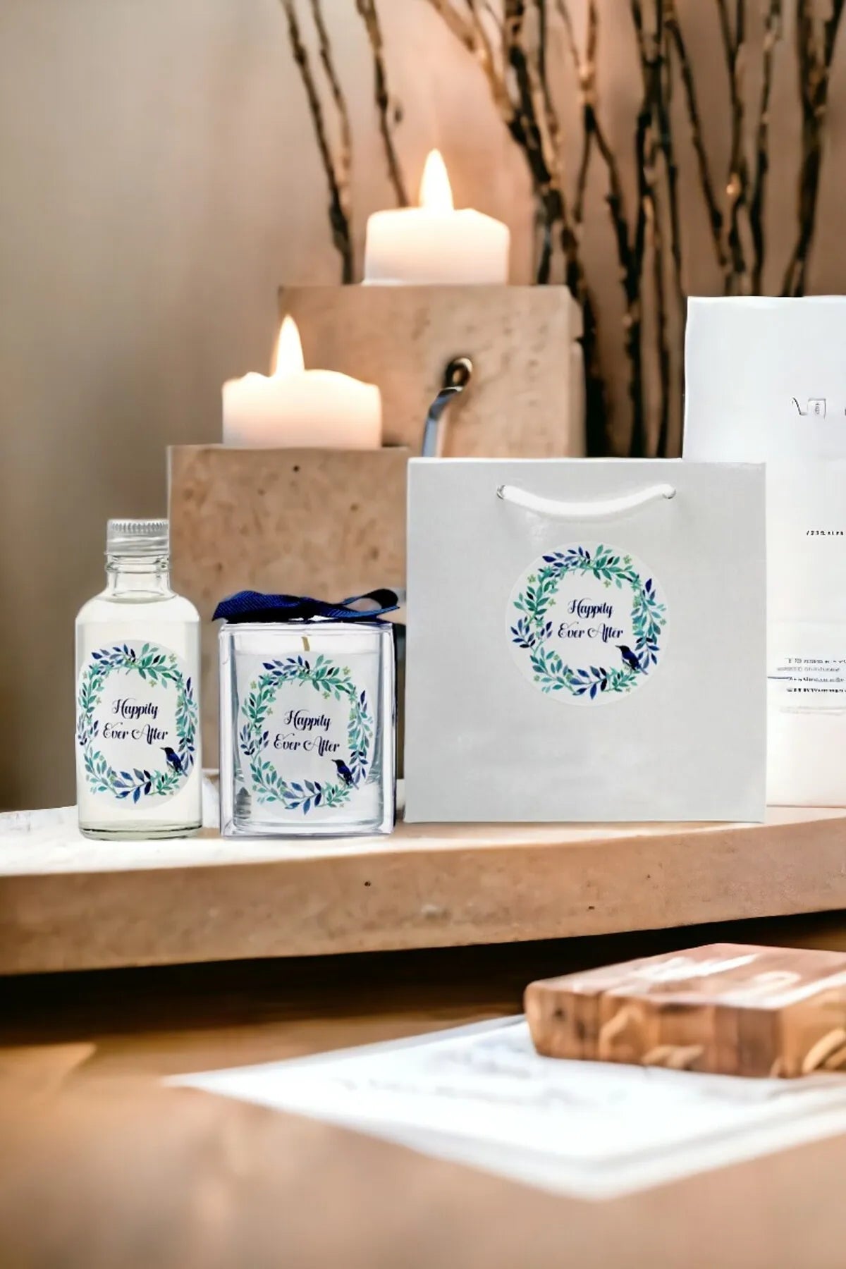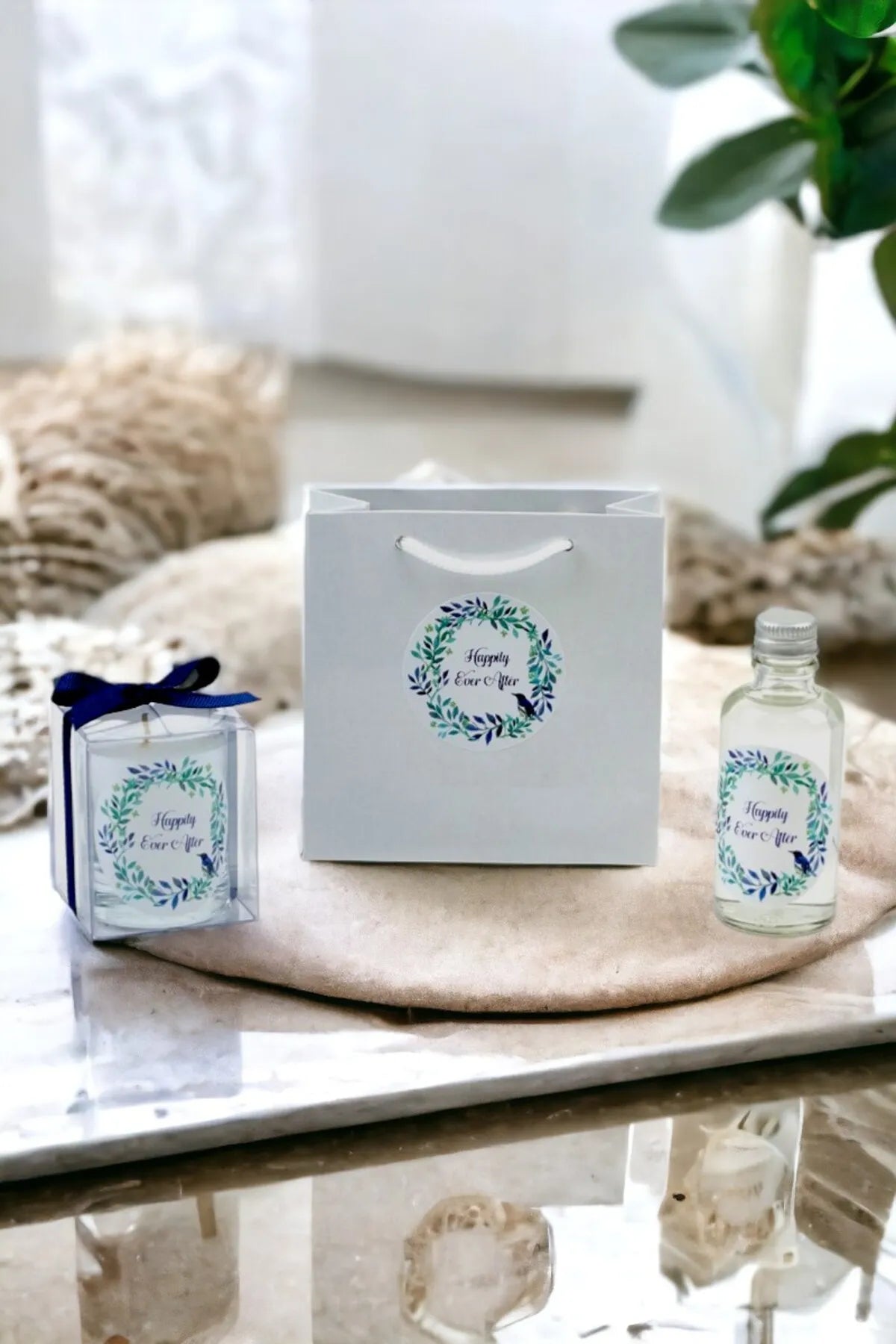 Kişiye Özel Nikah şekeri Baskılı Çantalı Kolonya ve Bardak Mum Seti 10'lu