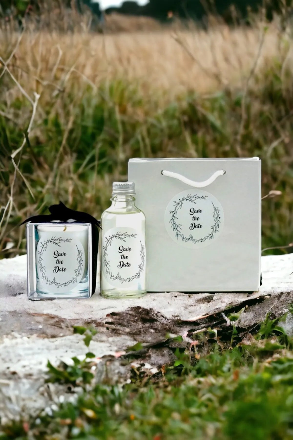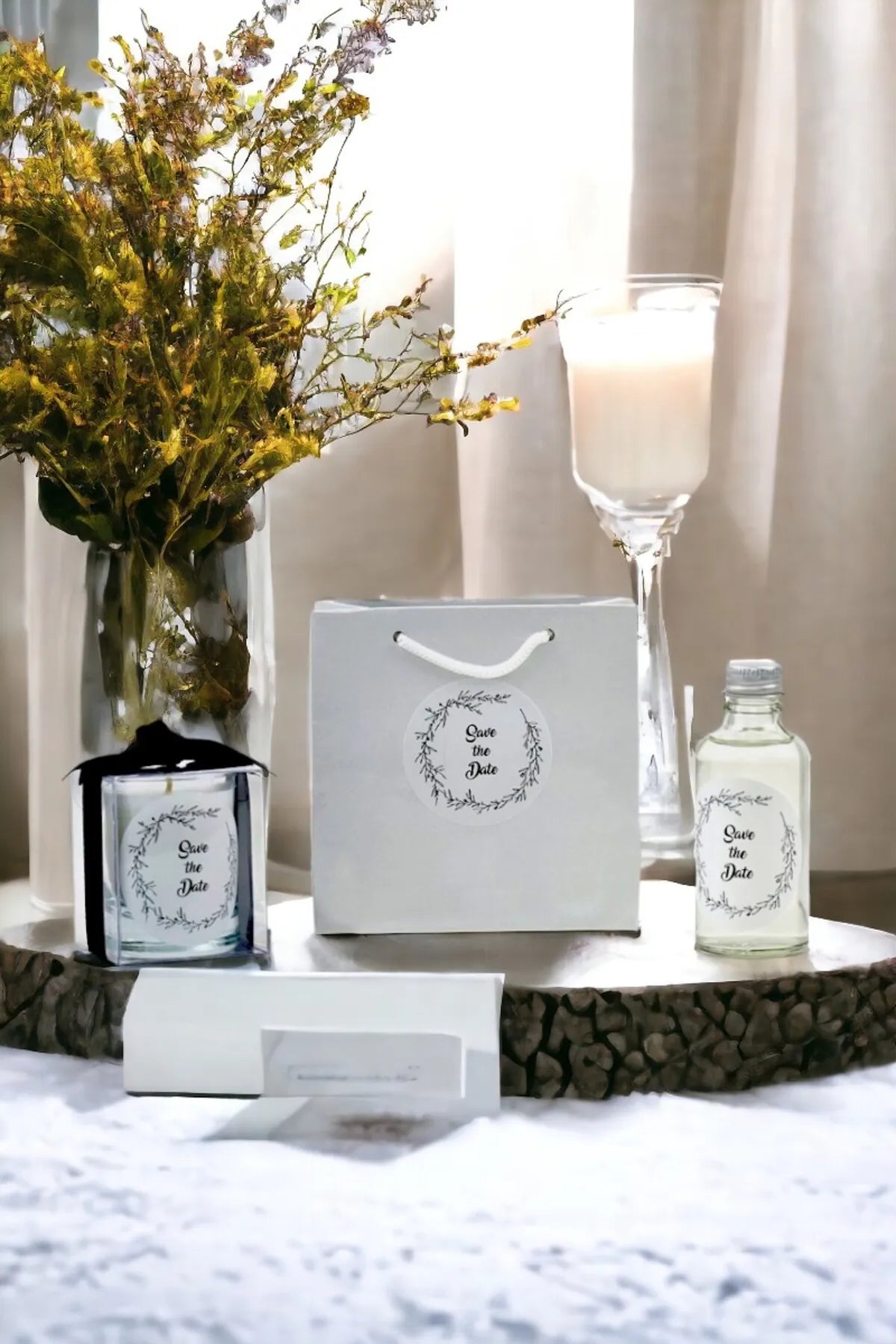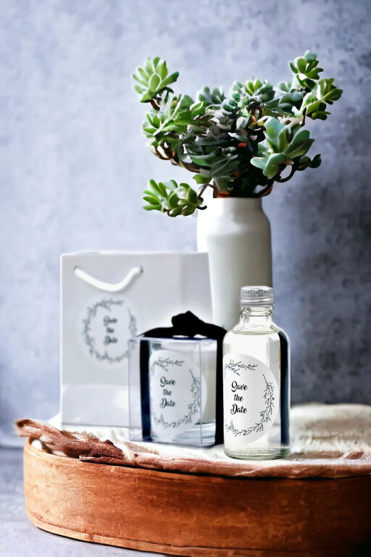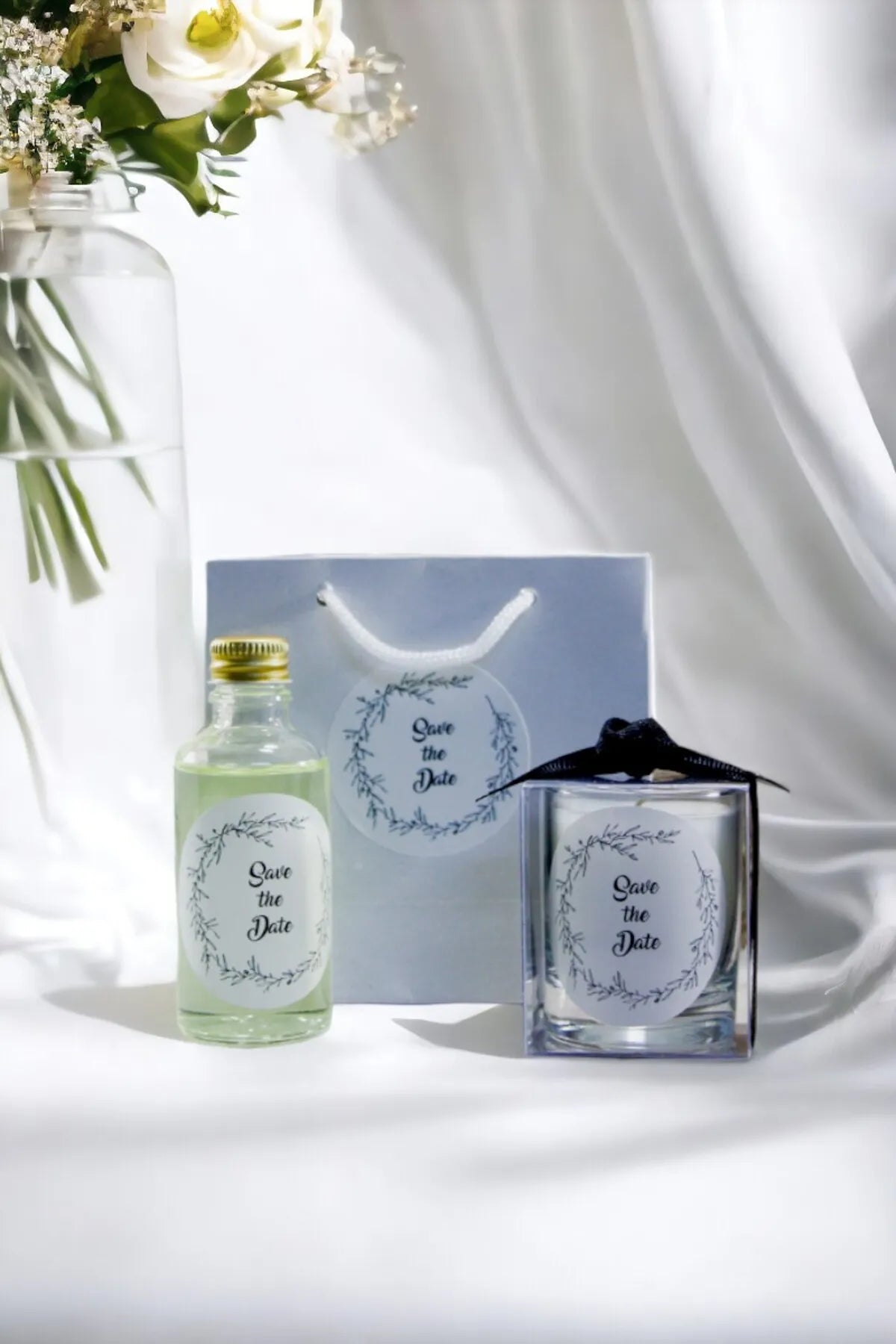 Kişiye Özel Nikah şekeri Baskılı Çantalı Kolonya ve Bardak Mum Seti 10'lu
