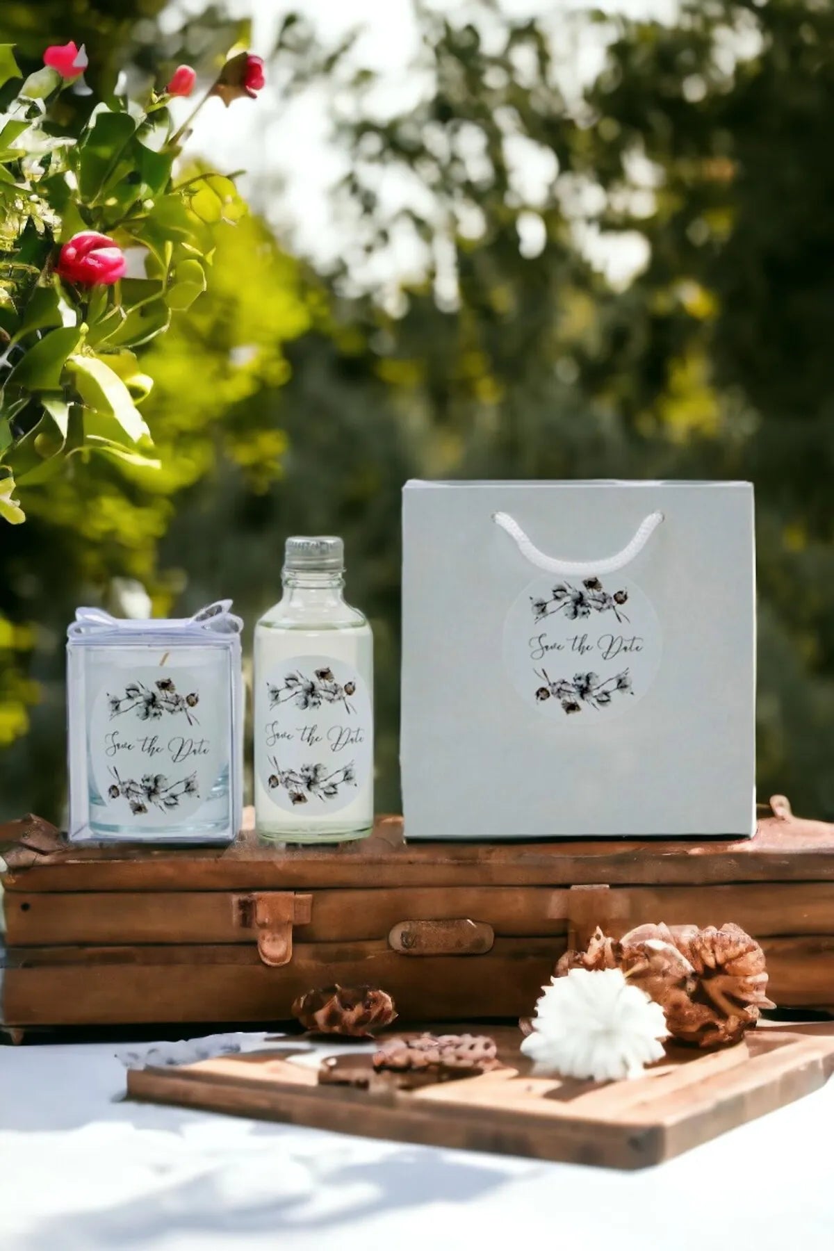 - Setin içeriğinde 1 adet mum, 1 adet kolonya ve 1 adet çanta bulunmaktadır.