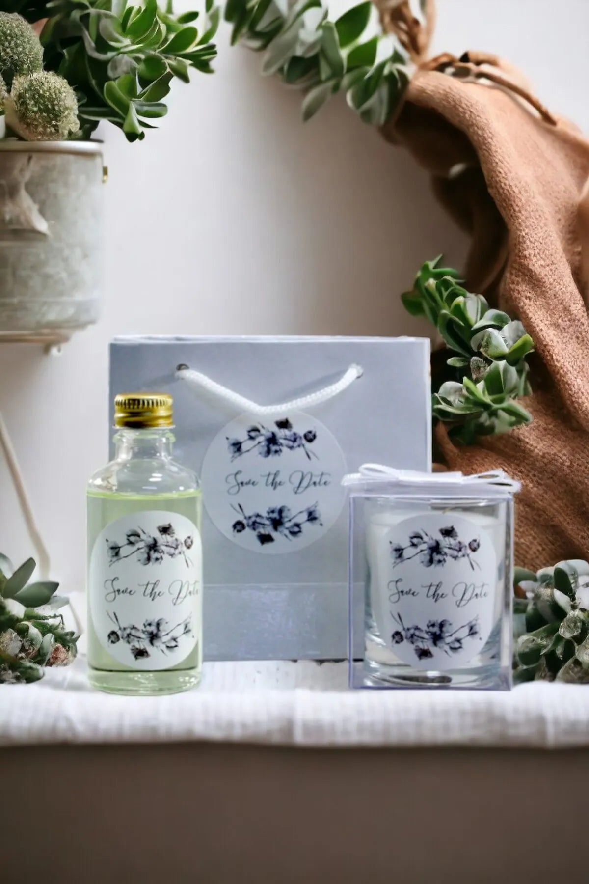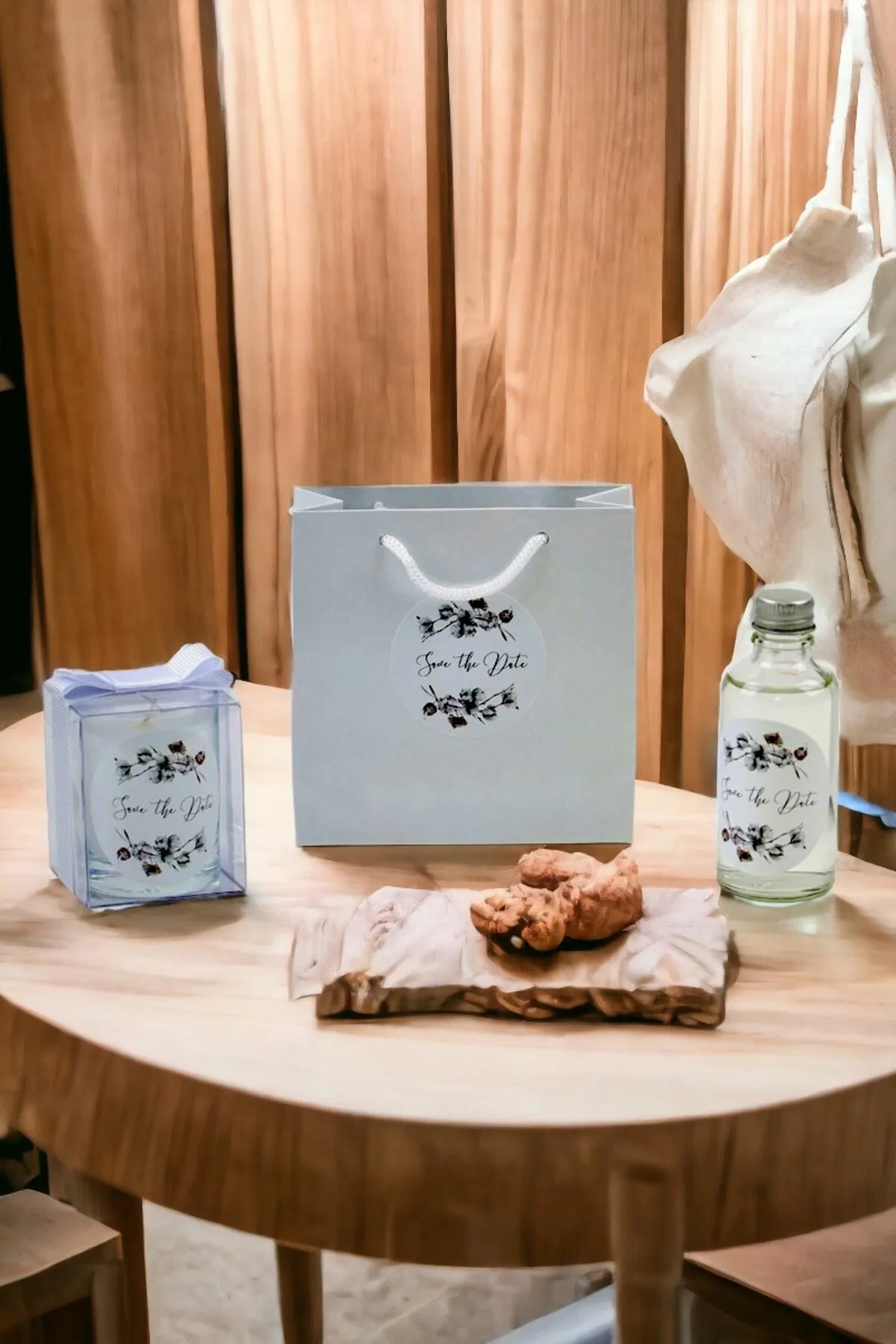 Kişiye Özel Nikah şekeri Baskılı Çantalı Kolonya ve Bardak Mum Seti 10'lu