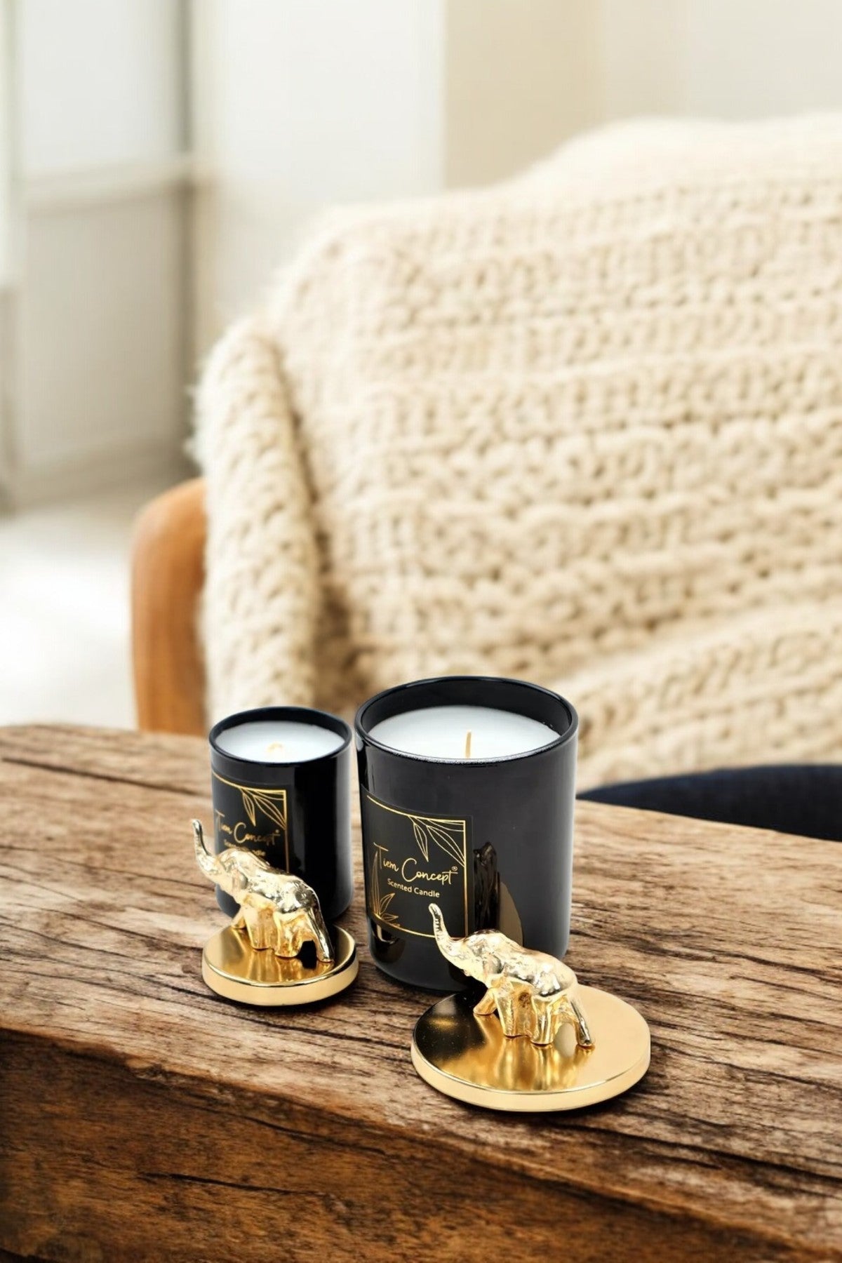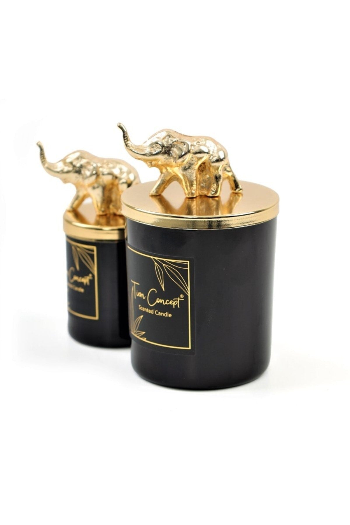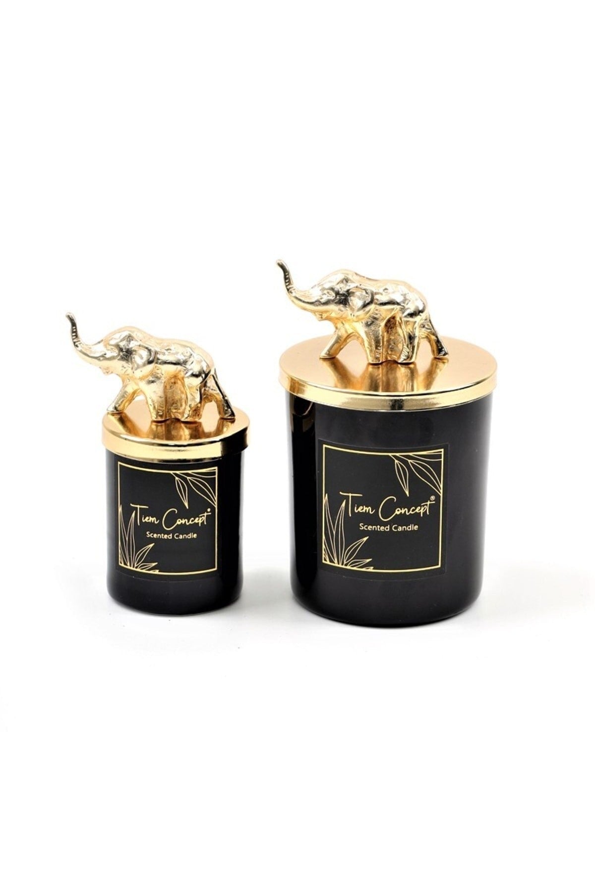 Dekoratif Gold Fil Tepelikli 2'li Siyah Bardak Mum Seti