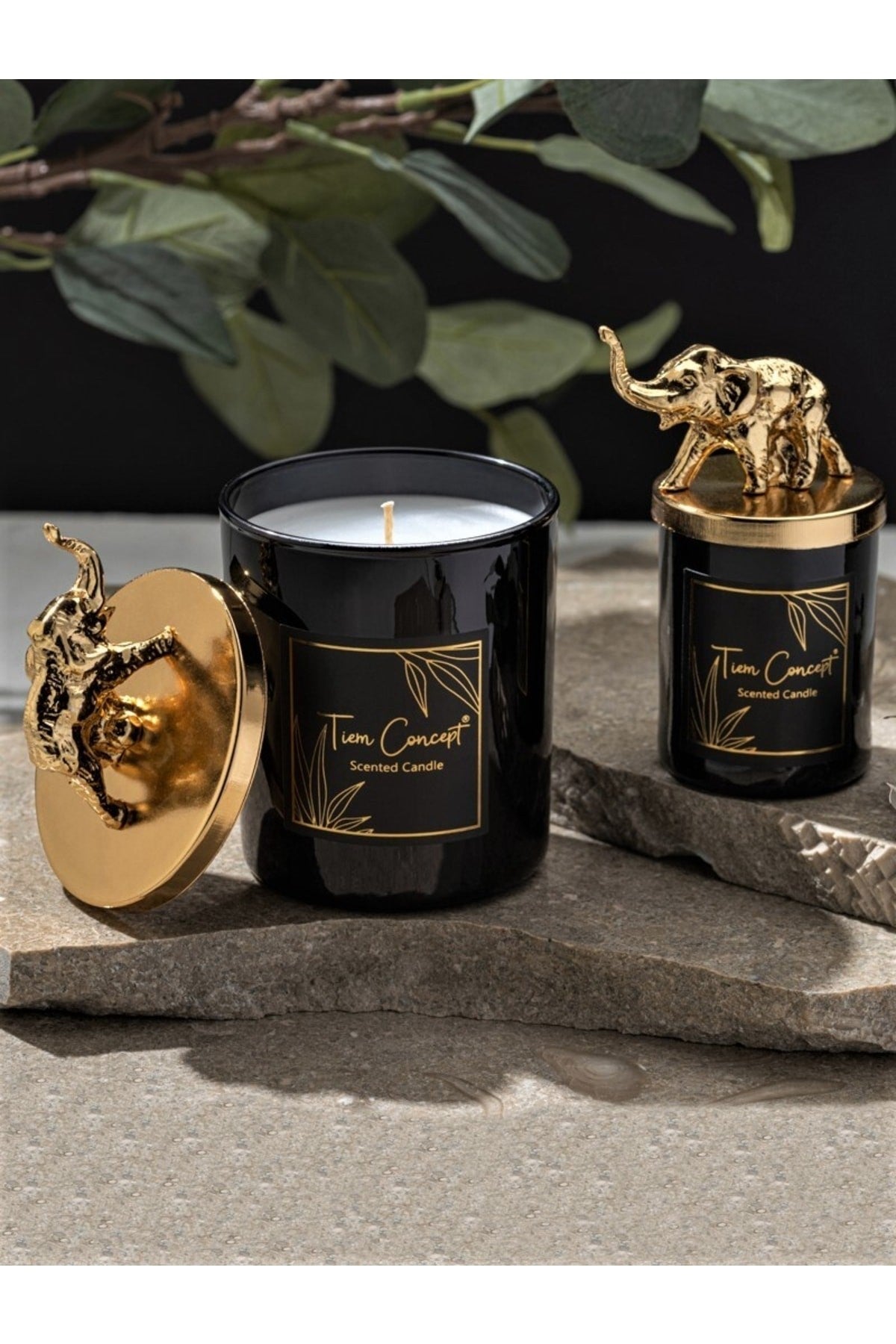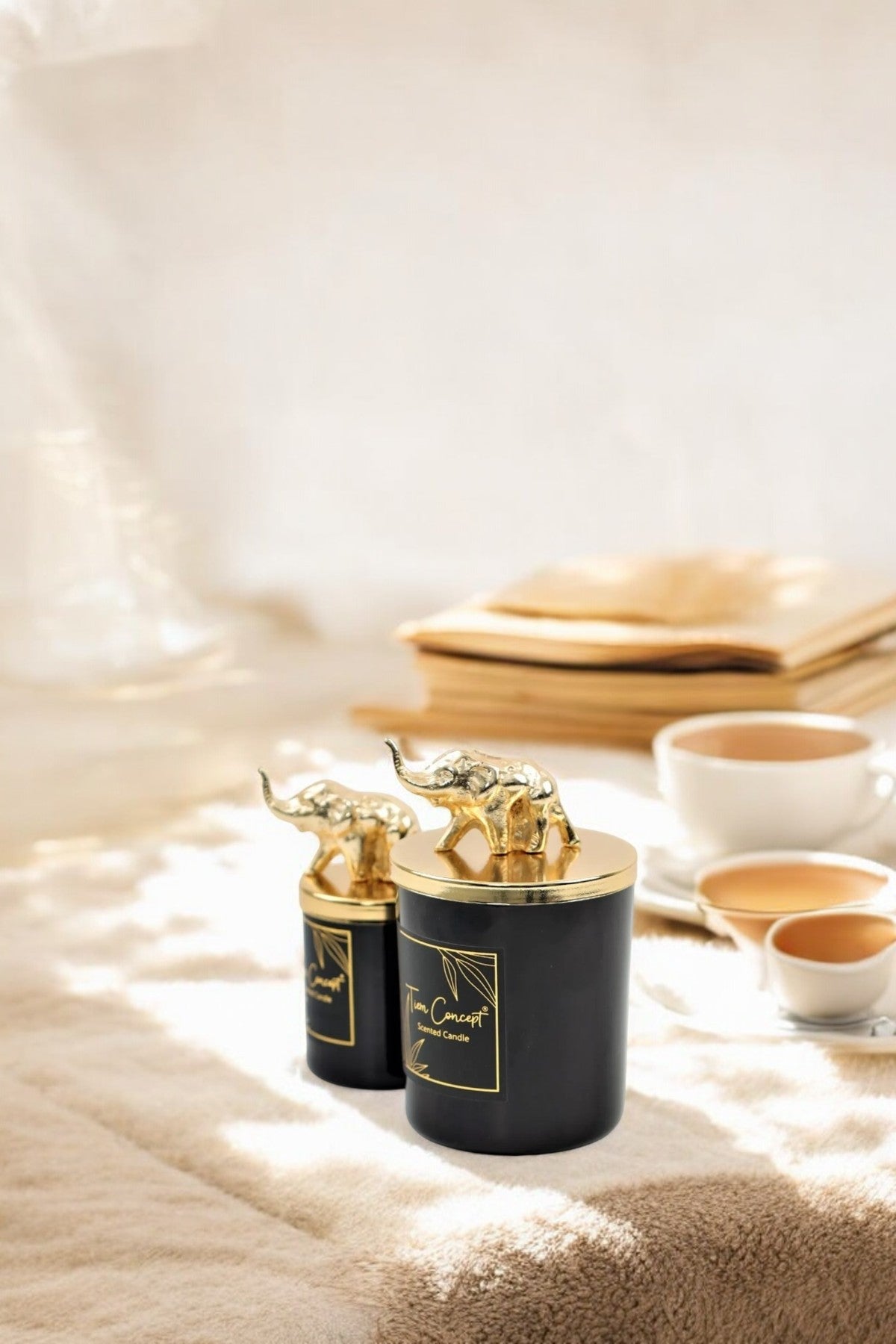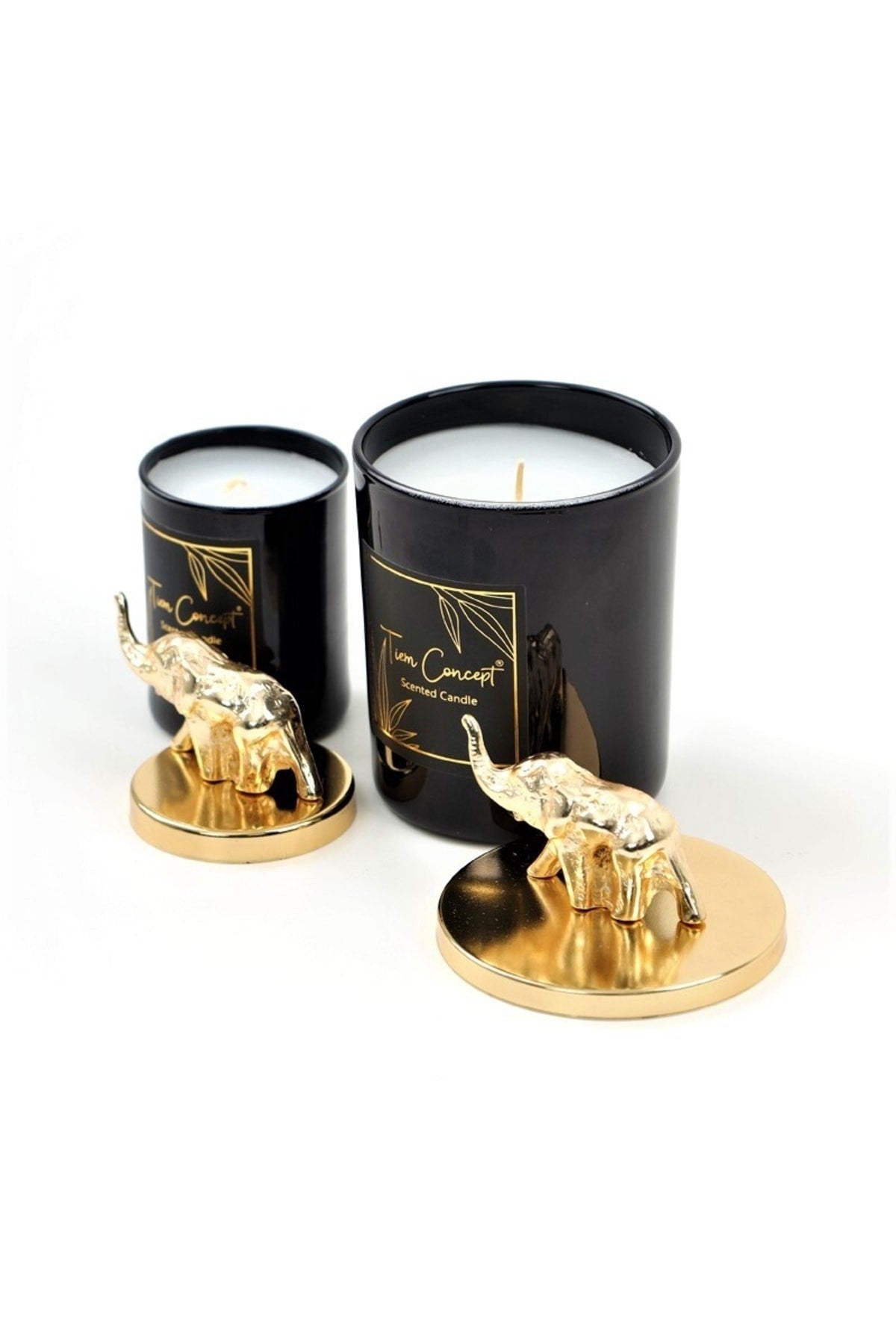 Dekoratif Gold Fil Tepelikli 2'li Siyah Bardak Mum Seti