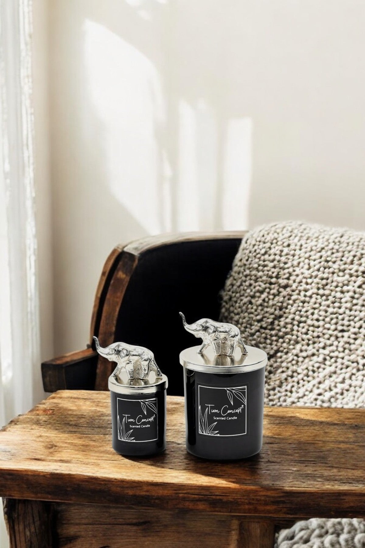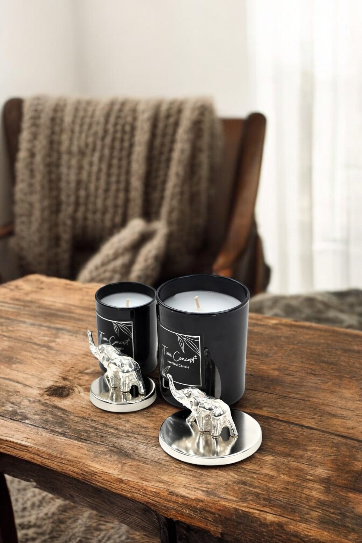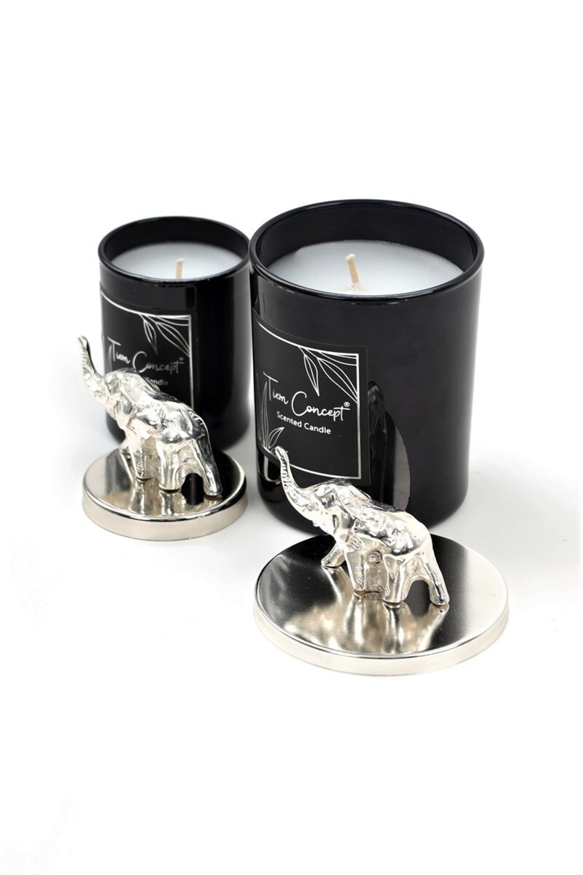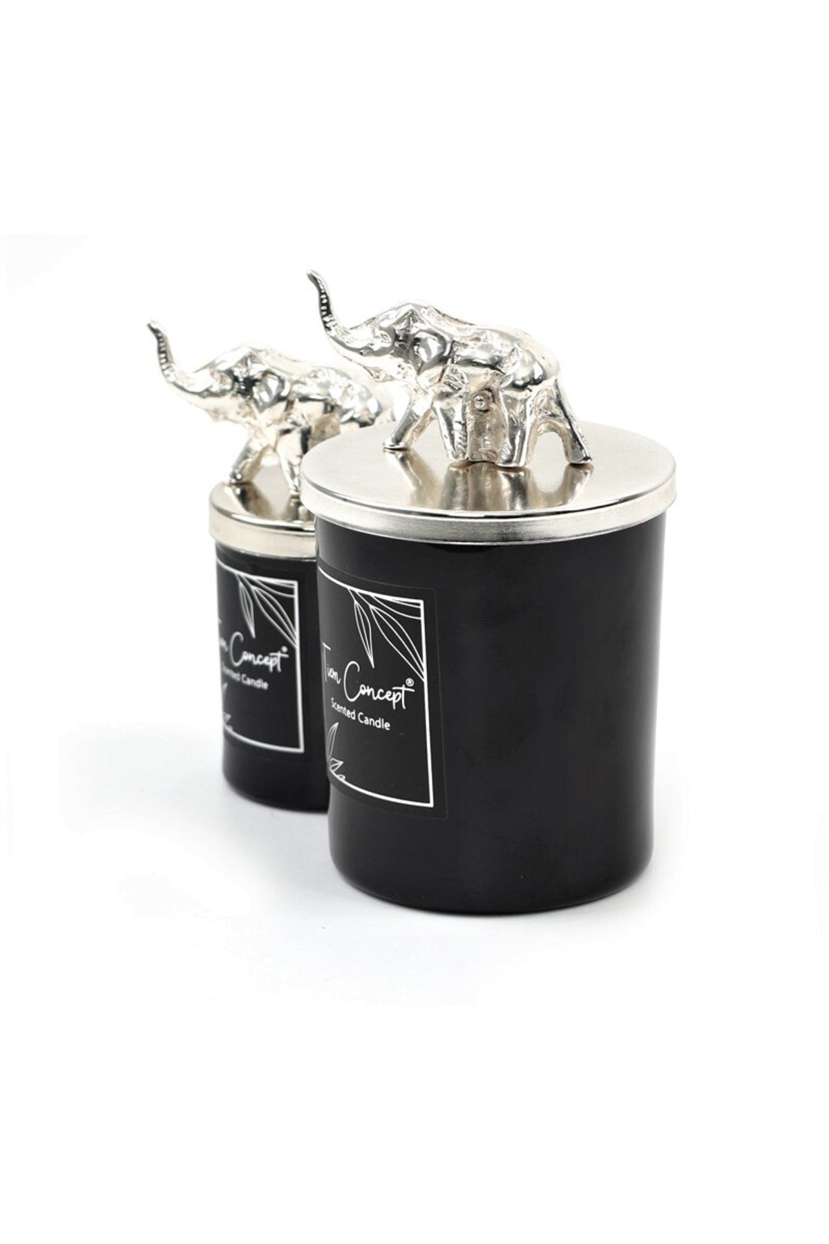 Dekoratif Gümüş Filli Vanilya Kokulu 2'li Beyaz Bardak Mum Seti