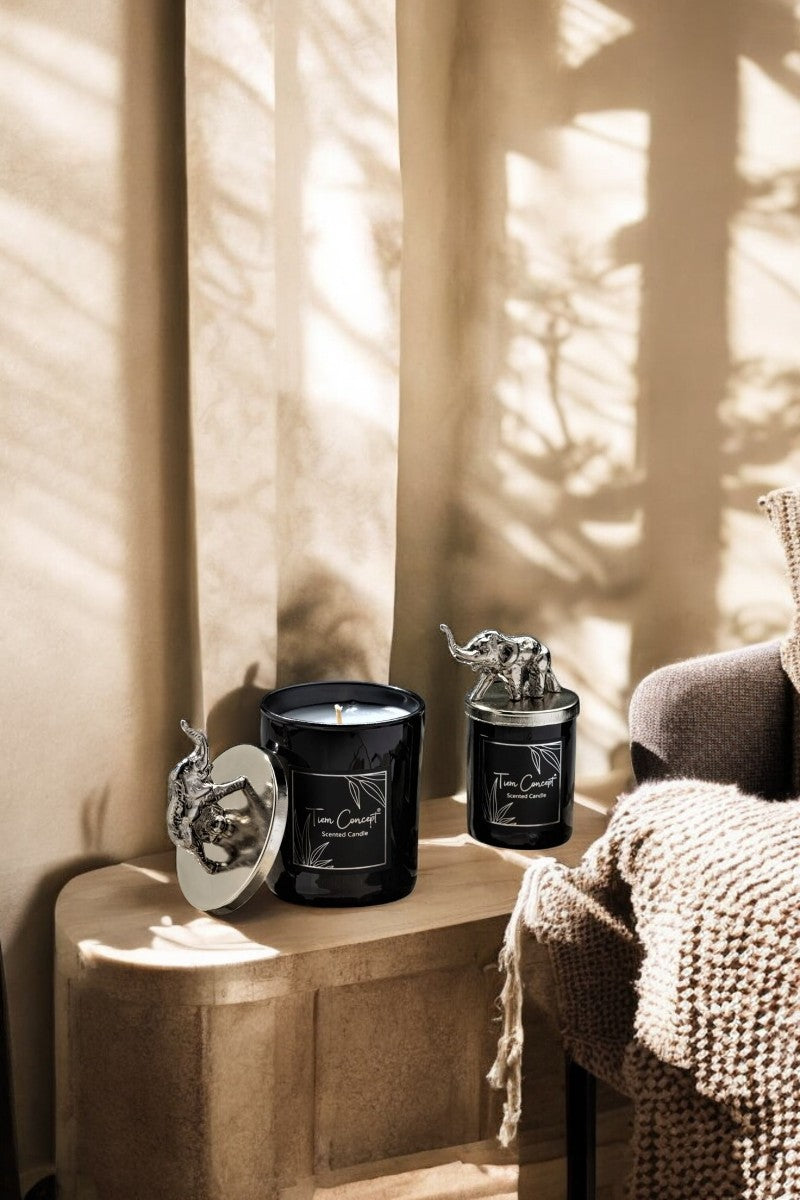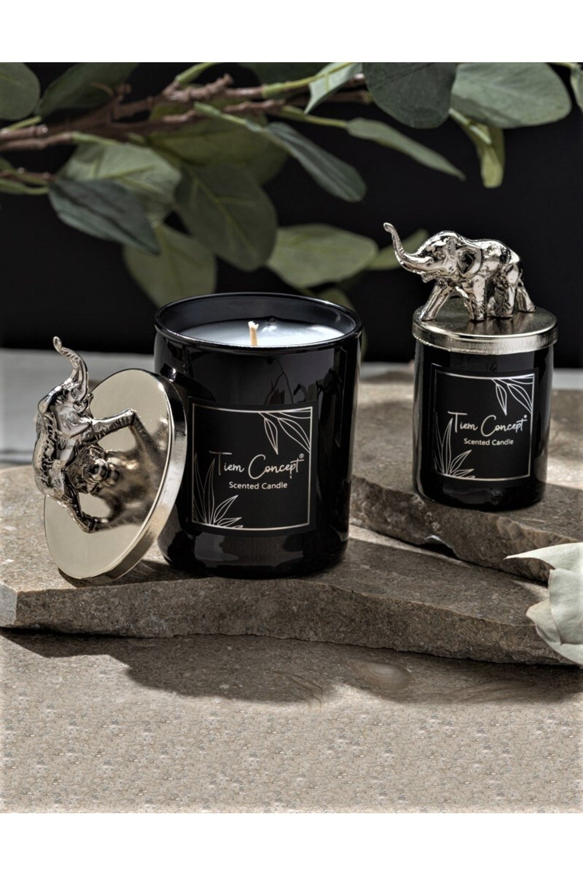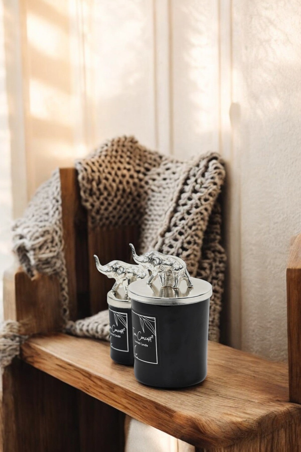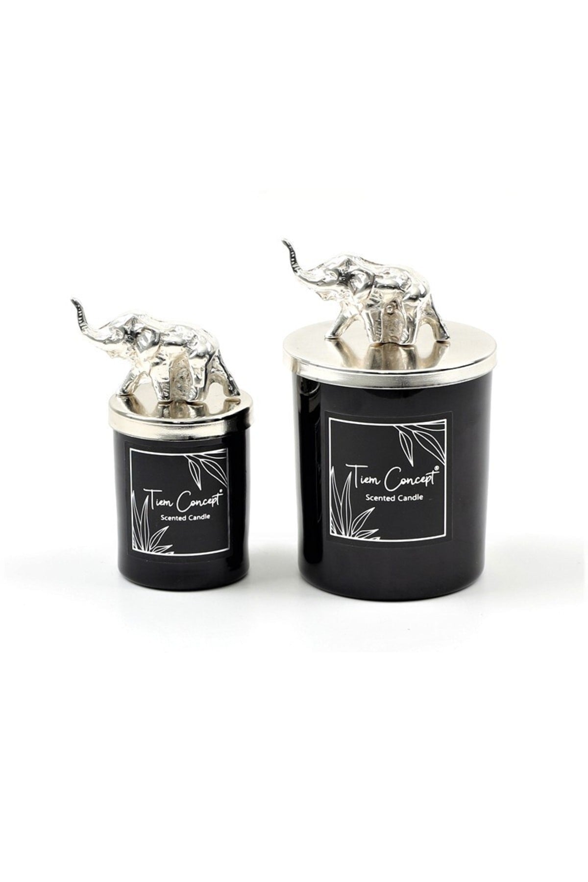 Dekoratif Gümüş Filli Vanilya Kokulu 2'li Beyaz Bardak Mum Seti
