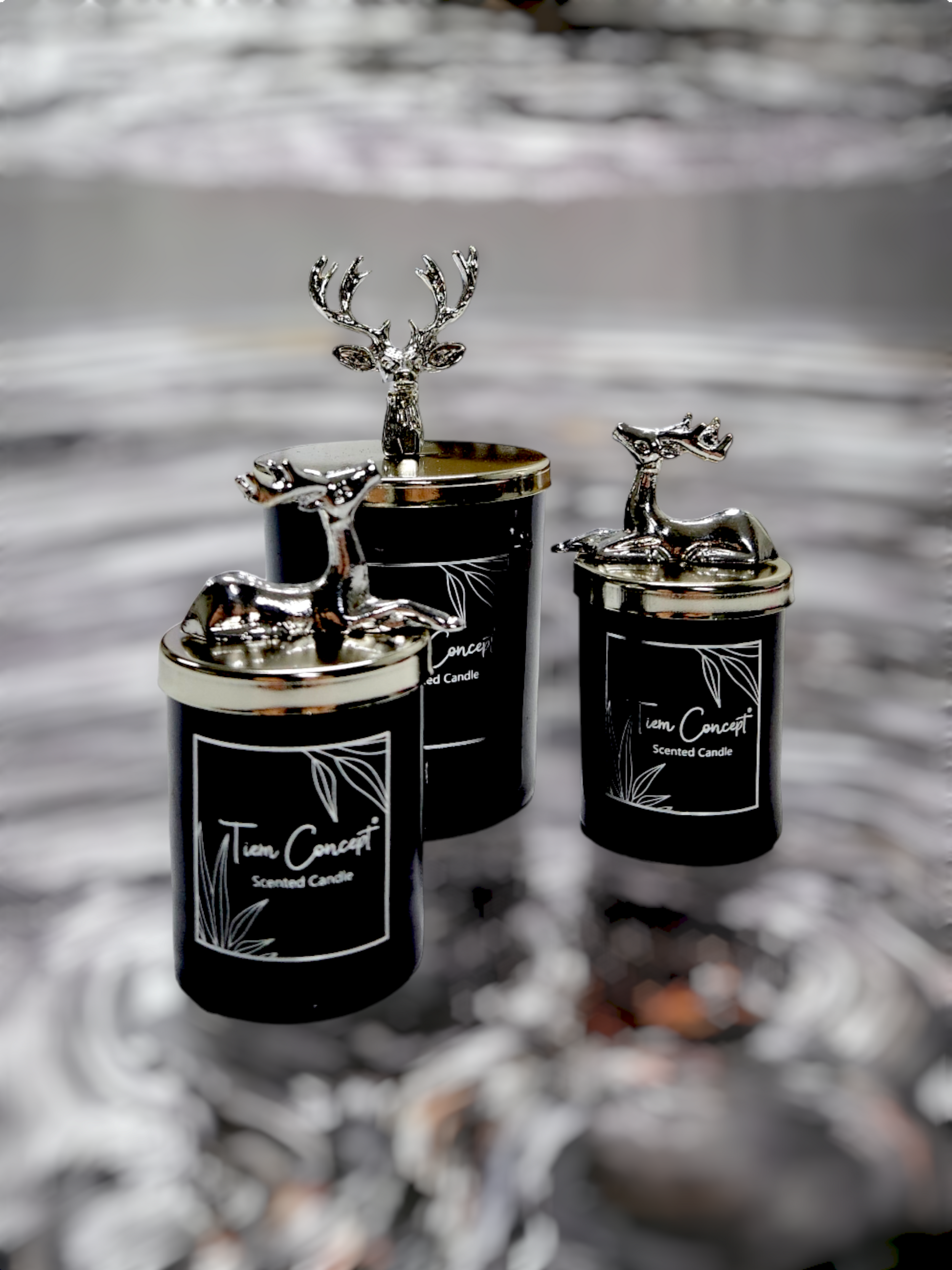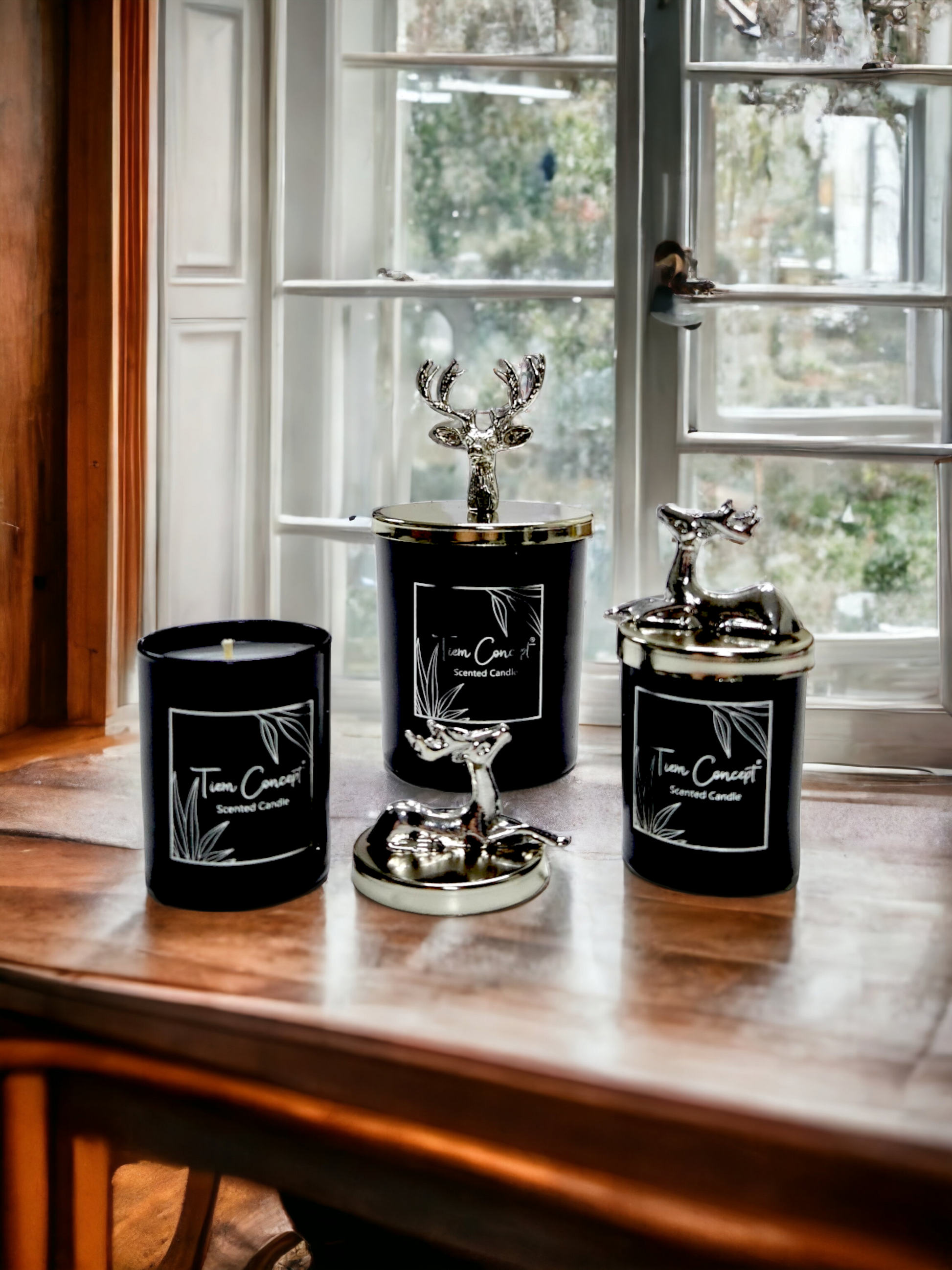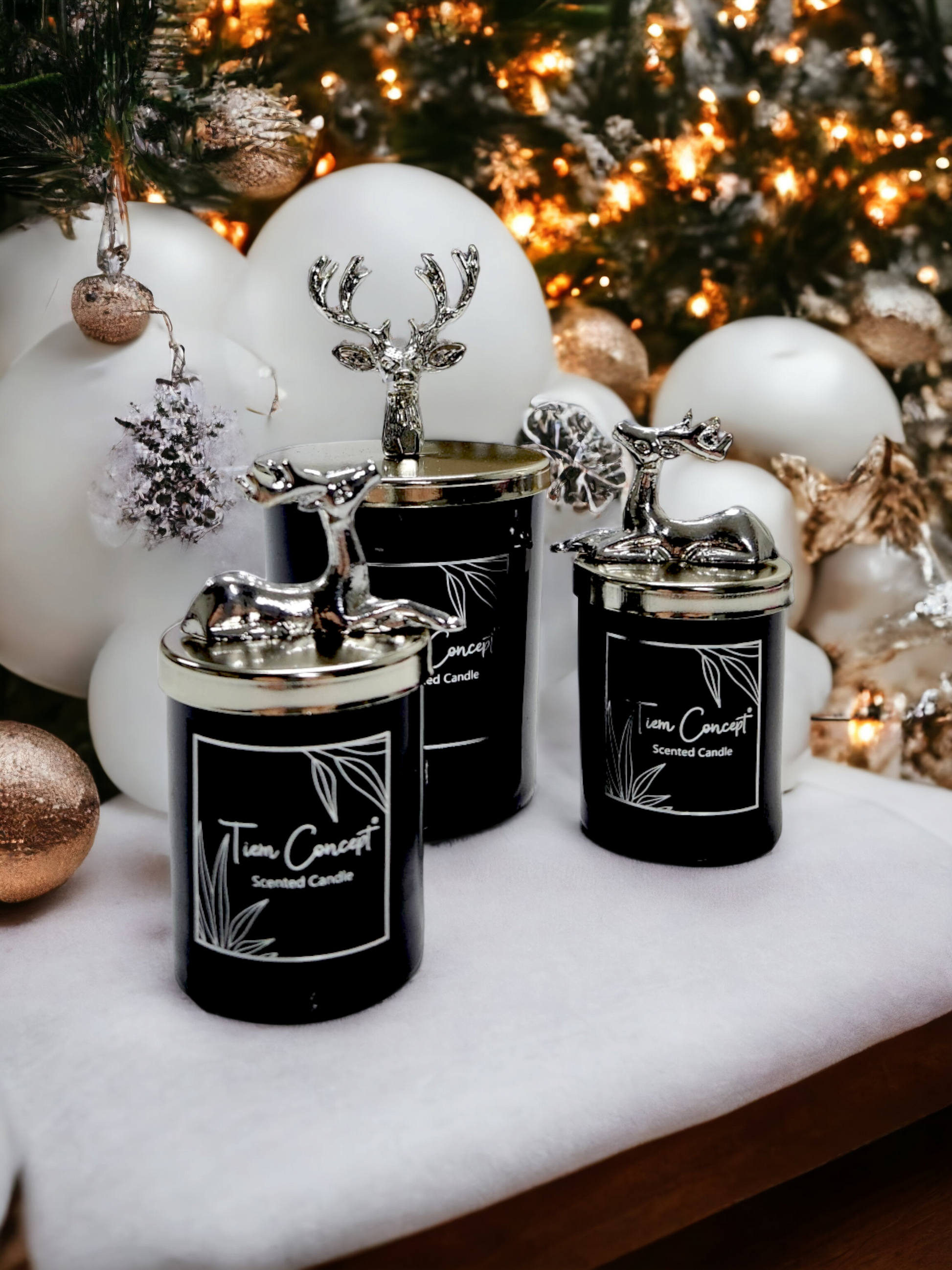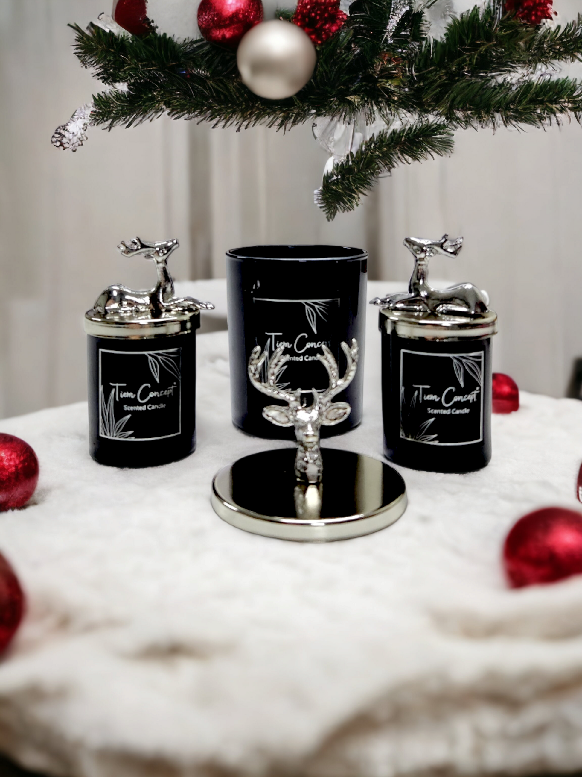 Dekoratif Gümüş Geyikli Vanilya Kokulu 3'lü Siyah Bardak Mum Seti