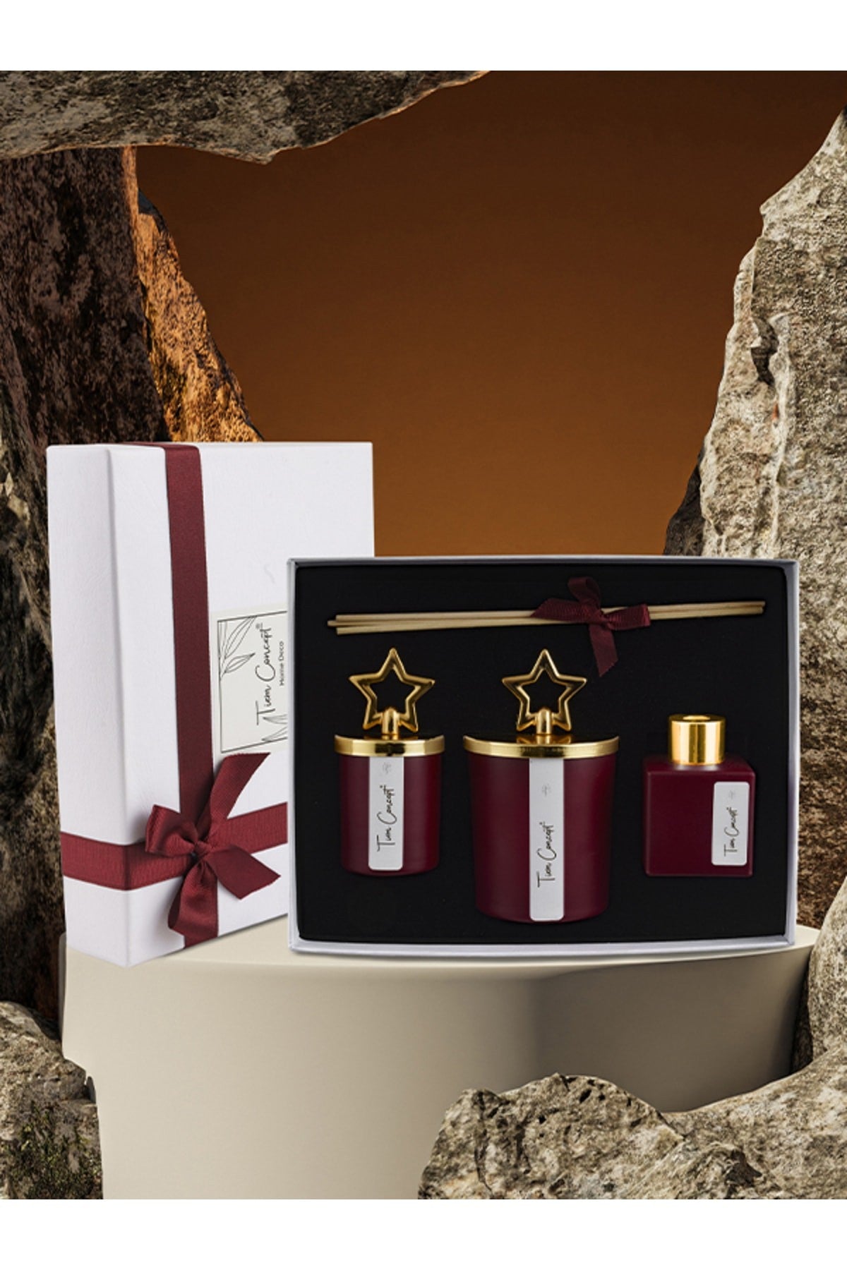 - Dekoratif kutu içerisinde 2 adet mum, 1 adet oda kokusu olarak hazırlanmaktadır.