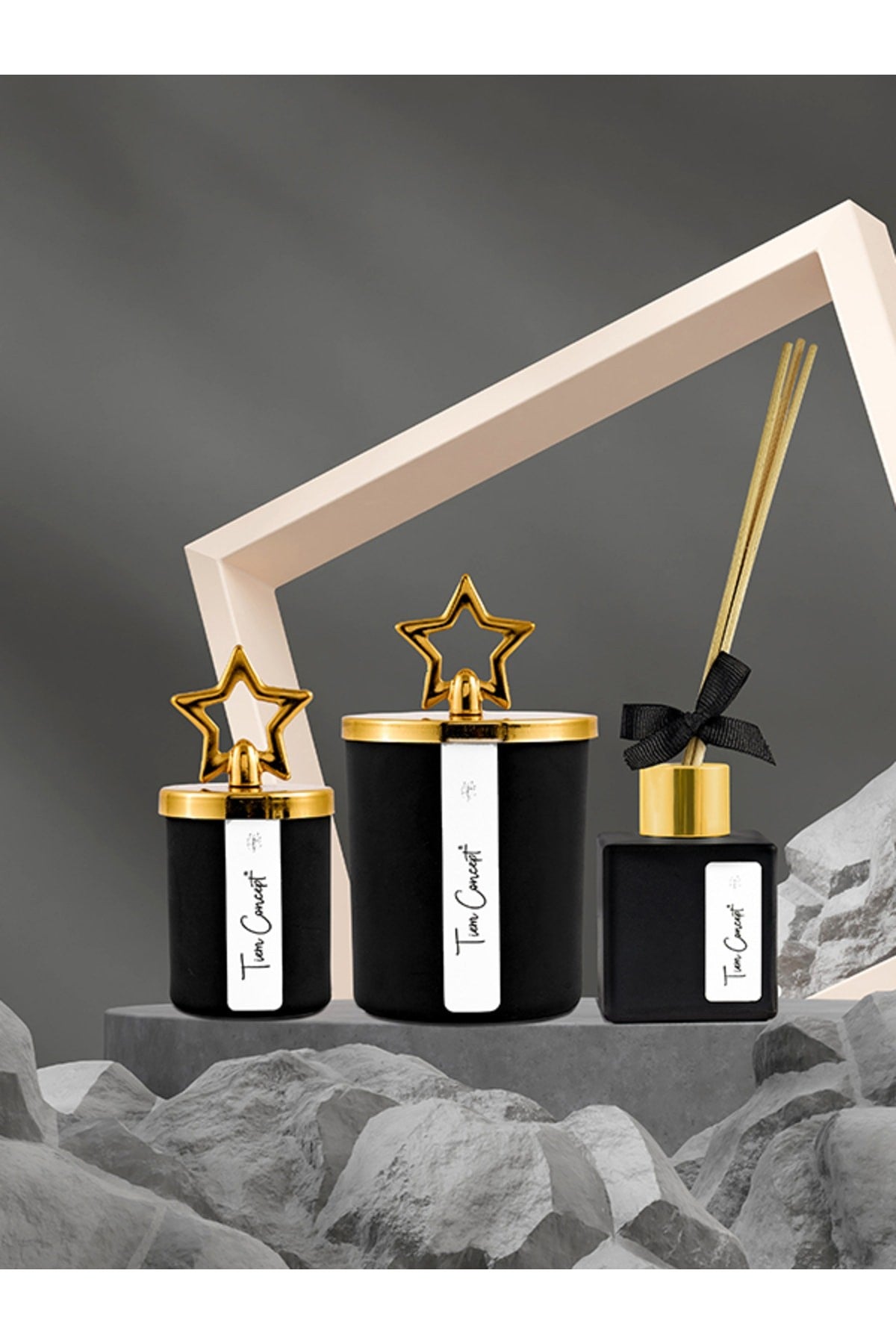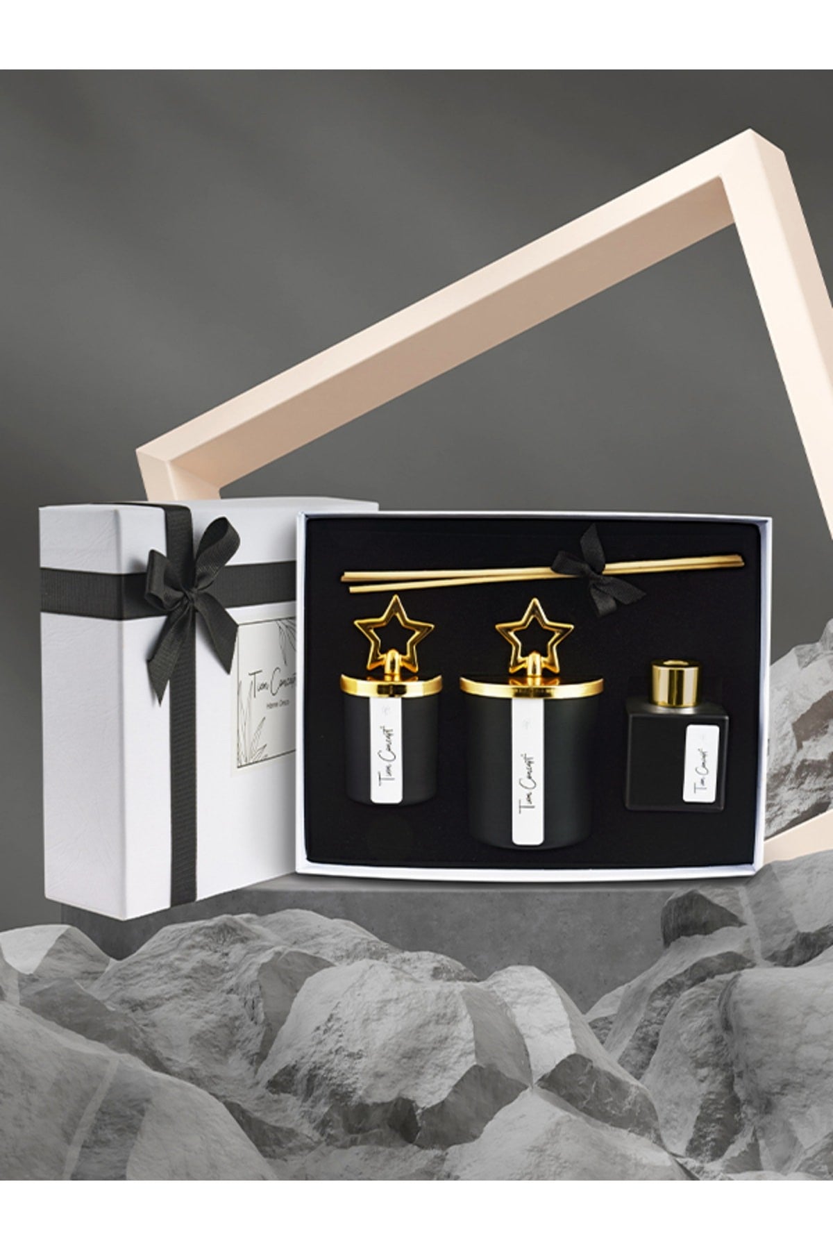 - Dekoratif kutu içerisinde 2 adet mum, 1 adet oda kokusu olarak hazırlanmaktadır.
