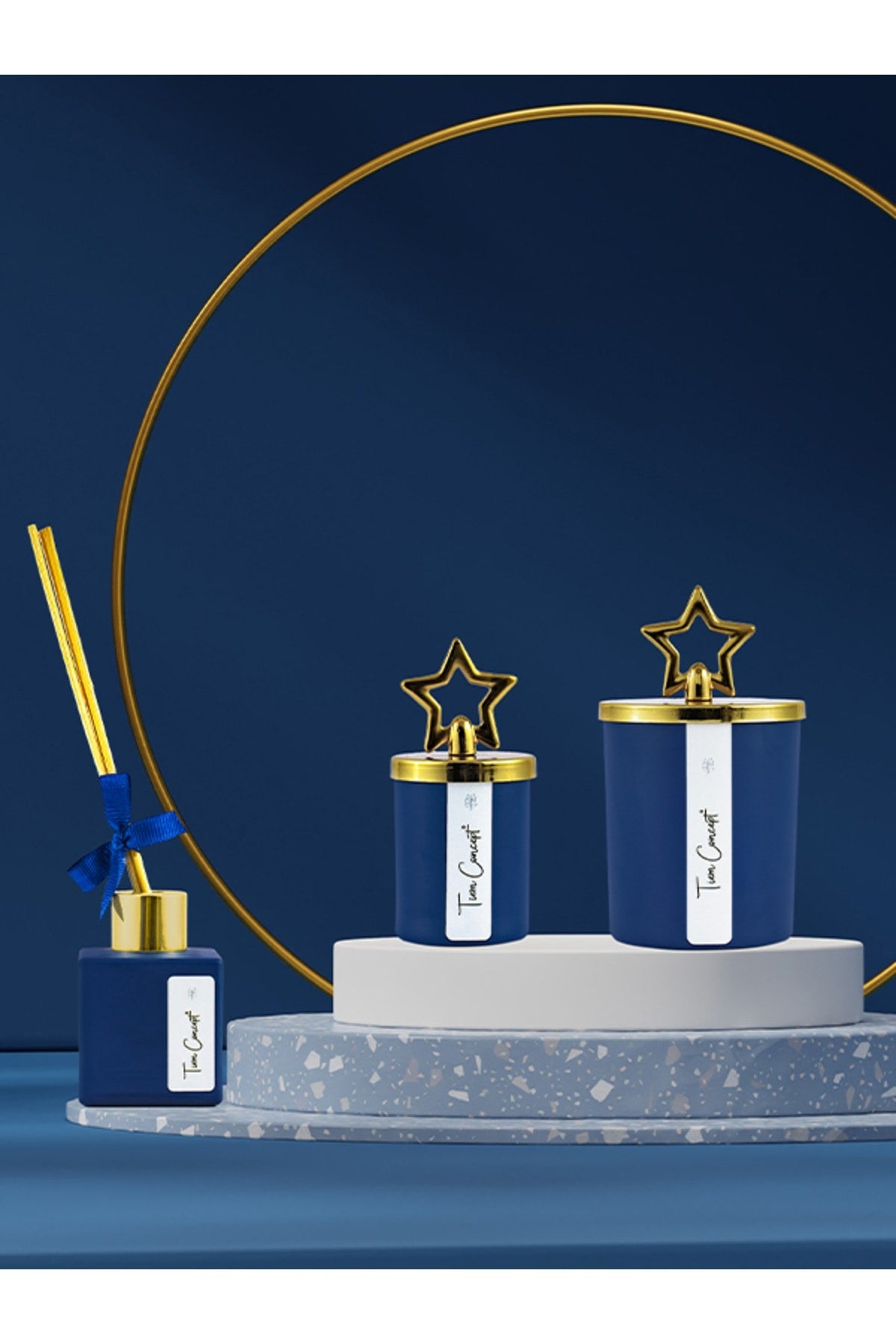 Özel Tasarım Kutulu Okyanus Kokulu Gold Tepelikli 3lü Bardak Mum ve Oda Koku Seti