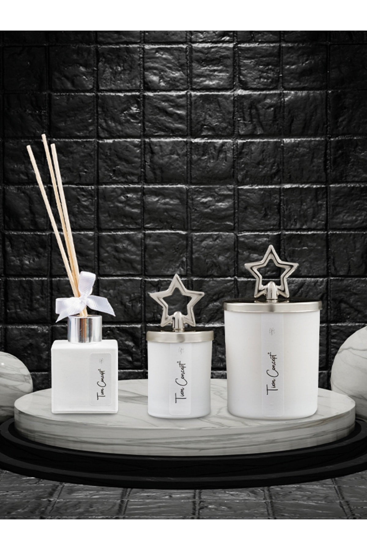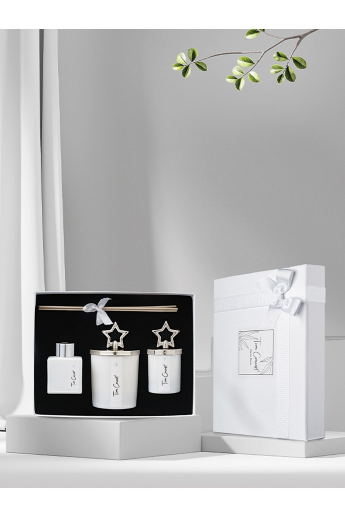 - Dekoratif kutu içerisinde 2 adet mum, 1 adet oda kokusu olarak hazırlanmaktadır.