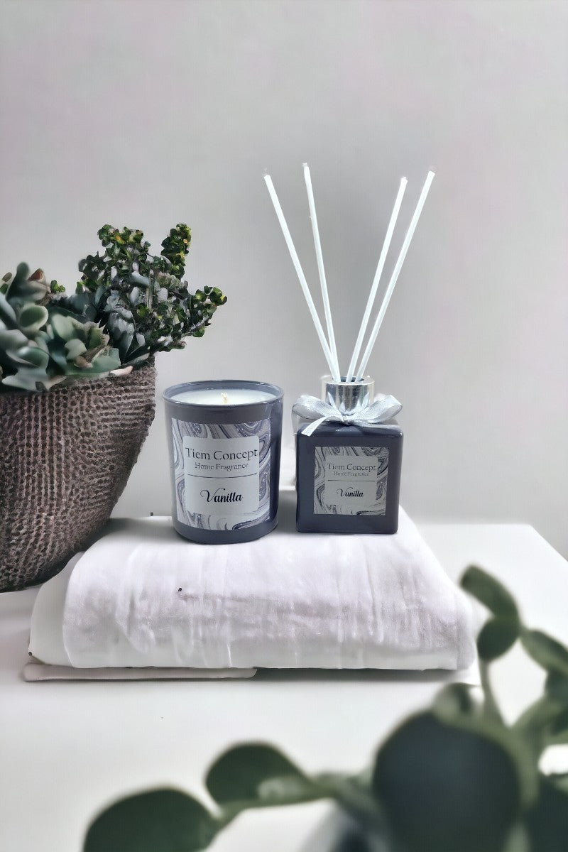 Vanilya Kokulu Gri Bardak Mum Ve Oda Kokusu Seti 100 ml