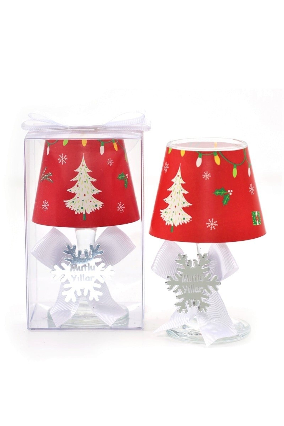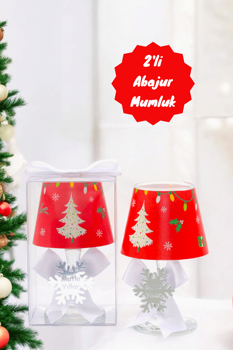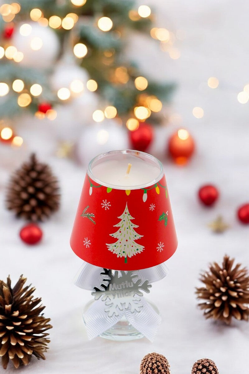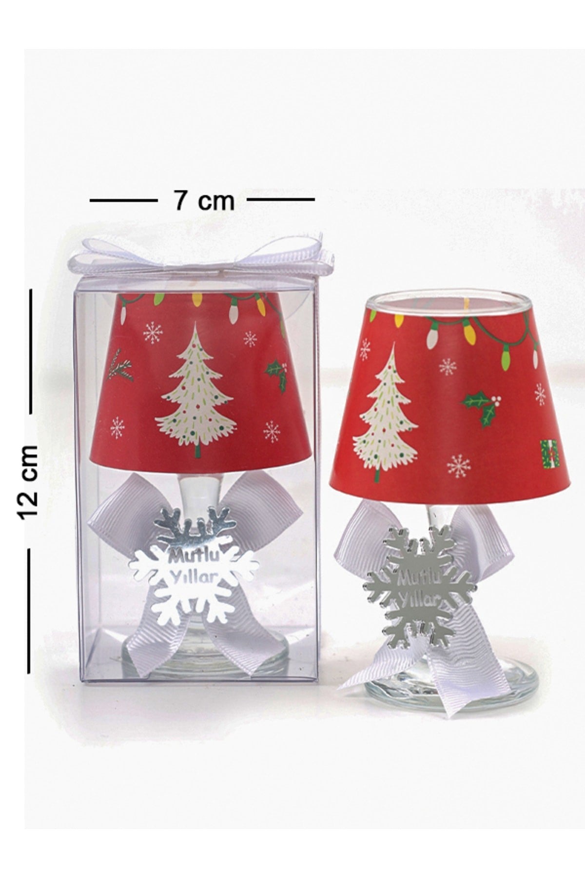 Yılbaşı Çam Ağacı Konseptli Kırmızı Abajur Mumluk Seti ( 2 Adet )