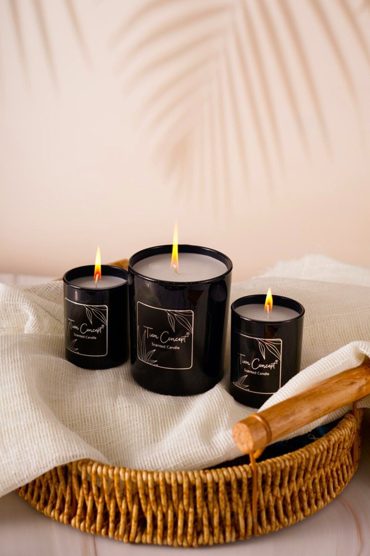 Ortadaki Büyük olan bardak 6,5x8 Cm boyundadır. Bardak 150 gramdır ve 45 saat yanmaktadır. Kenardaki küçük olan bardaklar ise 4.5 cm çapında 6 cm boyundadır. Küçük olan mum ise 60 gramdır ve 22 saat yanmaktadır. Bardaklarımız siyah parlak boyalı olarak kullanılmaktadır.